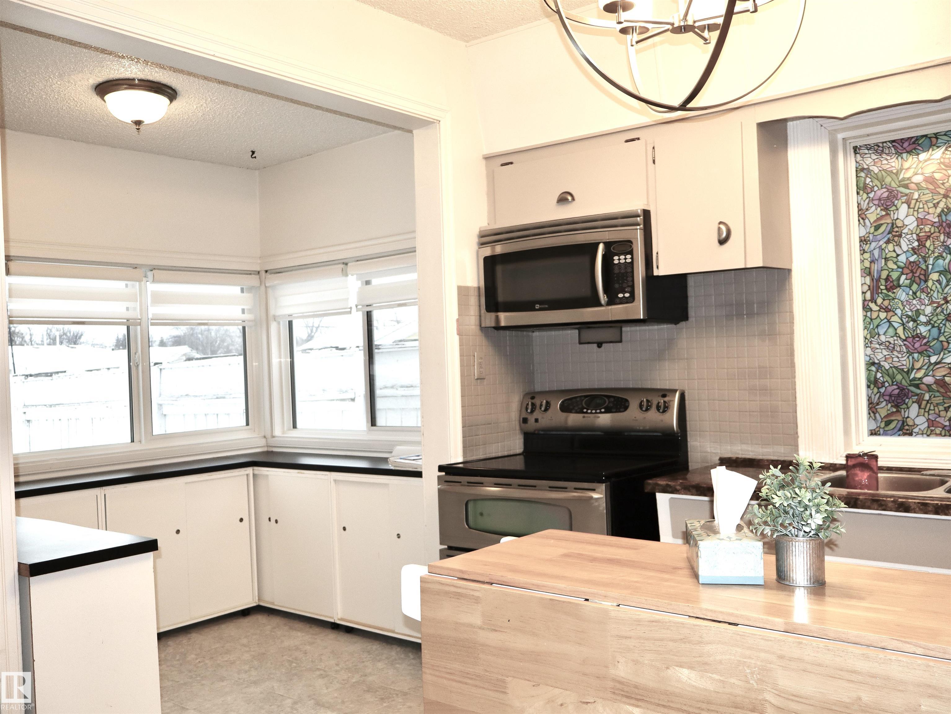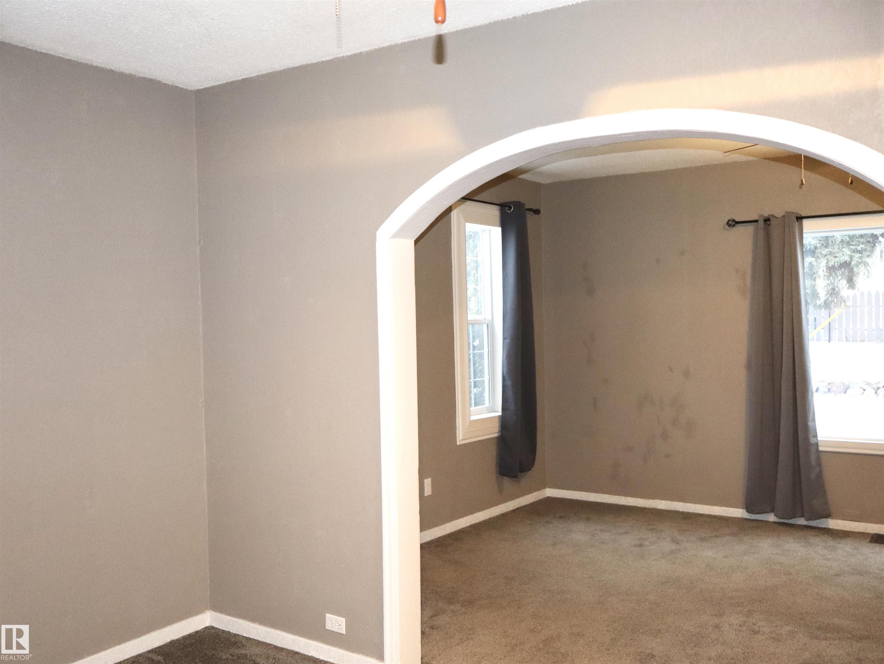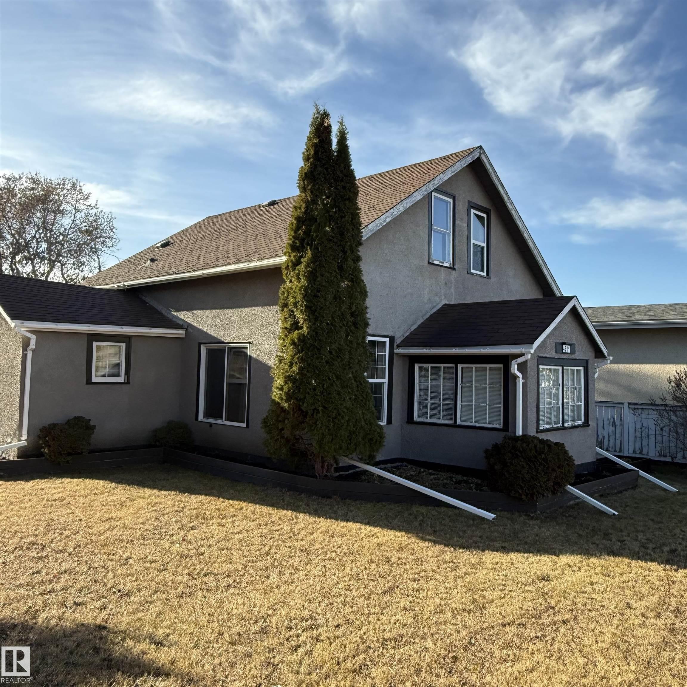 Beautifully renovated character home full of charm, located in the welcoming community of Barrhead on a huge, thoughtfully landscaped corner lot. Inside, you?ll find large rooms with soaring ceilings, graceful arched doorways, and an abundance of natural light throughout. The main floor offers convenient laundry, a large kitchen with a spacious ?butler?s pantry? area, and two inviting living spaces that can be styled as a formal front sitting room and a cozy family room. A full bathroom and a main-floor bedroom complete this level. Upstairs are three bedrooms that can be enjoyed separately or combined to create an oversized primary suite, along with a two-piece bathroom that offers potential for expansion into a full bath. Outside, the beautifully landscaped lot provides plenty of space to enjoy, and an oversized double detached garage adds extra value. A wonderful opportunity for first-time buyers or investors looking for a home with character and heart.