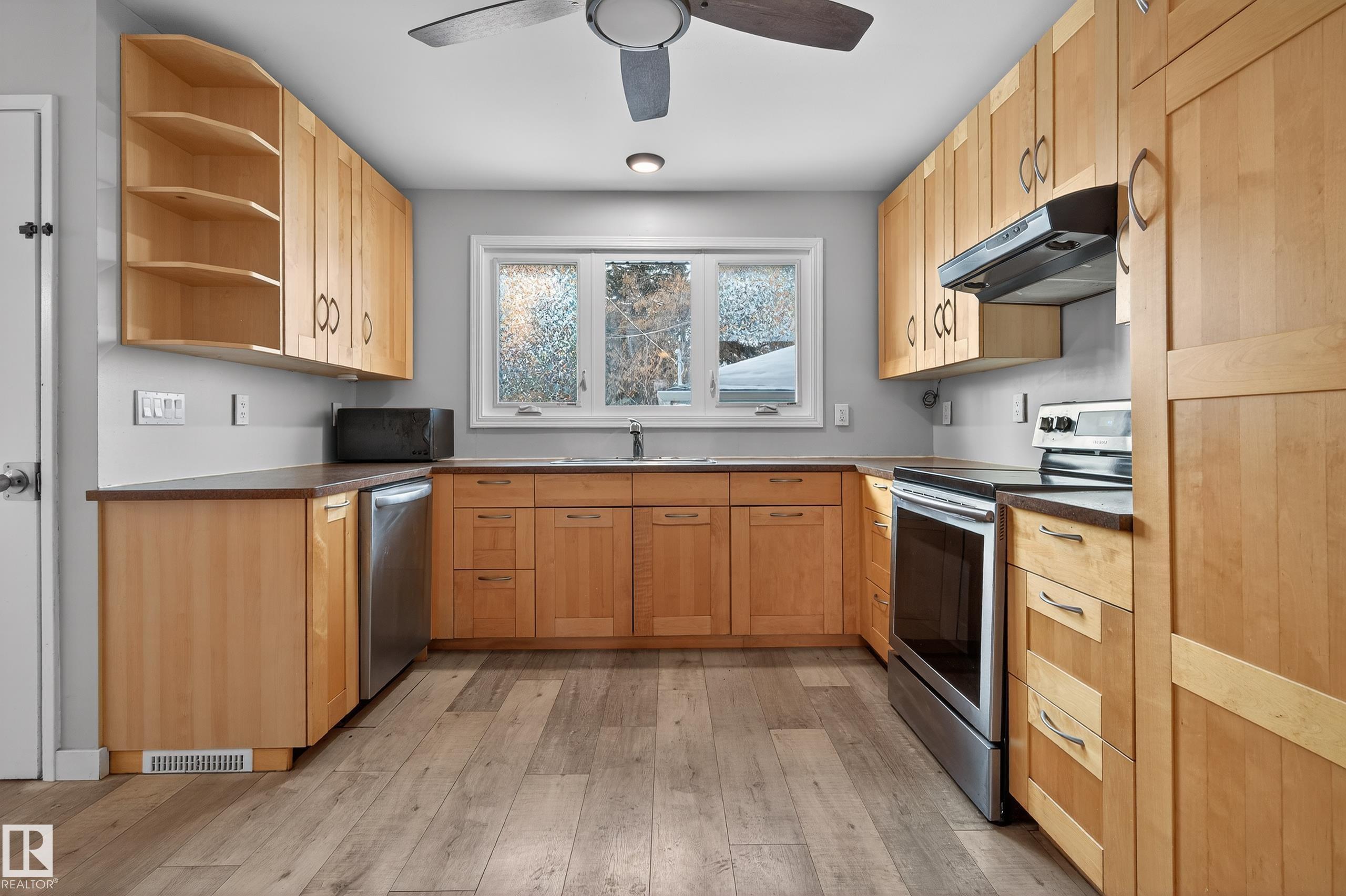 Discover this exceptional 6-bedroom, 2-bathroom bungalow with an impressive 50? wide lot located in the desirable Elwood neighborhood ?a true standout in today's competitive market. Lovingly maintained and move-in ready, the residence features a sleek modern kitchen with contemporary cabinetry and finishes, newer vinyl windows for superior energy efficiency and low maintenance, plus a stylishly updated full bathroom on the main floor?complete with a generous double vanity for added convenience. The fully finished basement offers 3 additional bedrooms, plus the second full bathroom. Enjoy the practicality of a convenient double detached garage. Location is unbeatable. Families love the short walk to Elmwood School?Edmonton's first elementary to offer a dedicated STEM program, plus a top-tier Chinese (Mandarin) Bilingual Program. Quick access to West Edmonton Mall for world-class shopping, dining, and entertainment. Commuting is a breeze with swift access to the Whitenid Freeway
