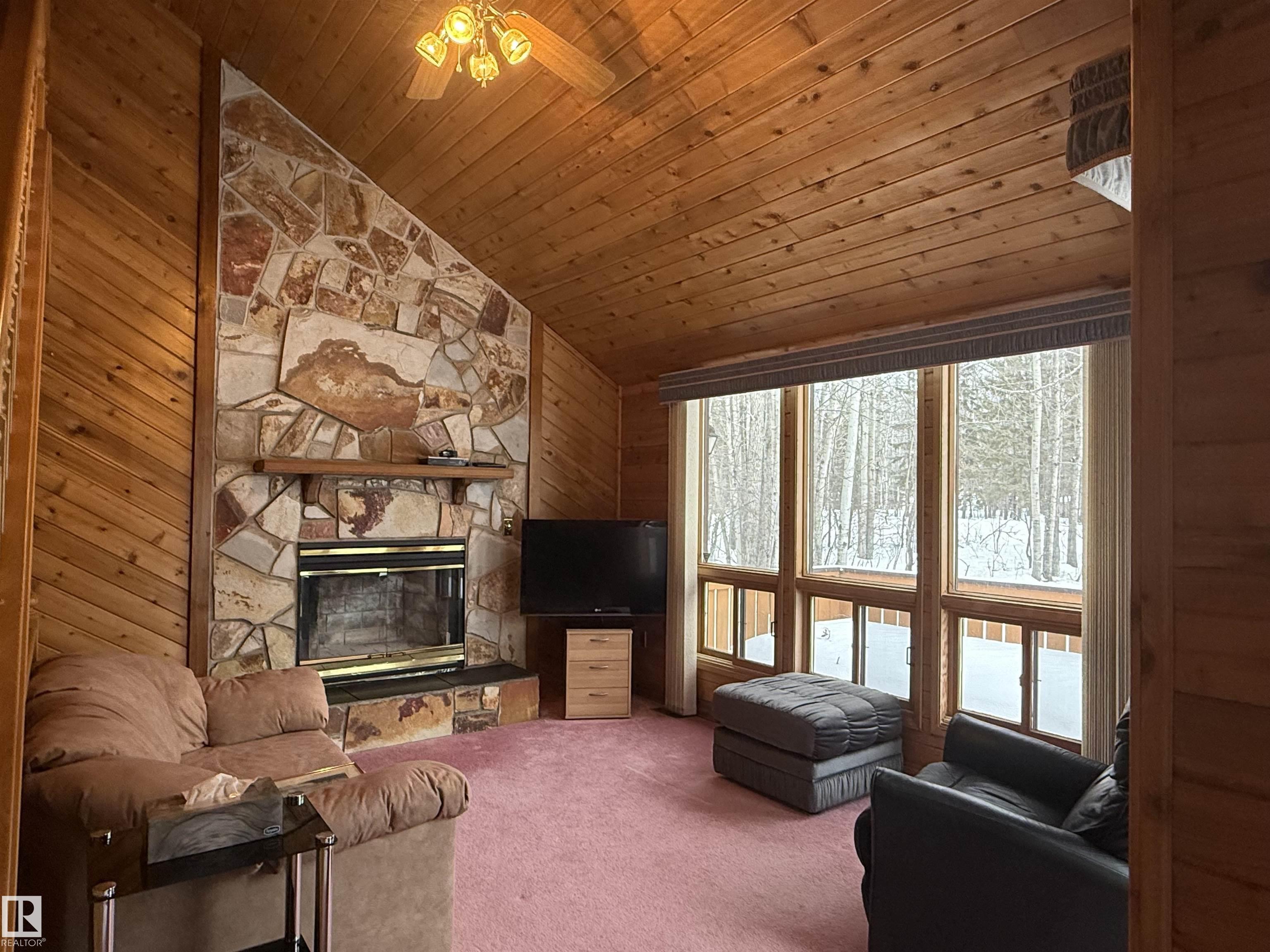 Welcome to this quaint and beautifully maintained lake cottage, perfectly positioned on a private half-acre back lot with reserve land behind, offering peace, privacy, and the best of lake life without the crowds. This charming 11/2-storey home is just steps from the boat launch, with paved access right to the driveway, and includes exclusive access to a stunning beachfront and playground?ideal for families, guests, and summer memories. Inside, you?ll immediately feel the care and pride of ownership. A wood-burning fireplace anchors the main living space, while large windows frame gorgeous nature views, filling the home with natural light. The lush, manicured yard creates a serene outdoor retreat, perfect for morning coffee or evening fires under the stars. The layout is thoughtful and inviting: ? Primary suite on the main level ? Two spacious bedrooms and a full bathroom upstairs ? Basement featuring a recreation room, wet bar, and versatile flex room?perfect for guests, games.