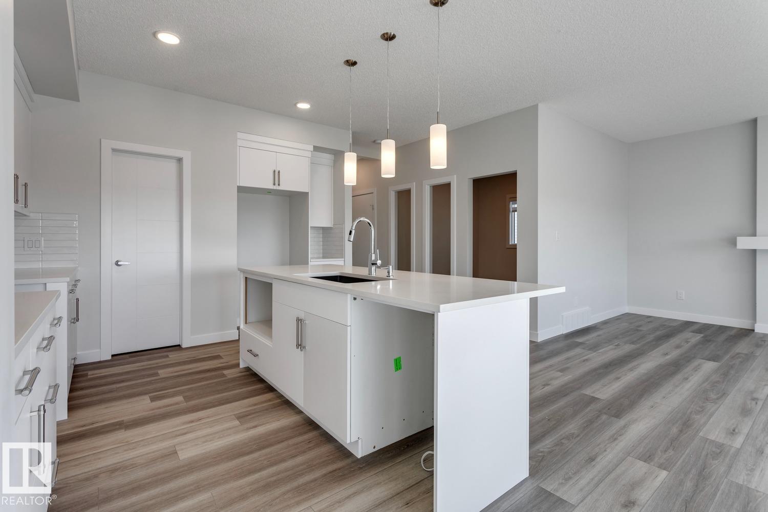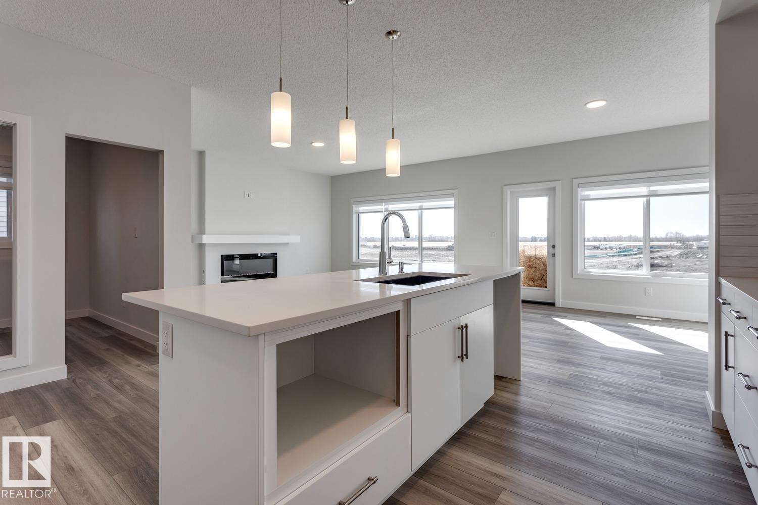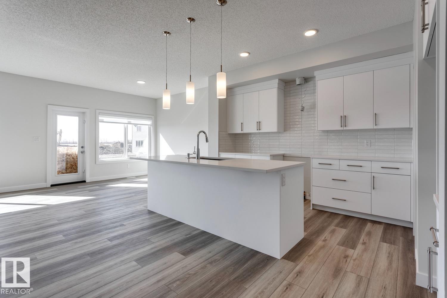 OVER 2200 SQ FT....BACKING POND/RESERVE...WALK TO SCHOOL...SEPARATE SIDE ENTRANCE W/BASEMENT PLUMBING ROUGHED IN...APPLIANCE ALLOWANCE INCLUDED!...~!WELCOME HOME!~ This amazing home has main floor 9 ft ceilings, and you won't believe the GORGEOUS FINISHES! Open concept kitchen/living/dining, with LUXURY VINYL PLANK throughout. Kitchen boasts two-tone cabinetry, large island, stone countertops, upgraded backsplash, island with eating bar, and a HUGE WALK-THRU PANTRY to mudroom with built-ins. Perfect den off kitchen as flex, dining or home office. Living area has large windows overlooking backyard, with cozy electric fireplace. Upstairs you will be amazing, with a loft space, three spacious bedrooms, CONVENIENT UPSTAIRS LAUNDRY, and 4 pce bath. Primary is a retreat on its own, with massive walk in closet, and 5 pce ensuite that is perfect with his and her sinks, large shower and free standing tub. Enjoy the privacy NO NEIGHBORS BEHIND. New school ACROSS THE STREET, What more could you ask for?