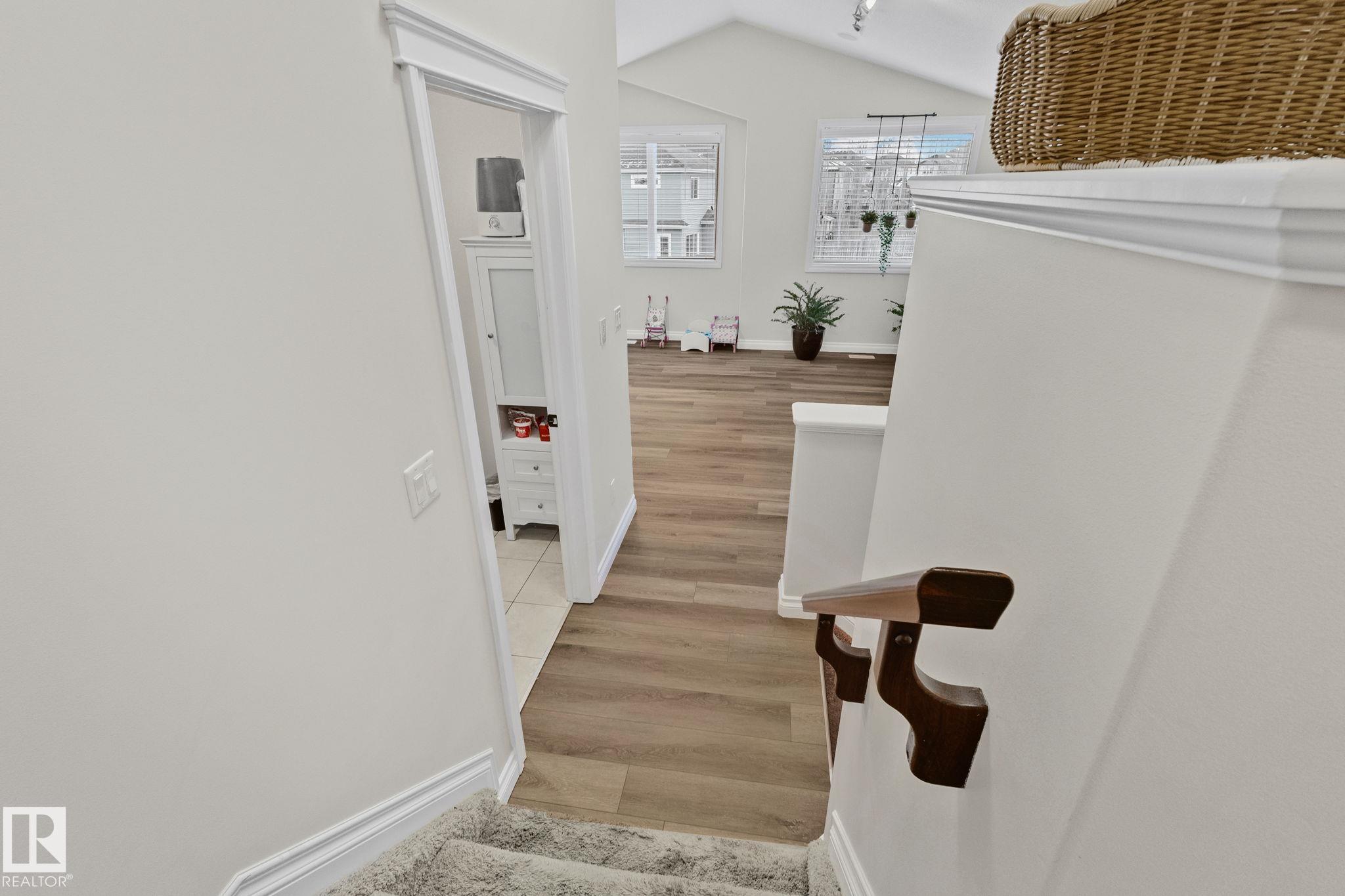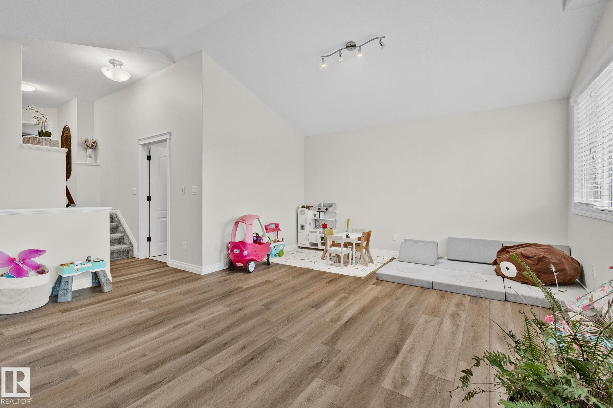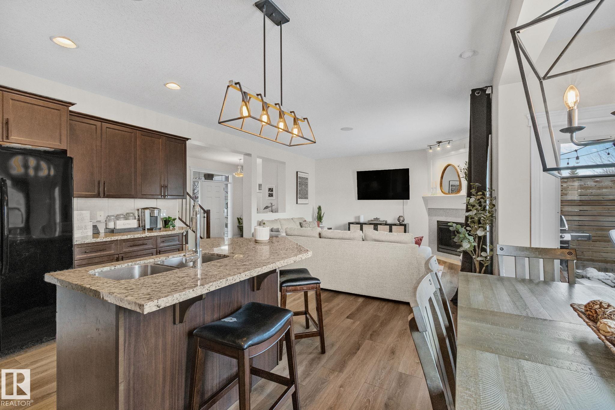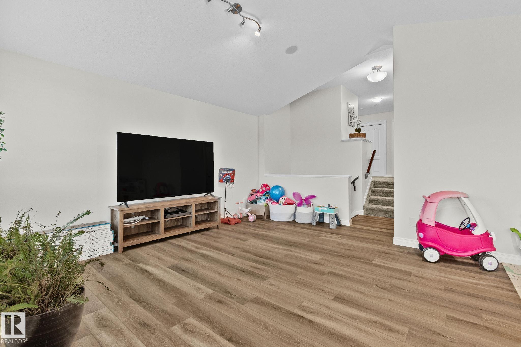 This home is Beautiful. Curb Appeal 10/10 - Giant Covered front entrance, dark rundle stone...and the Backyard is great with mature trees, play structure, beautiful deck with privacy screen, gas BBQ connection! It's perfect! Inside, over 2000 sq ft 2 storey with a very OPEN and unique layout. MASSIVE Light filled bonus room with TALL vaulted ceilings and beautiful architectural cuts. True laundry room just off the bonus room. 3 beds up, 2 bathrooms, great Primary room with a soaker tub and shower ensuite. A/C!! Main Floor is wide open - LARGE front entrance, open view of the living room and that custom fireplace built in. Newer vinyl plank on main and bonus room, Granite countertops, BEAUTIFUL kitchen has Maple Cabinets, Large Island, Corner Pantry. Take 3 Steps down into your 1/2 Bath, Bench for storage and Double Garage entrance. Basement has been fully FRAMED for bedroom, bathroom, storage and living area. WALK to JUBILEE PARK, Schools, Restaurants, Quick Edmonton Access!! 10/10!!
