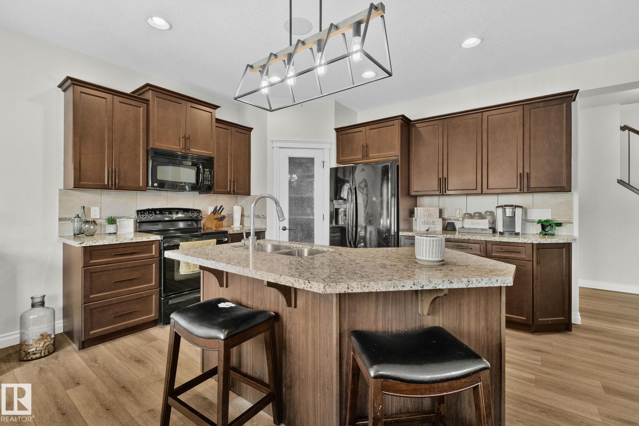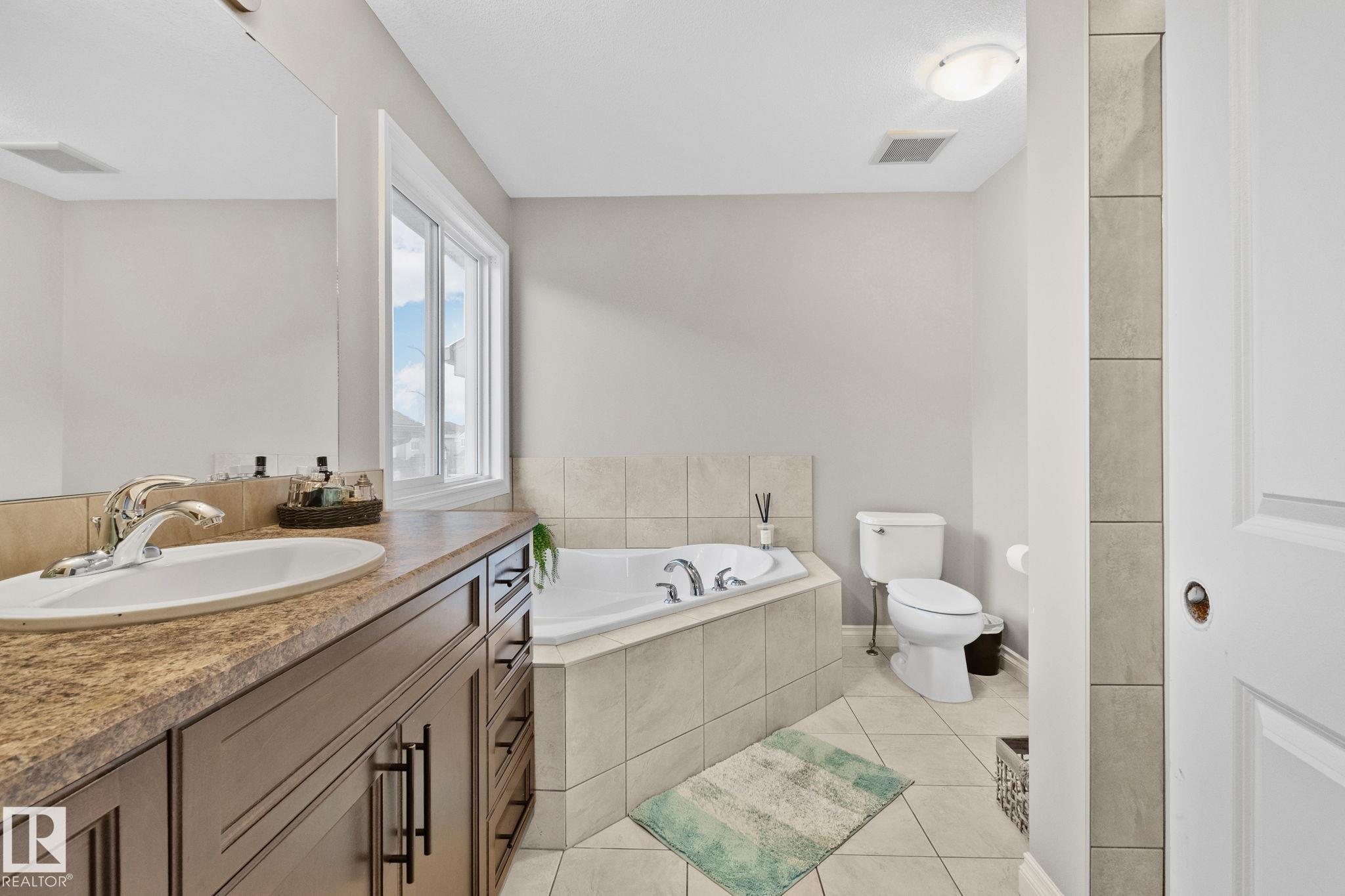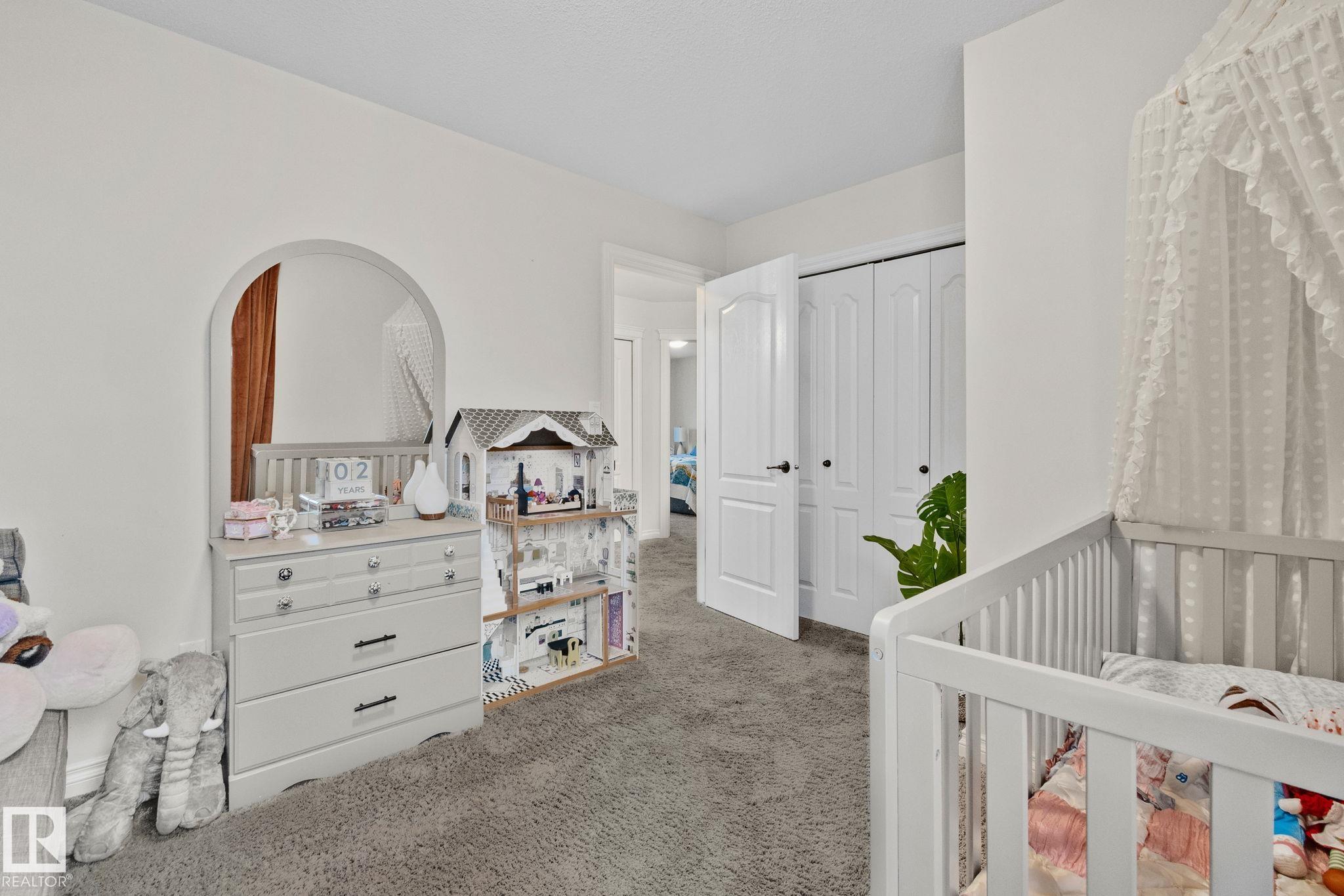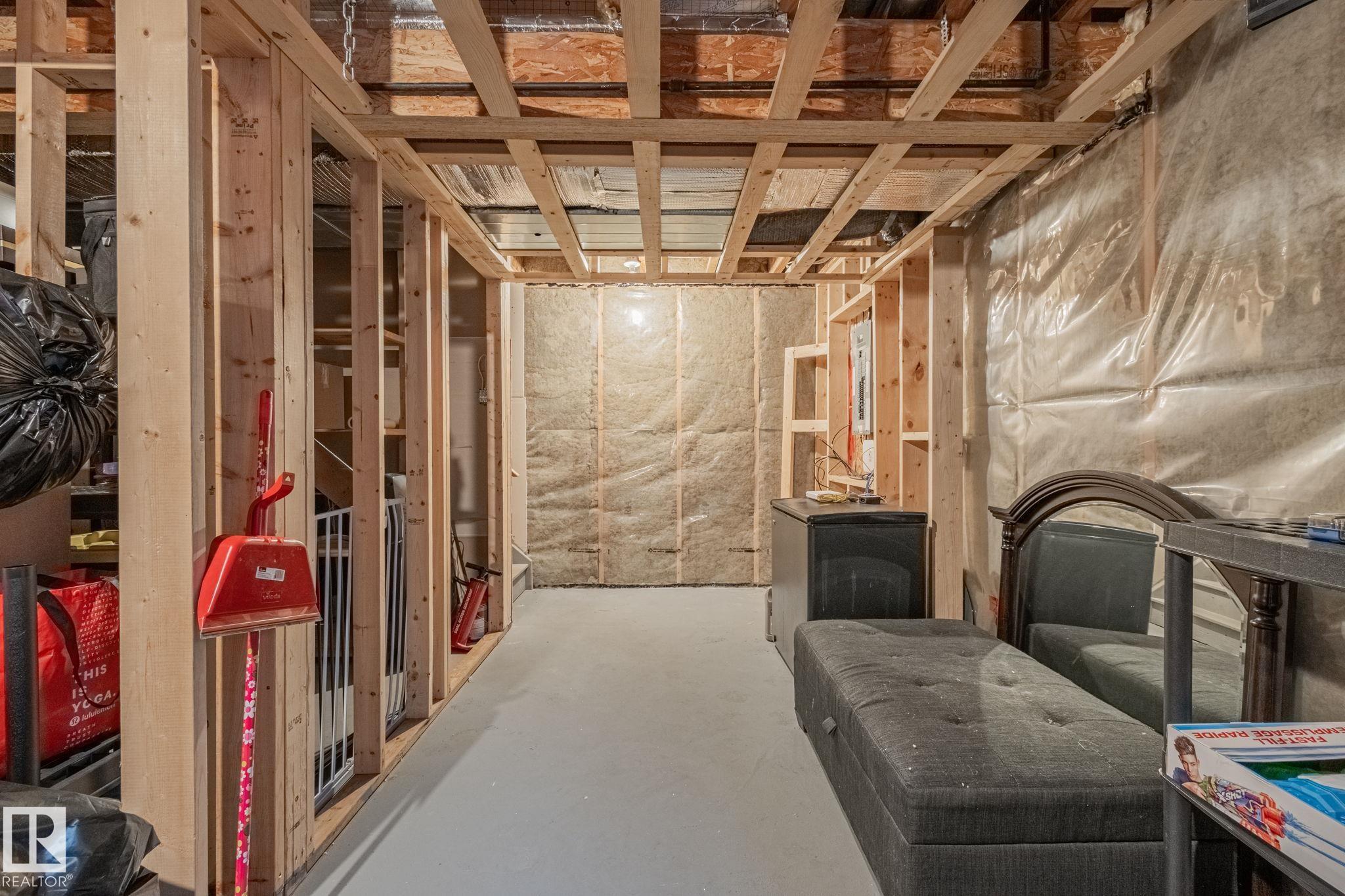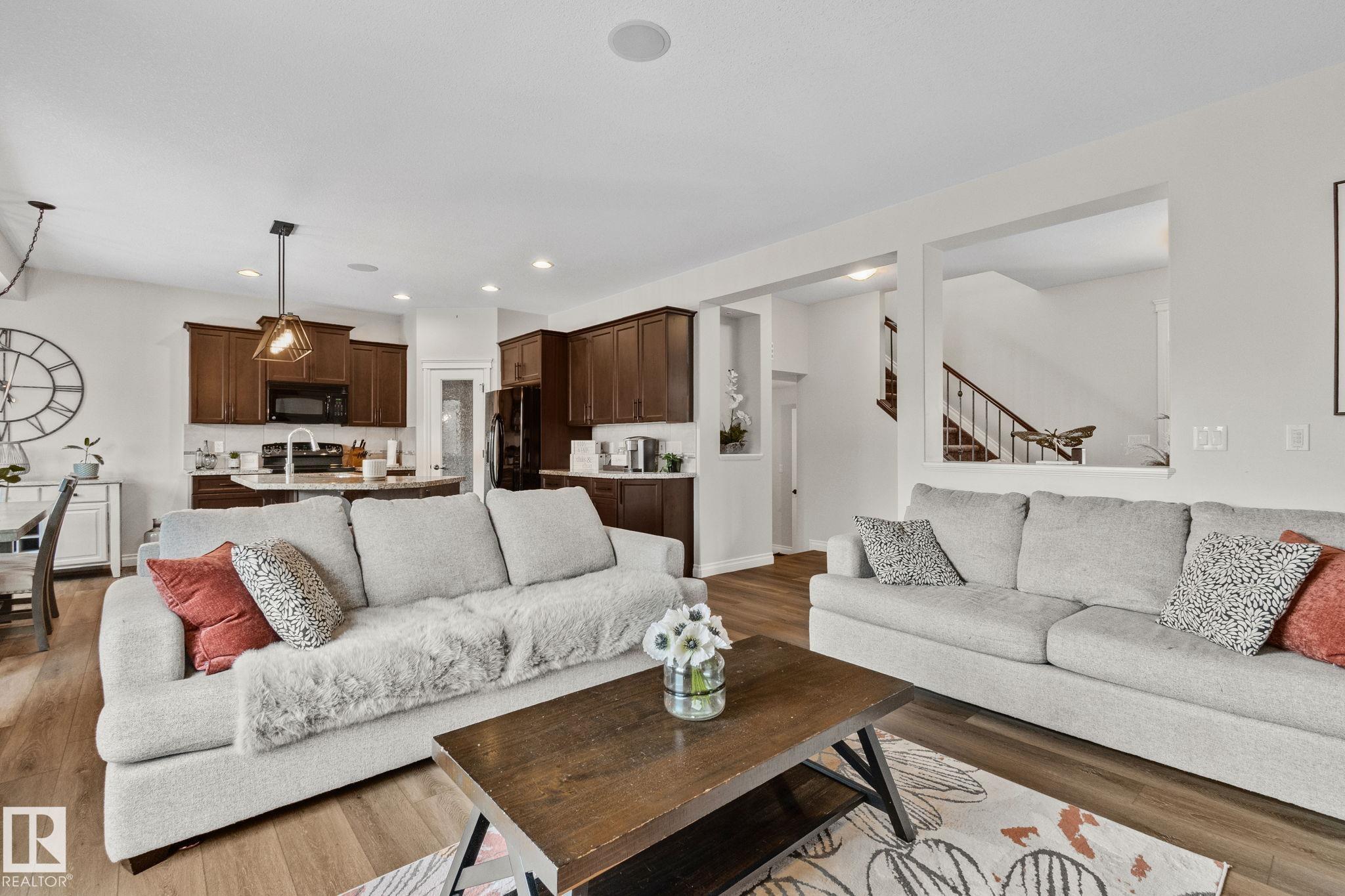 This home is Beautiful. Curb Appeal 10/10 - Giant Covered front entrance, dark rundle stone...and the Backyard is great with mature trees, play structure, beautiful deck with privacy screen, gas BBQ connection! It's perfect! Inside, over 2000 sq ft 2 storey with a very OPEN and unique layout. MASSIVE Light filled bonus room with TALL vaulted ceilings and beautiful architectural cuts. True laundry room just off the bonus room. 3 beds up, 2 bathrooms, great Primary room with a soaker tub and shower ensuite. A/C!! Main Floor is wide open - LARGE front entrance, open view of the living room and that custom fireplace built in. Newer vinyl plank on main and bonus room, Granite countertops, BEAUTIFUL kitchen has Maple Cabinets, Large Island, Corner Pantry. Take 3 Steps down into your 1/2 Bath, Bench for storage and Double Garage entrance. Basement has been fully FRAMED for bedroom, bathroom, storage and living area. WALK to JUBILEE PARK, Schools, Restaurants, Quick Edmonton Access!! 10/10!!