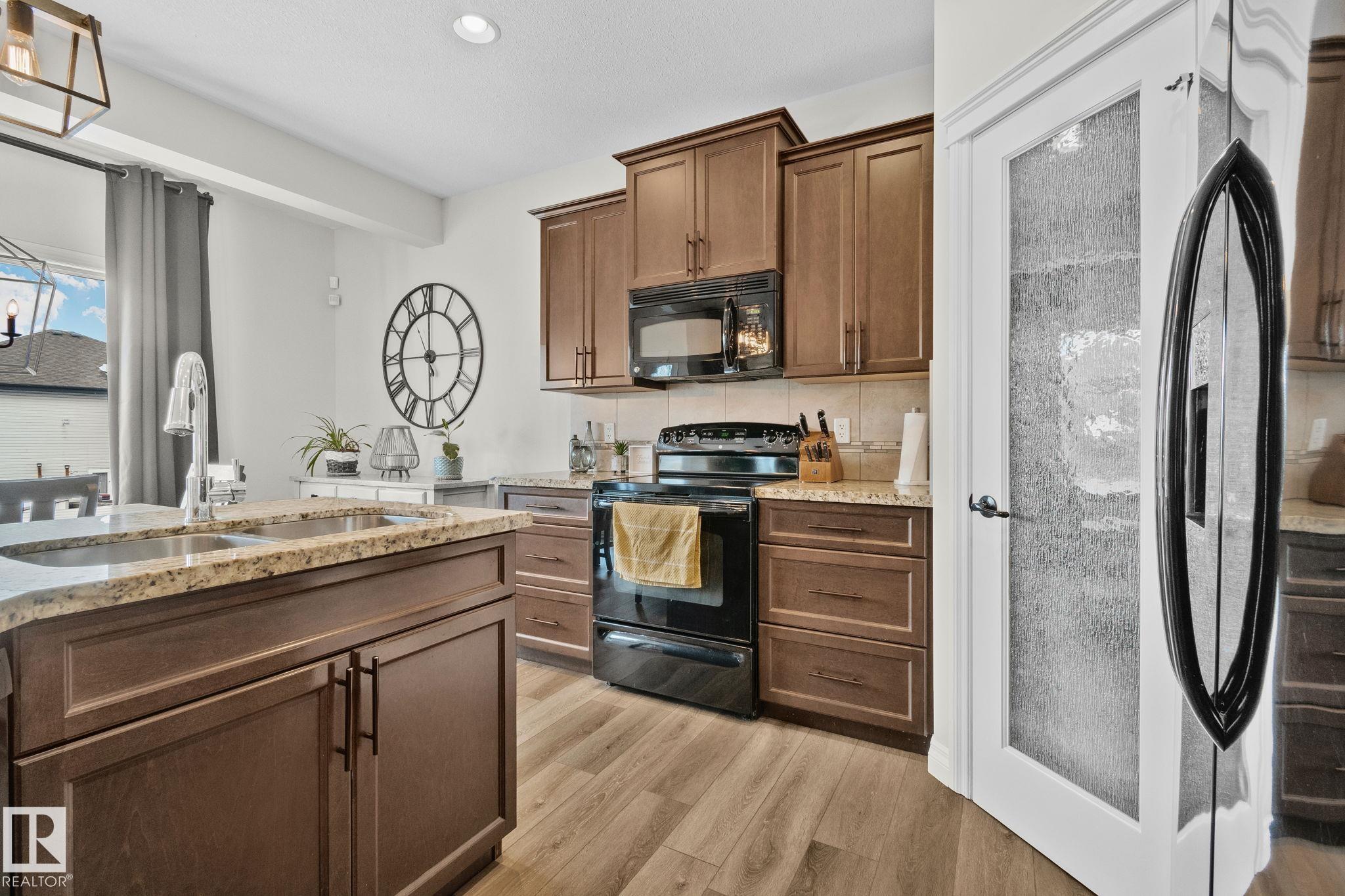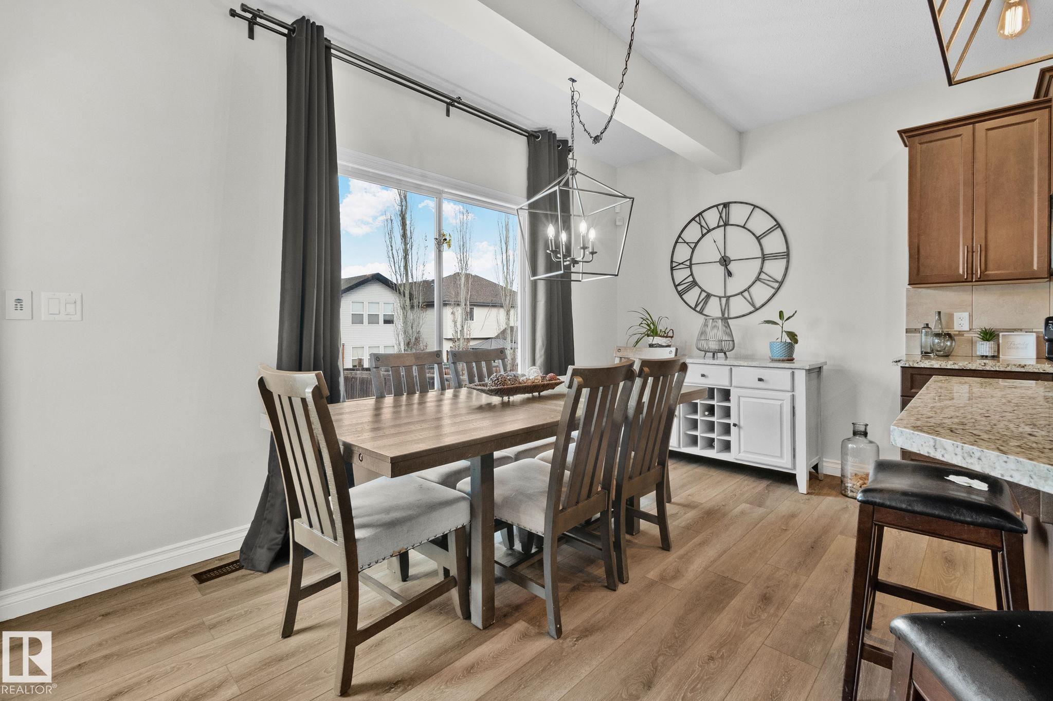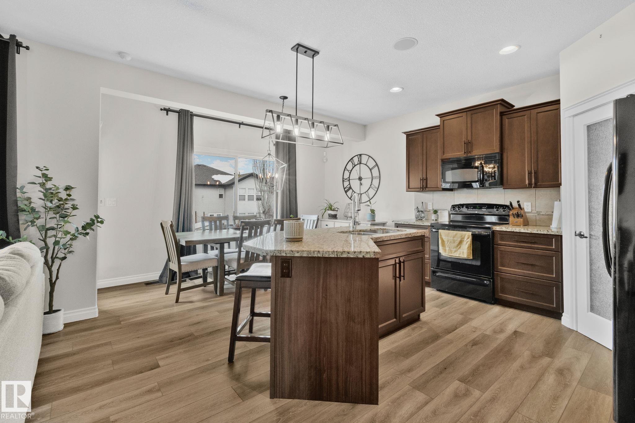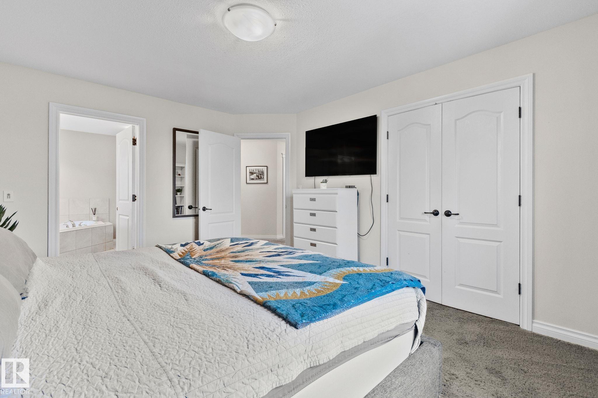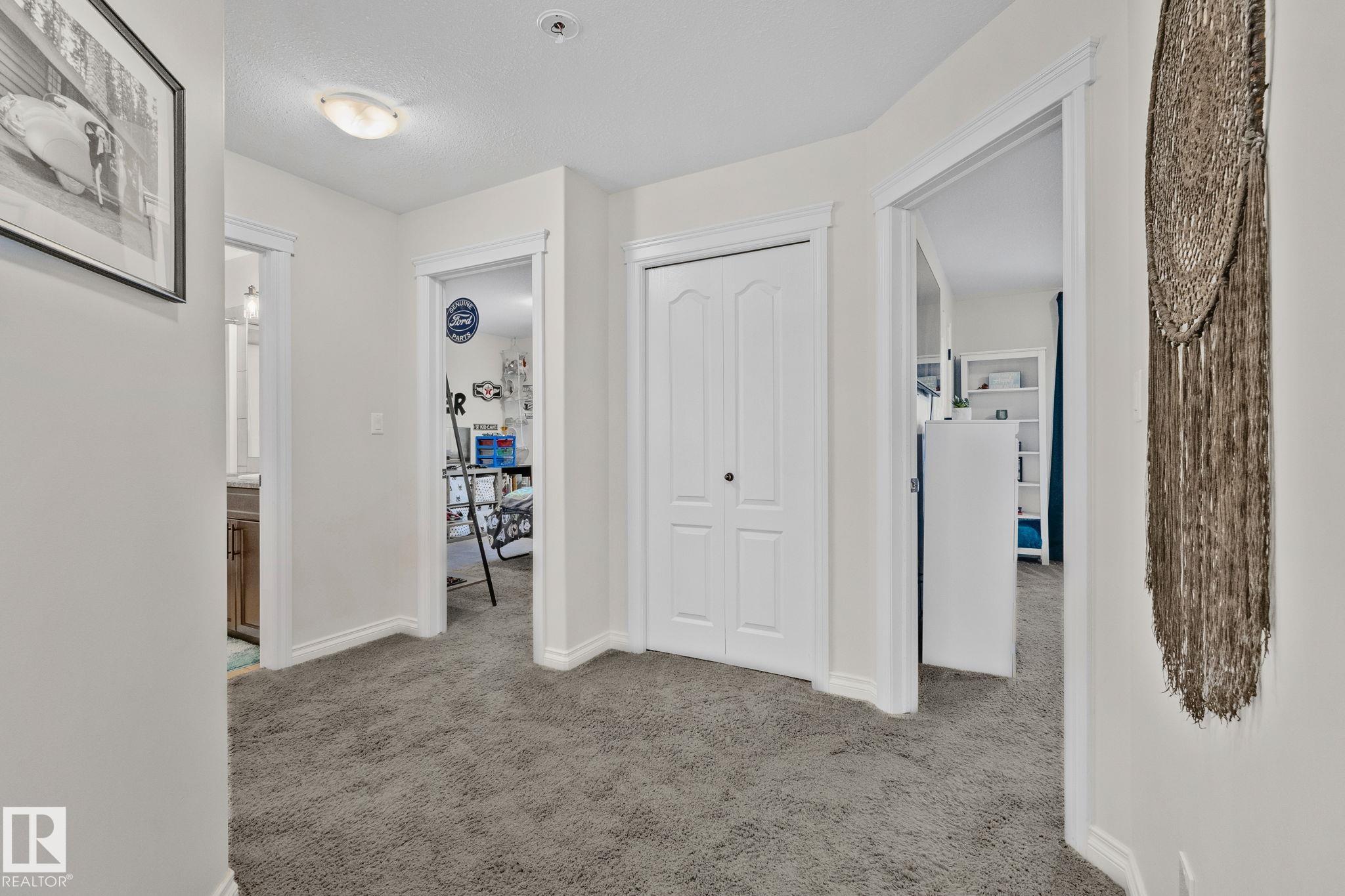 This home is Beautiful. Curb Appeal 10/10 - Giant Covered front entrance, dark rundle stone...and the Backyard is great with mature trees, play structure, beautiful deck with privacy screen, gas BBQ connection! It's perfect! Inside, over 2000 sq ft 2 storey with a very OPEN and unique layout. MASSIVE Light filled bonus room with TALL vaulted ceilings and beautiful architectural cuts. True laundry room just off the bonus room. 3 beds up, 2 bathrooms, great Primary room with a soaker tub and shower ensuite. A/C!! Main Floor is wide open - LARGE front entrance, open view of the living room and that custom fireplace built in. Newer vinyl plank on main and bonus room, Granite countertops, BEAUTIFUL kitchen has Maple Cabinets, Large Island, Corner Pantry. Take 3 Steps down into your 1/2 Bath, Bench for storage and Double Garage entrance. Basement has been fully FRAMED for bedroom, bathroom, storage and living area. WALK to JUBILEE PARK, Schools, Restaurants, Quick Edmonton Access!! 10/10!!