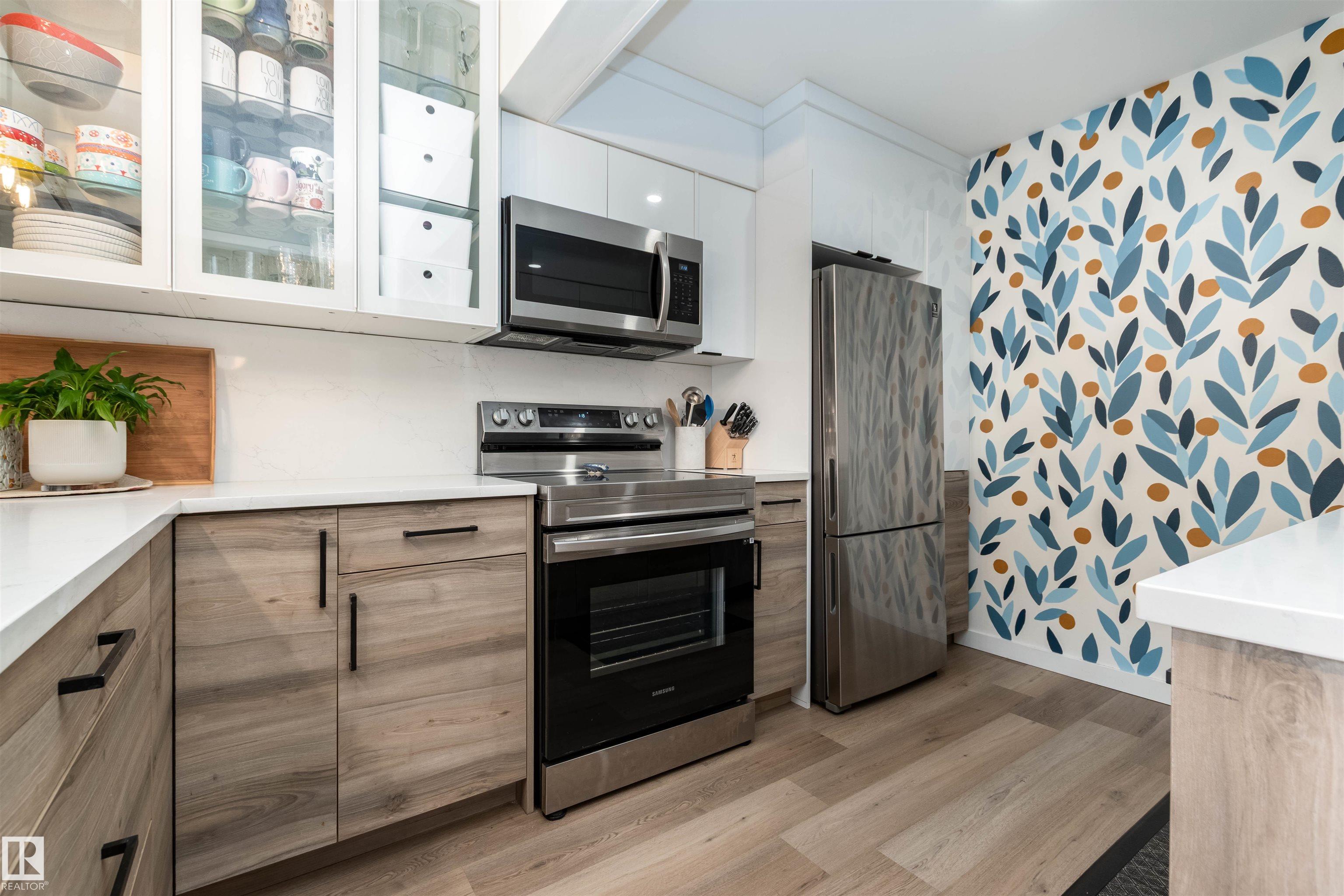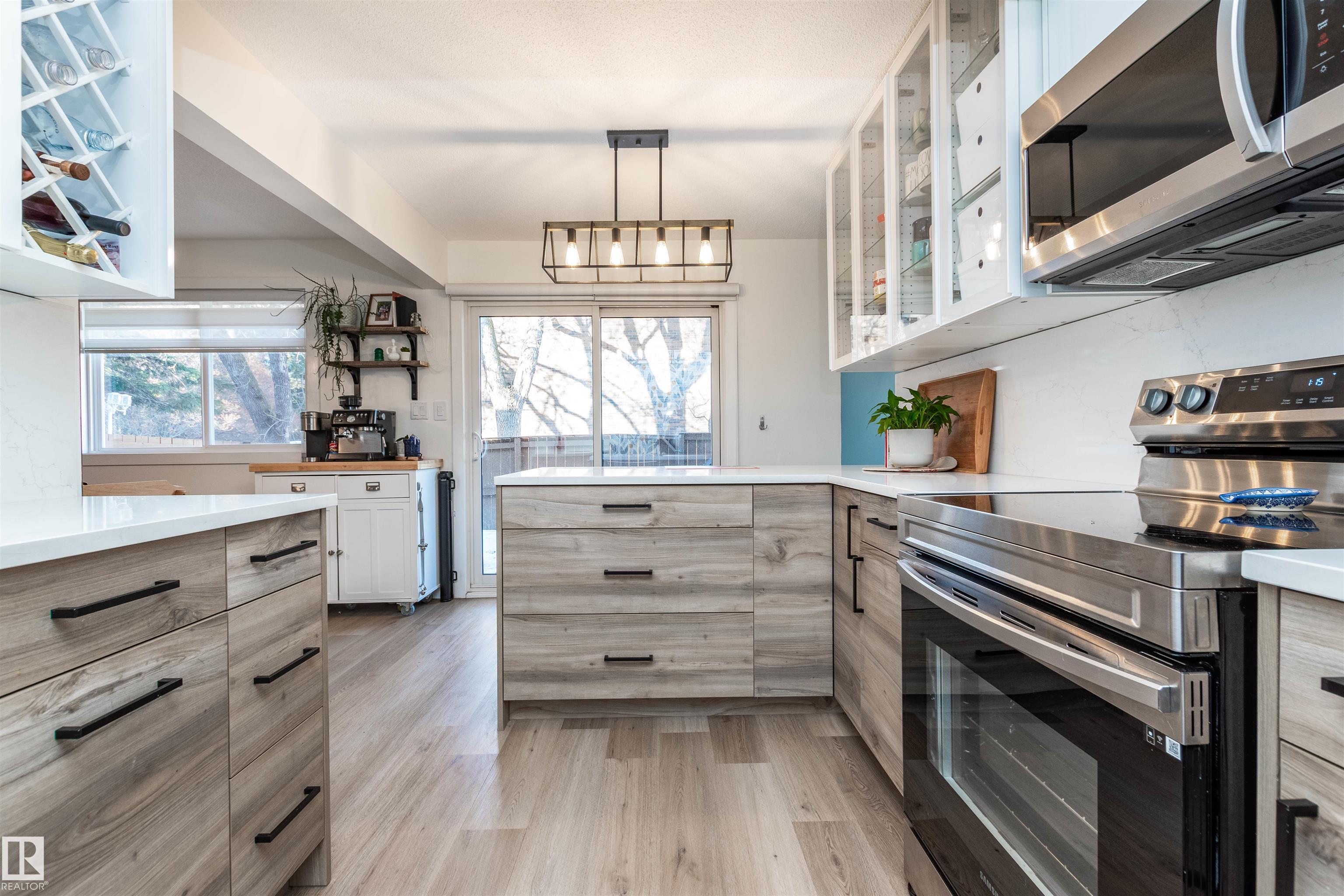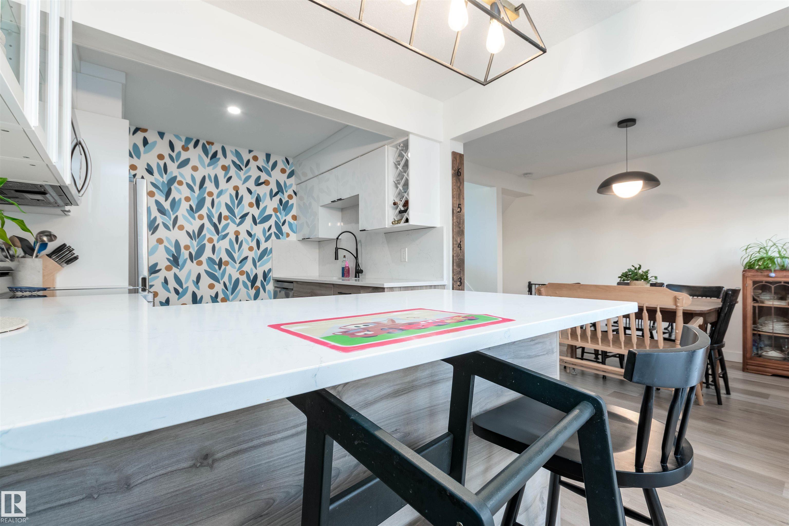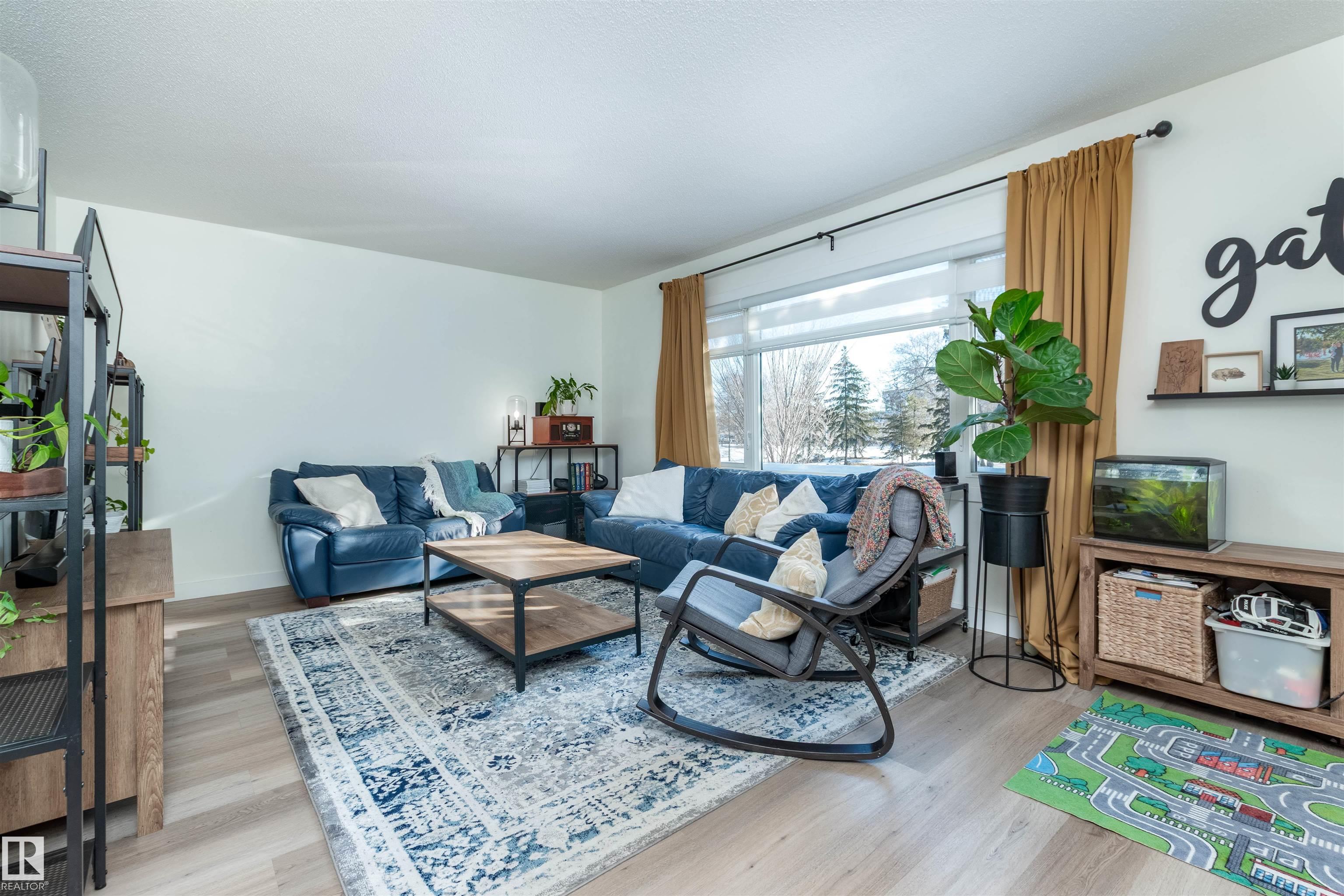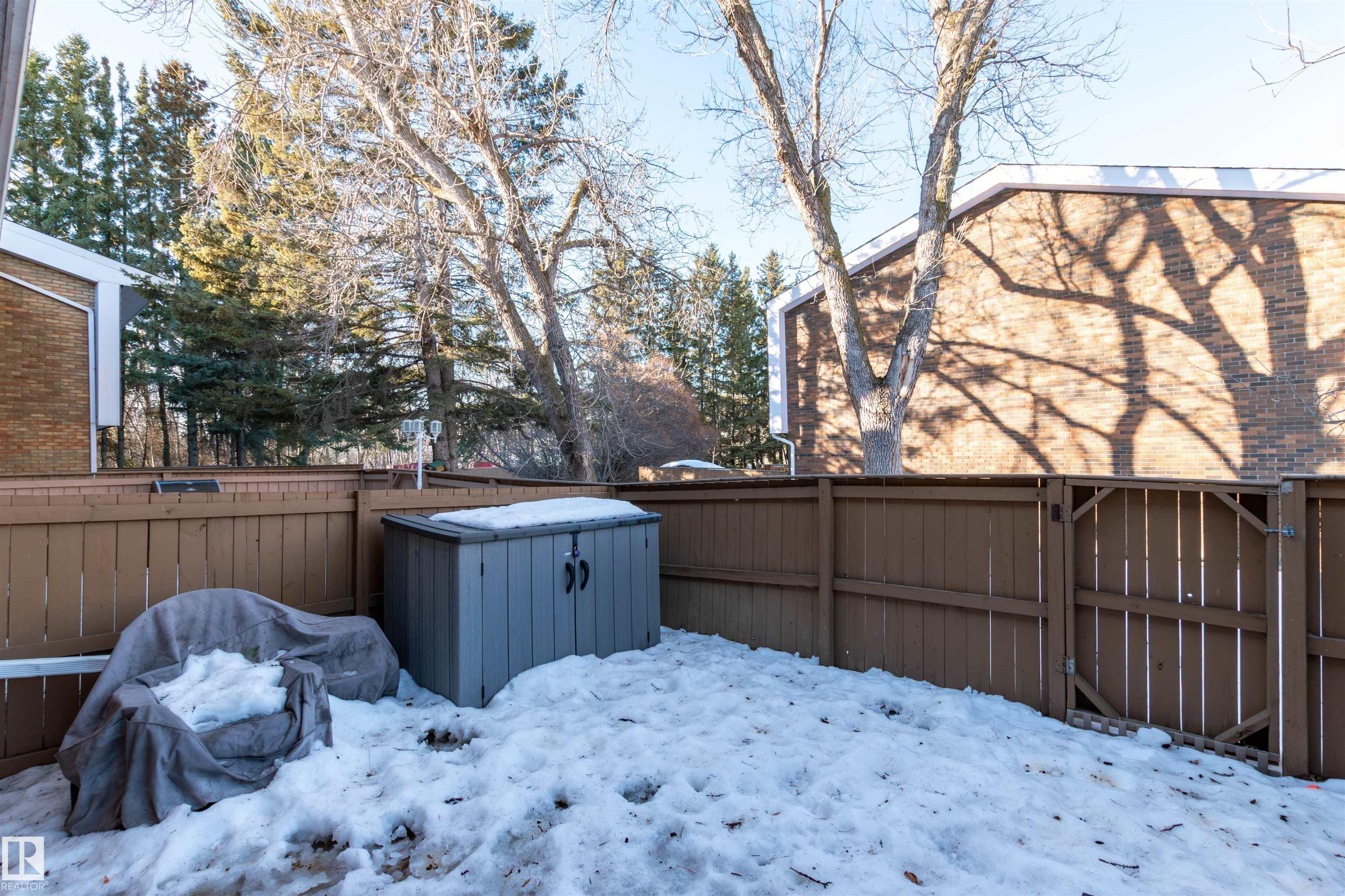 DISCOVER THIS RARE 5-LEVEL SPLIT CONDO in the heart of Sherwood Park! This home features QUARTZ COUNTERTOPS, TILE BACKSPLASH,White cabinets with glass showcase cabinets and island, along with modern sinks and taps for a fresh, timeless look. The spacious layout includes a spacious LIVINNG ROOM, and a large PRIMARY BEDROOM with vaulted ceiling and DEEP CLOSET. The main bath is finished with dble sinks and tiled surround tub/shower. Enjoy a PRIVATE YARD with concrete patio stones, perfect for relaxing in peace and quiet. Added functionality in basement is a crawl space for storage, family room, den and laundry. Attached oversized single (20x10)with tandem driveway. Nestled in a WELL-TREED, QUIET complex, the location is unmatched, just steps from the GOLF COURSE, tennis club, Broadmoor Lake with perfect view for firework celebrations, Festival Place, and Kinsmen Pool. Easy access to Broadmoor Blvd. A perfect balance of NATURE, LIFESTYLE, and MODERN UPGRADES in one of Sherwood Park?s most desirable settings!