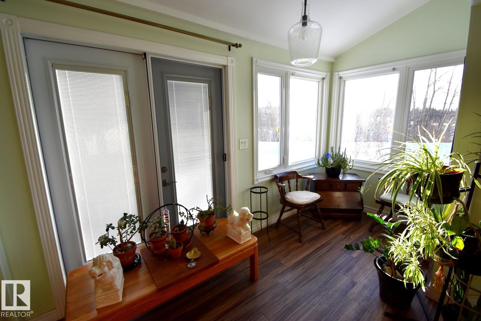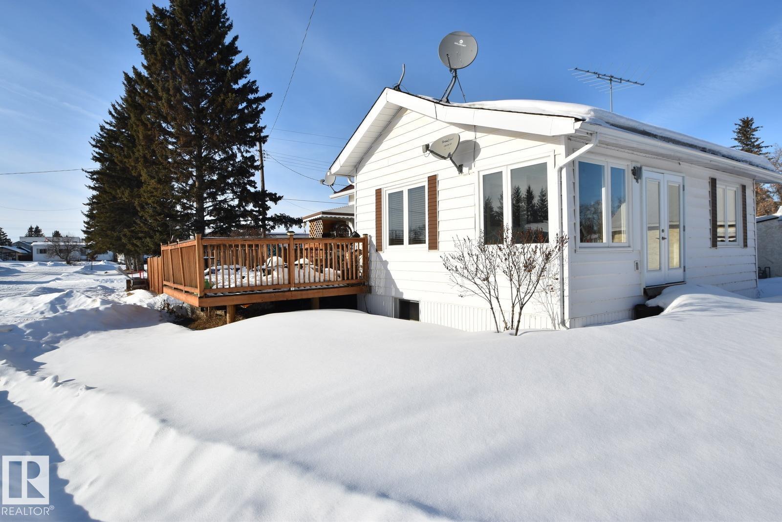 Affordable Small-Town Living with serene views! Welcome to this cozy home in the Village of Waskatenau! Offering 2 bedrooms plus a den, a bright sunroom at the front entry, and a spacious living room with a wall-mounted electric fireplace and large windows. The kitchen opens to a south-facing deck overlooking a ravine across the road, where you can enjoy your morning & evening sunshine! The primary bedroom features patio doors leading to a private, fully fenced backyard. Additional highlights include an attached carport to park in, and a basement with laundry, utilities, and a large windowed room suitable for future bedroom or recreation space. The Village of Waskatenau backs onto the Iron Horse Trail. Has most amenities nearby including a K-12 school and arena + more. Conveniently located one hour NE of Edmonton at the junction of Hwy 28 & Hwy 831.