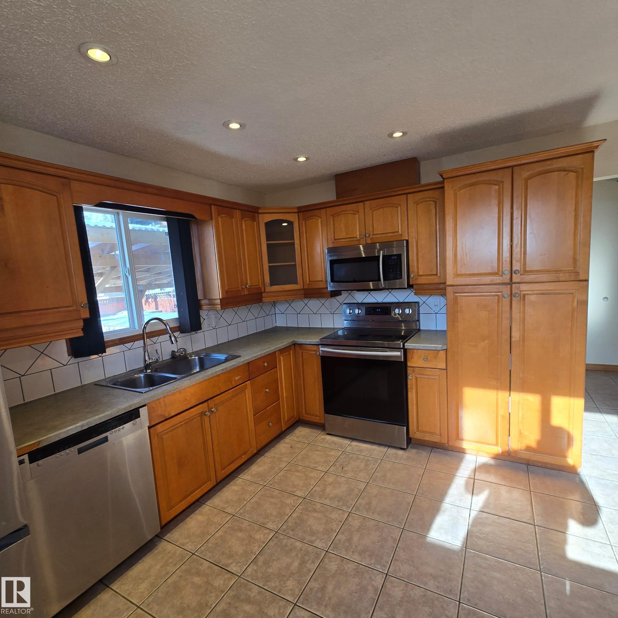 Spacious bungalow available for rent in the desirable Belmont neighborhood! Over 1,300 sq ft of living space with a bright sunken living room featuring a cozy gas fireplace, a formal dining area, and a modern kitchen with updated cabinetry, appliances, and recessed lighting. The main floor includes three bedrooms, including a primary with a 2-piece ensuite, plus a full bathroom. The fully finished basement offers a fourth bedroom, full bathroom, and two recreation areas?perfect for families or entertaining. Enjoy a private backyard with mature oak and apple trees, deck, stone fire-pit area, garden, and storage shed. Drive-up parking pad included. Recent updates include roof, windows, furnace, hot water tank, and appliances. Conveniently located near Kennedale Ravine, Hermitage Park, schools, shopping, and transit. Ideal for families seeking space, comfort, and a great location