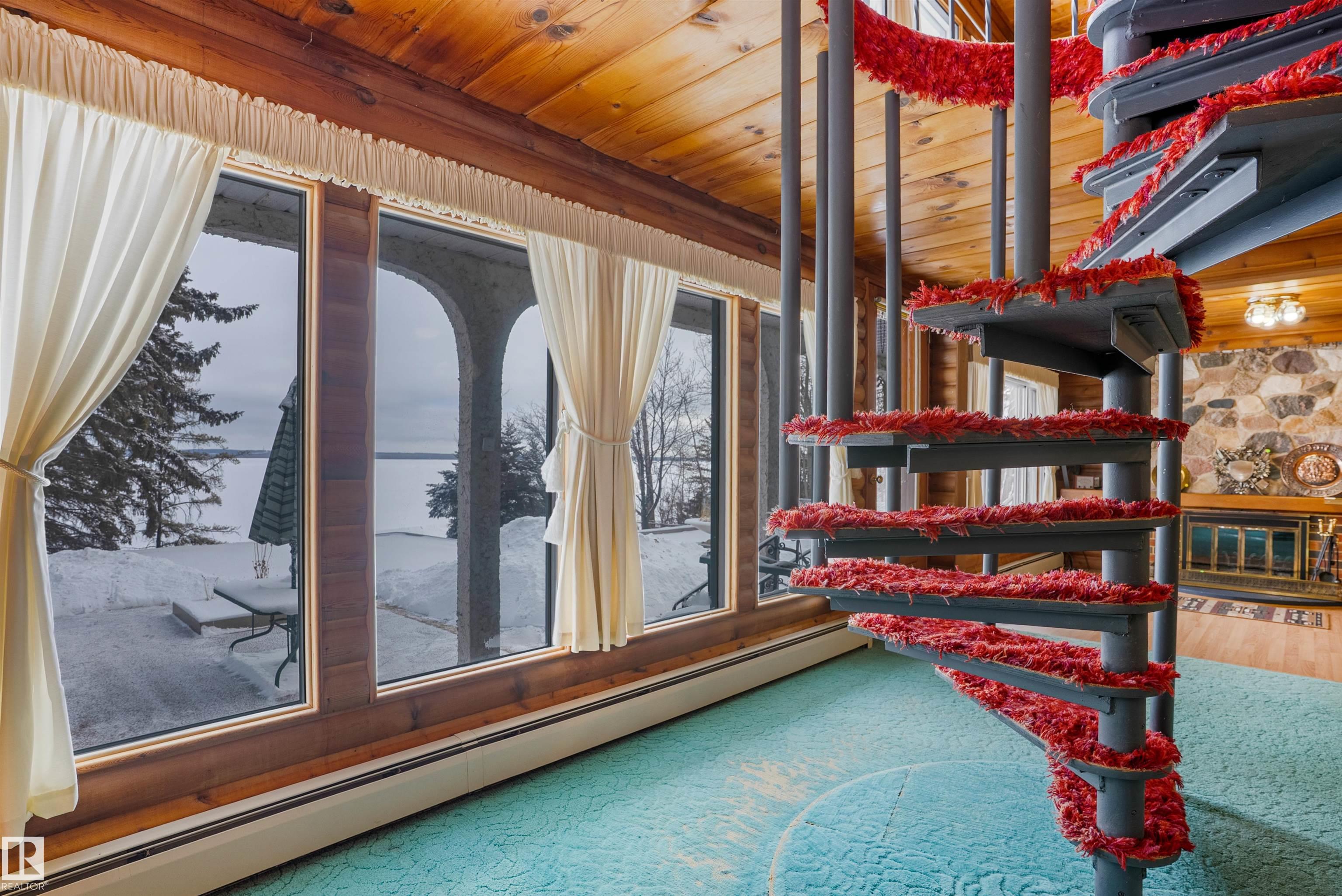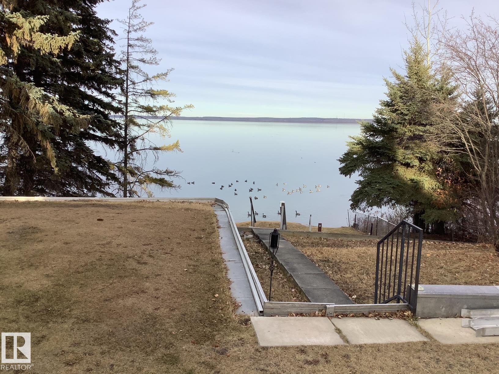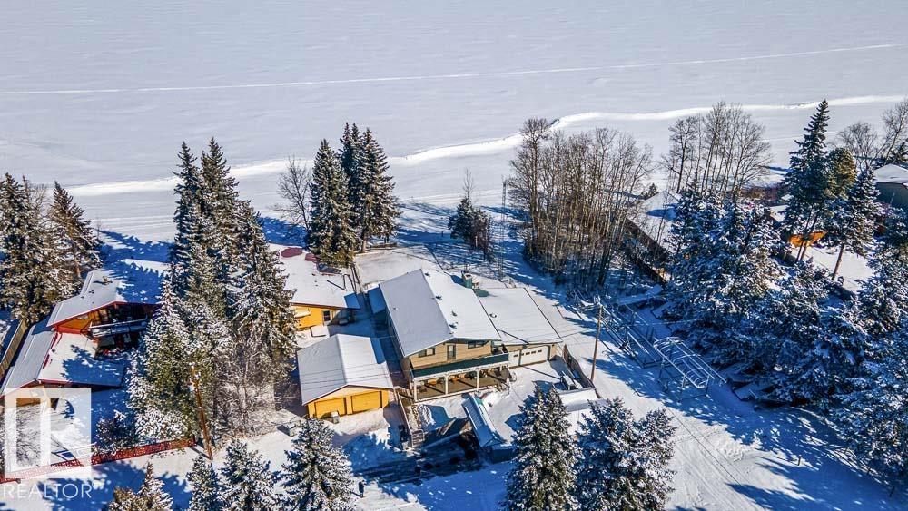 Welcome to Norris Beach, featuring one of the largest lakefront lots in the community and on Pigeon Lake. Enjoy excellent waterfront with a deep drop off and water conditions. This is perfect for those who value clean water and a beautiful shoreline. The lot measures 60 ft wide with a west lot line of 132.86 ft and an east lot line of 167 ft, plus nearly an additional 30 ft of length near the shoreline beyond the property line. Property is also bordered by a municipal reserve on one side offering added privacy. Nearly 2,000 sq ft home includes a double oversized attached garage (27.7x35.8 ft) offers 4 bedrooms, two large balconies, and expansive windows that capture stunning lake views. Additional features include a durable metal roof, powered overhead entrance gate, two automatic lawn mowers, a boiler heating system, Drilled well, circular metal staircase, two fireplaces (gas and wood), a sauna, breathtaking bonus room overlooking the water and a municipal Sewer System! 2 Mins to Village at Pigeon Lake!