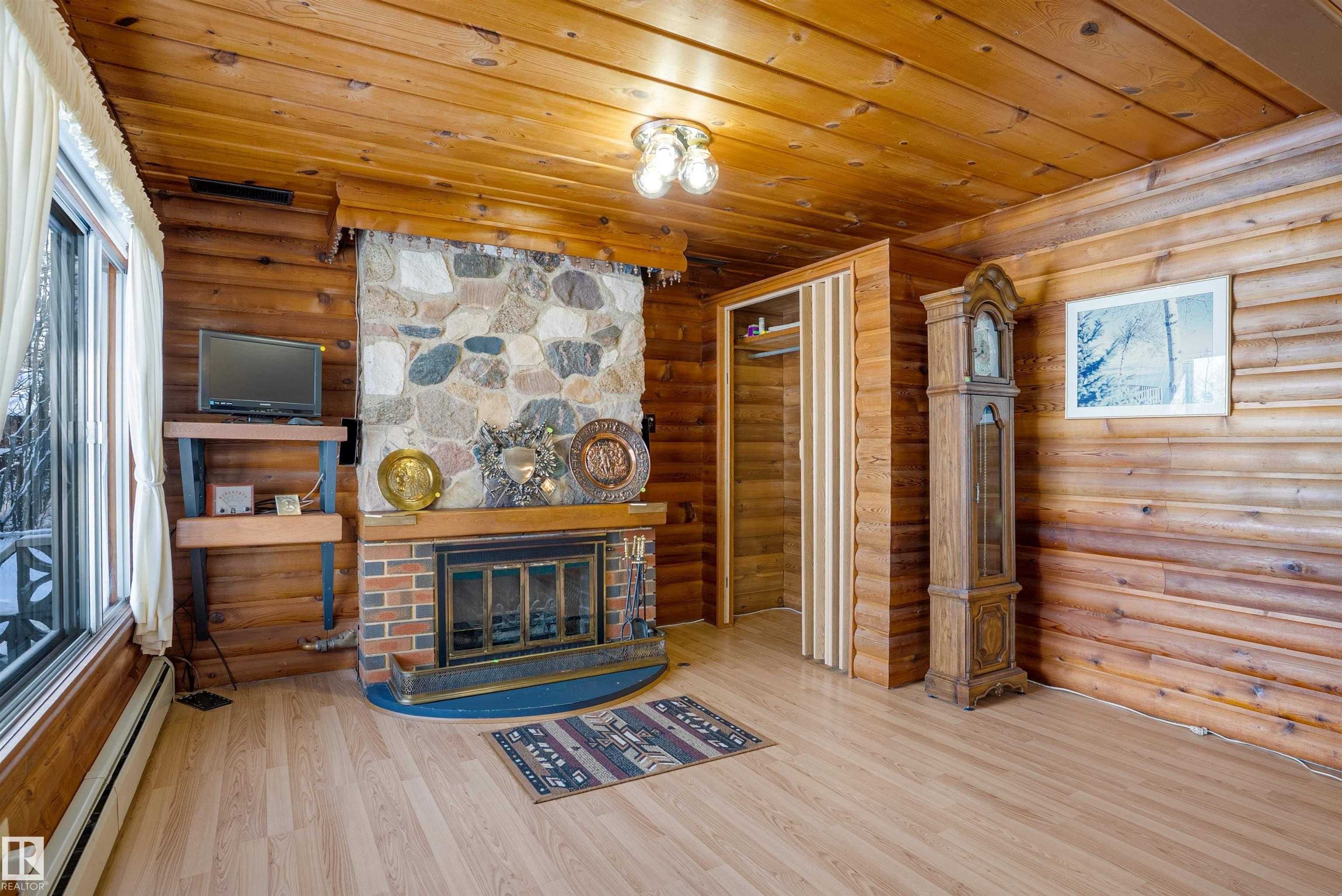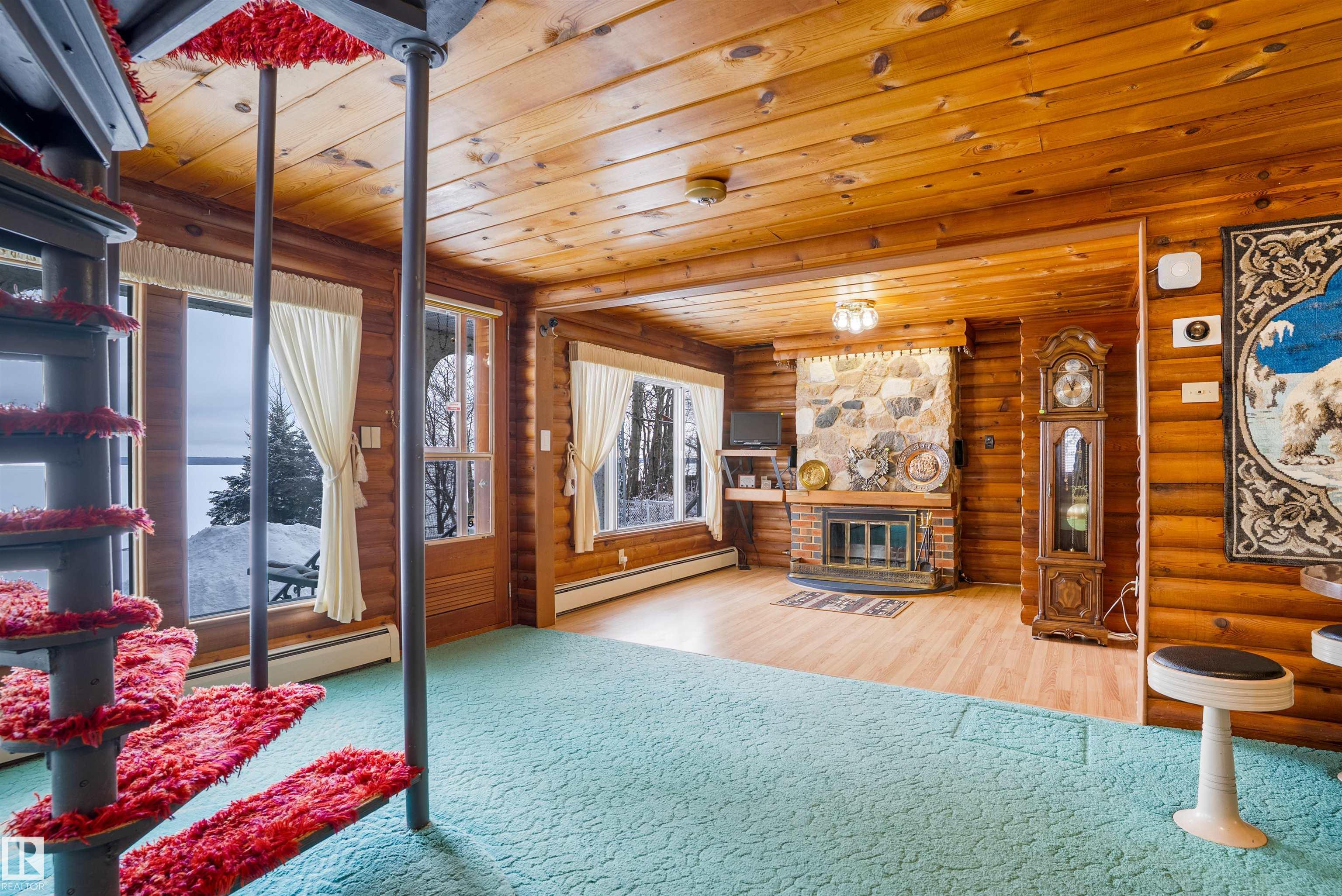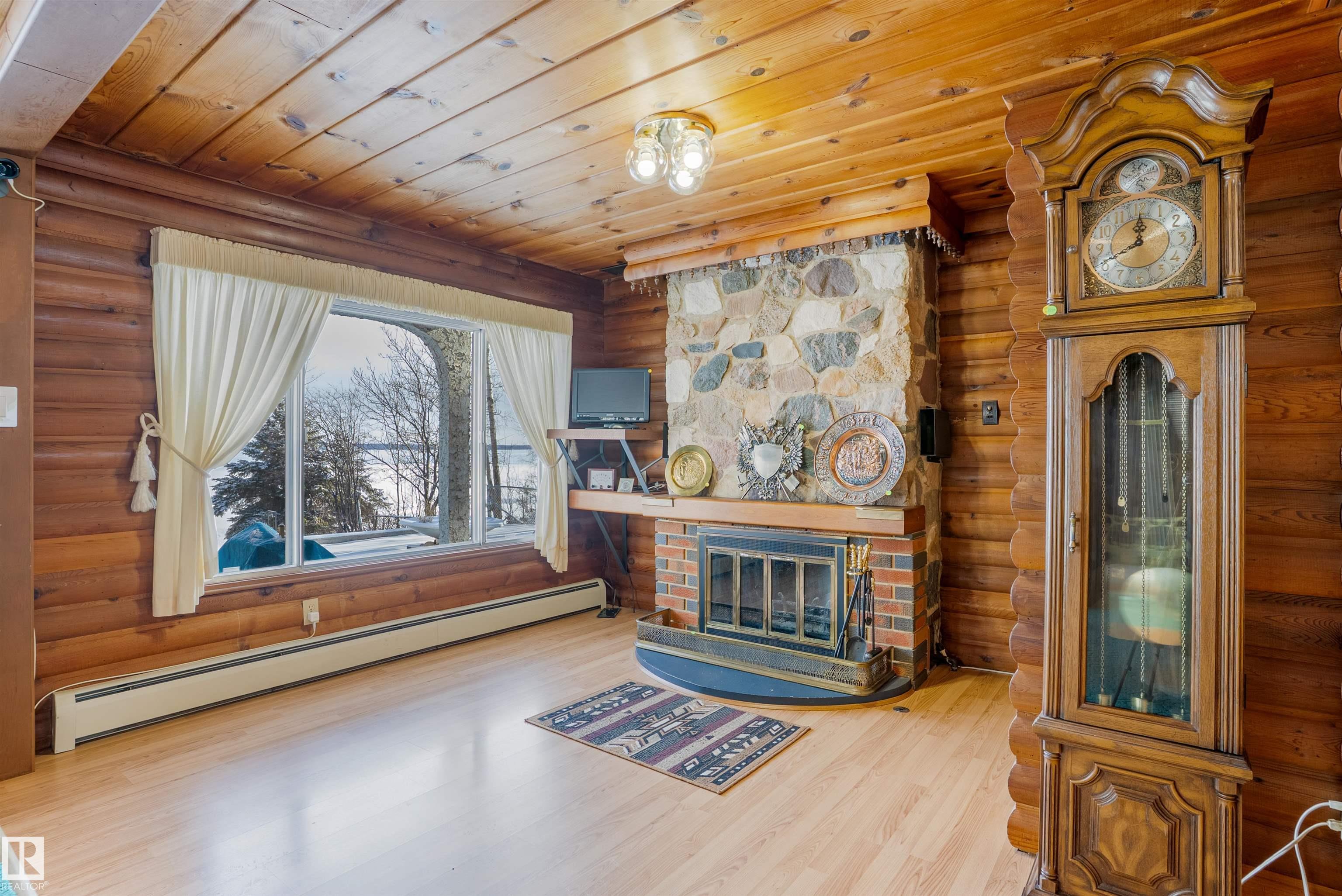Welcome to Norris Beach, featuring one of the largest lakefront lots in the community and on Pigeon Lake. Enjoy excellent waterfront with a deep drop off and water conditions. This is perfect for those who value clean water and a beautiful shoreline. The lot measures 60 ft wide with a west lot line of 132.86 ft and an east lot line of 167 ft, plus nearly an additional 30 ft of length near the shoreline beyond the property line. Property is also bordered by a municipal reserve on one side offering added privacy. Nearly 2,000 sq ft home includes a double oversized attached garage (27.7x35.8 ft) offers 4 bedrooms, two large balconies, and expansive windows that capture stunning lake views. Additional features include a durable metal roof, powered overhead entrance gate, two automatic lawn mowers, a boiler heating system, Drilled well, circular metal staircase, two fireplaces (gas and wood), a sauna, breathtaking bonus room overlooking the water and a municipal Sewer System! 2 Mins to Village at Pigeon Lake!