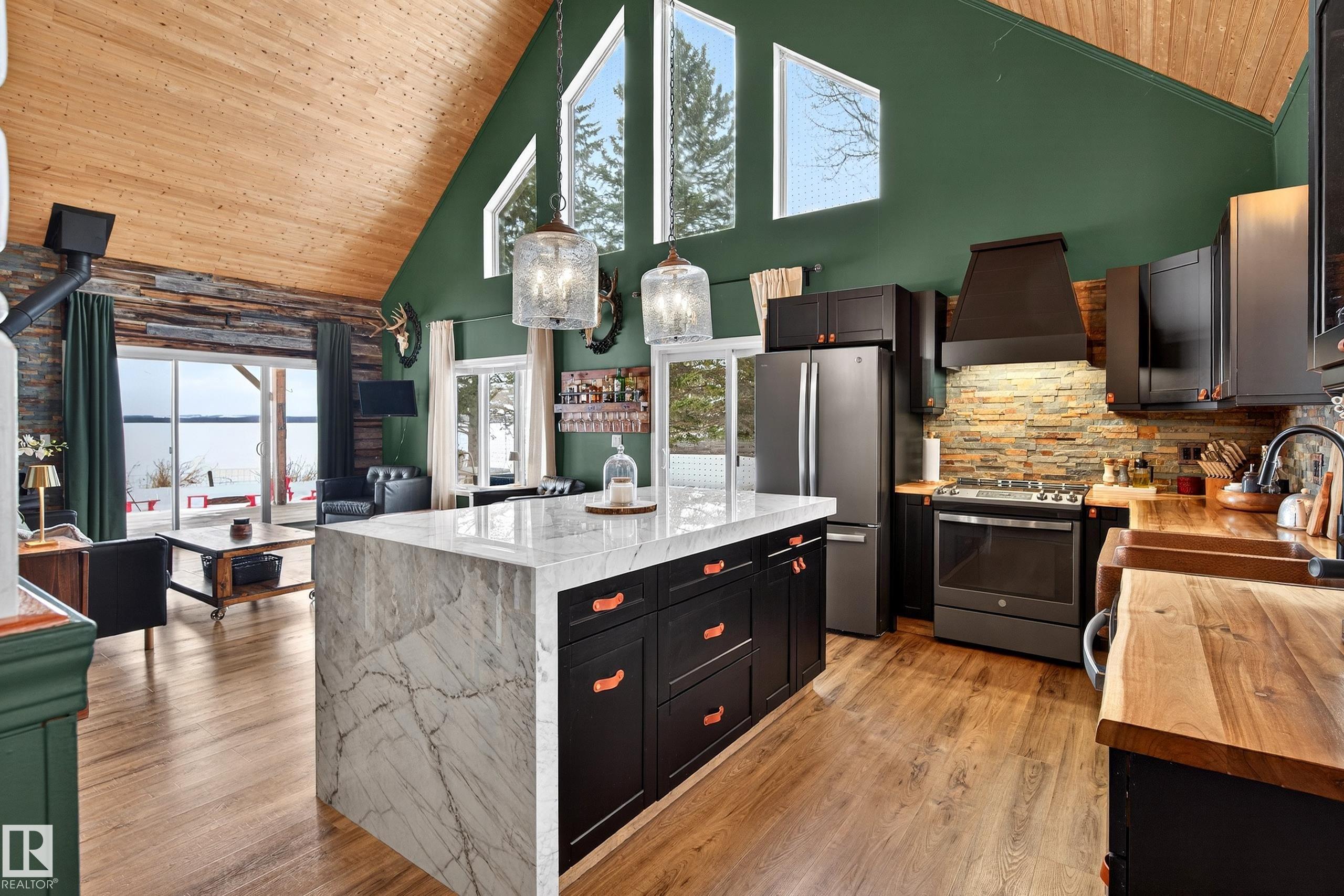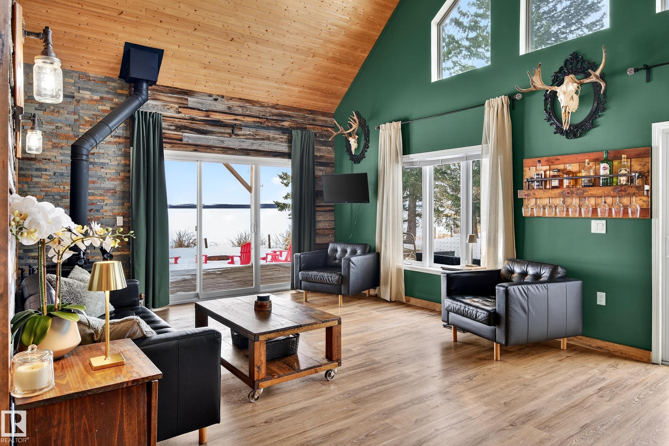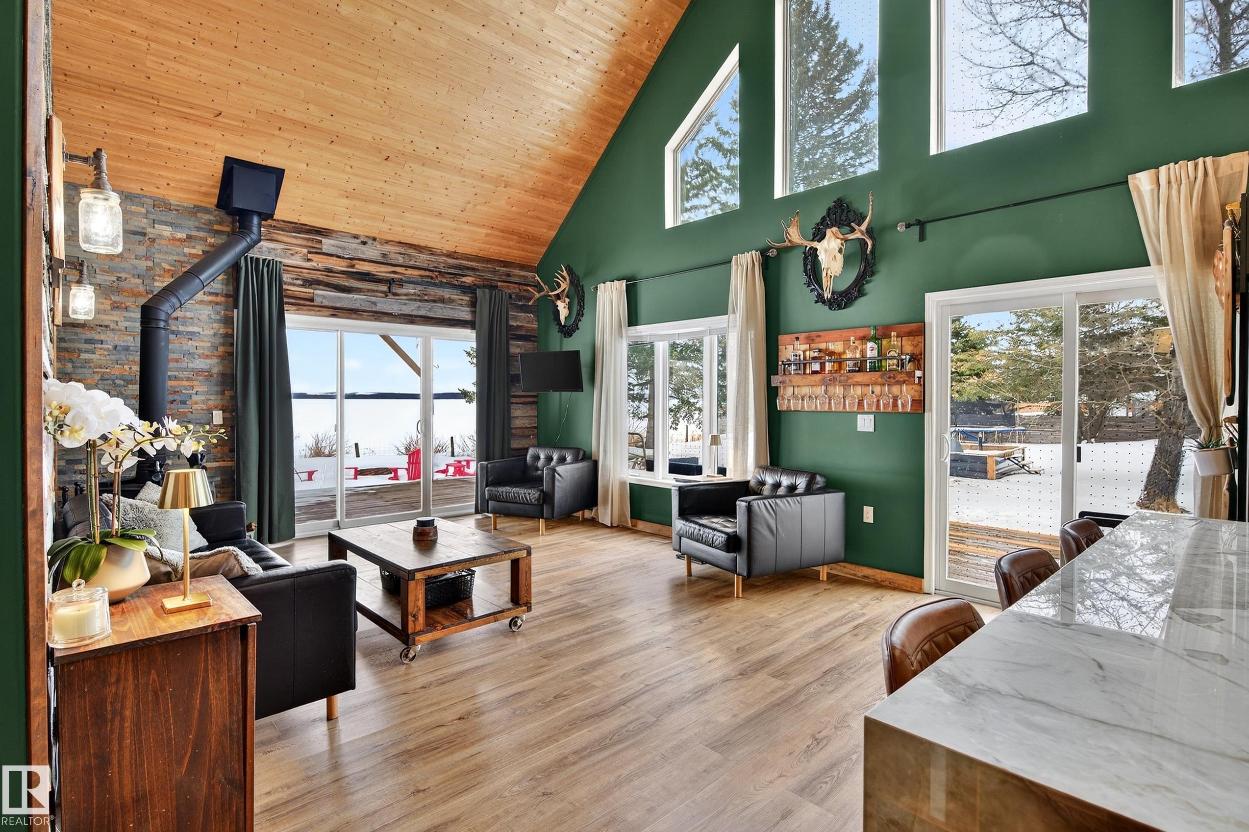 Escape the city & discover true LAKEFRONT living on beautiful Buck Lake. Tucked away on private 0.57-acre parcel w/impressive 182 ft of shoreline. This property offers the ultimate retreat. Skip straight to the water & enjoy your own dock, making every day at the lake effortless. 4-bedroom, 2-bath home is designed to fully embrace its stunning surroundings. Vaulted wood plank ceilings create a warm, inviting atmosphere, while the bright open concept layout captures sweeping lake views from the main living space. Step out onto the expansive 10? wraparound deck, perfect for morning coffee & evening sunsets. Interior has been thoughtfully updated, featuring a renovated kitchen w/striking waterfall quartz island, new appliances, stylish backsplash, updated lighting, flooring & fixtures. Comfort & efficiency are top of mind w/newer furnace/ducting. Insulated/heated crawl space. DBL oversized Garage is equipped w/5kW solar panels. Property delivers blend of modern upgrades, natural beauty & unbeatable location.