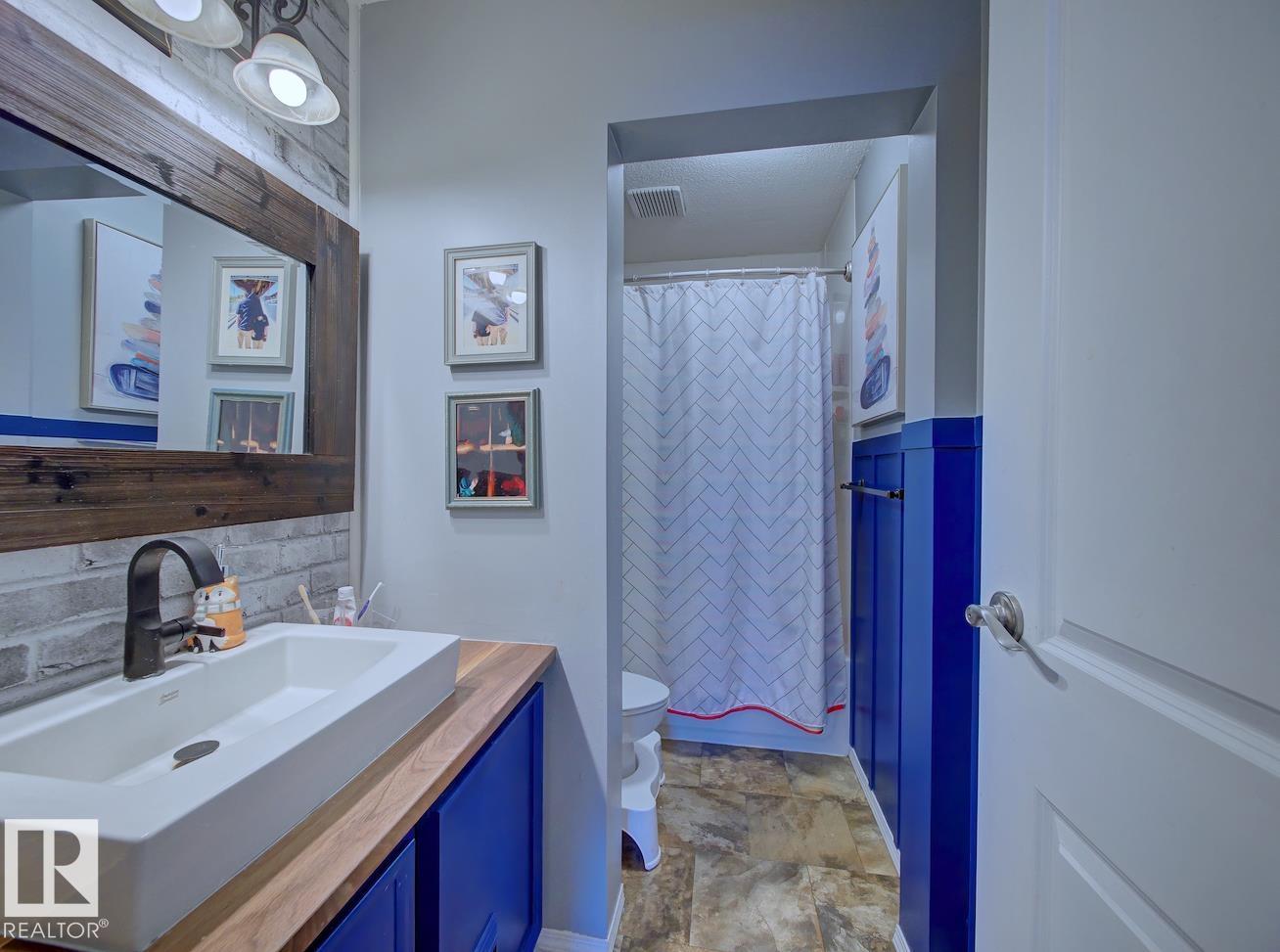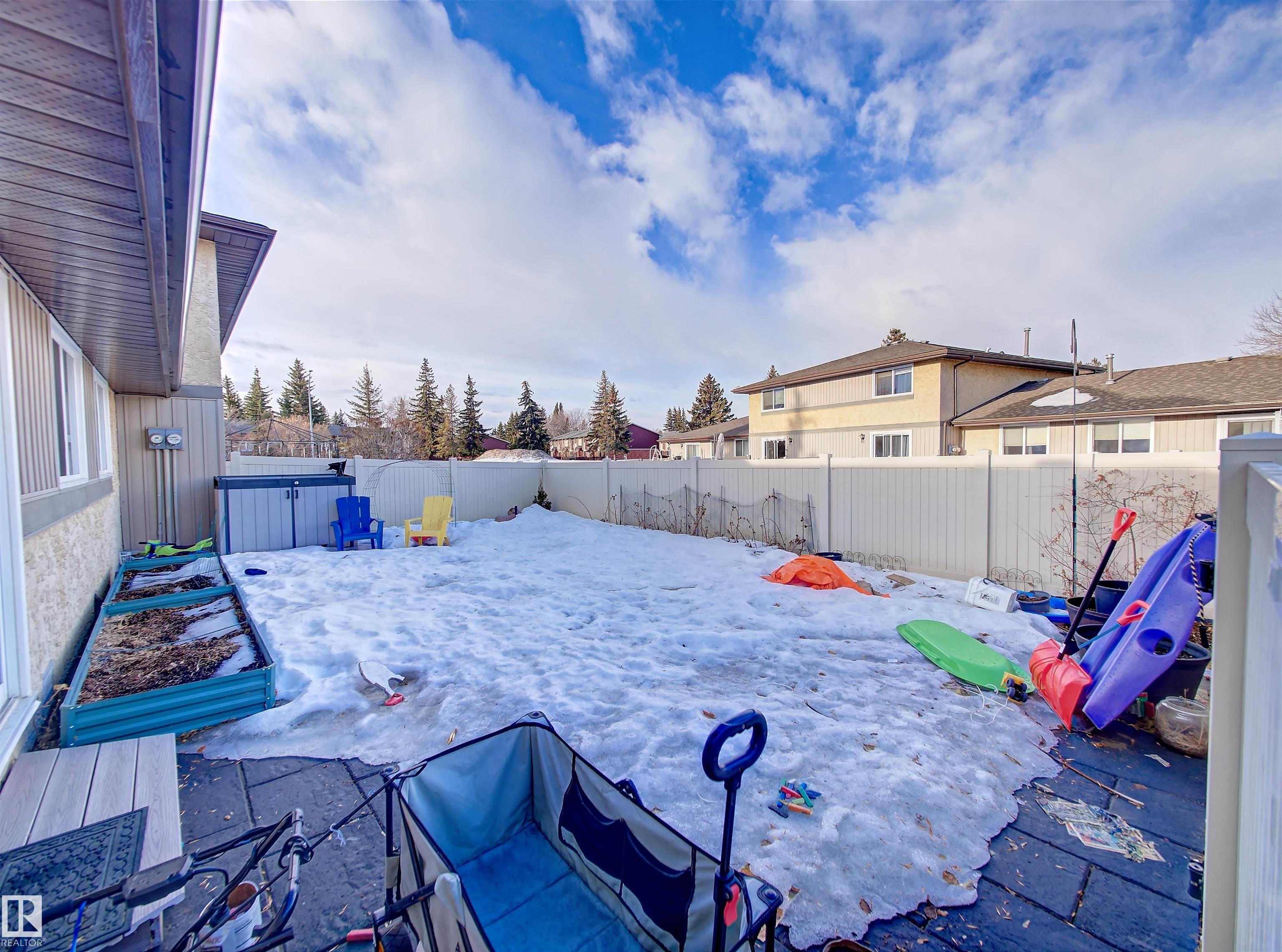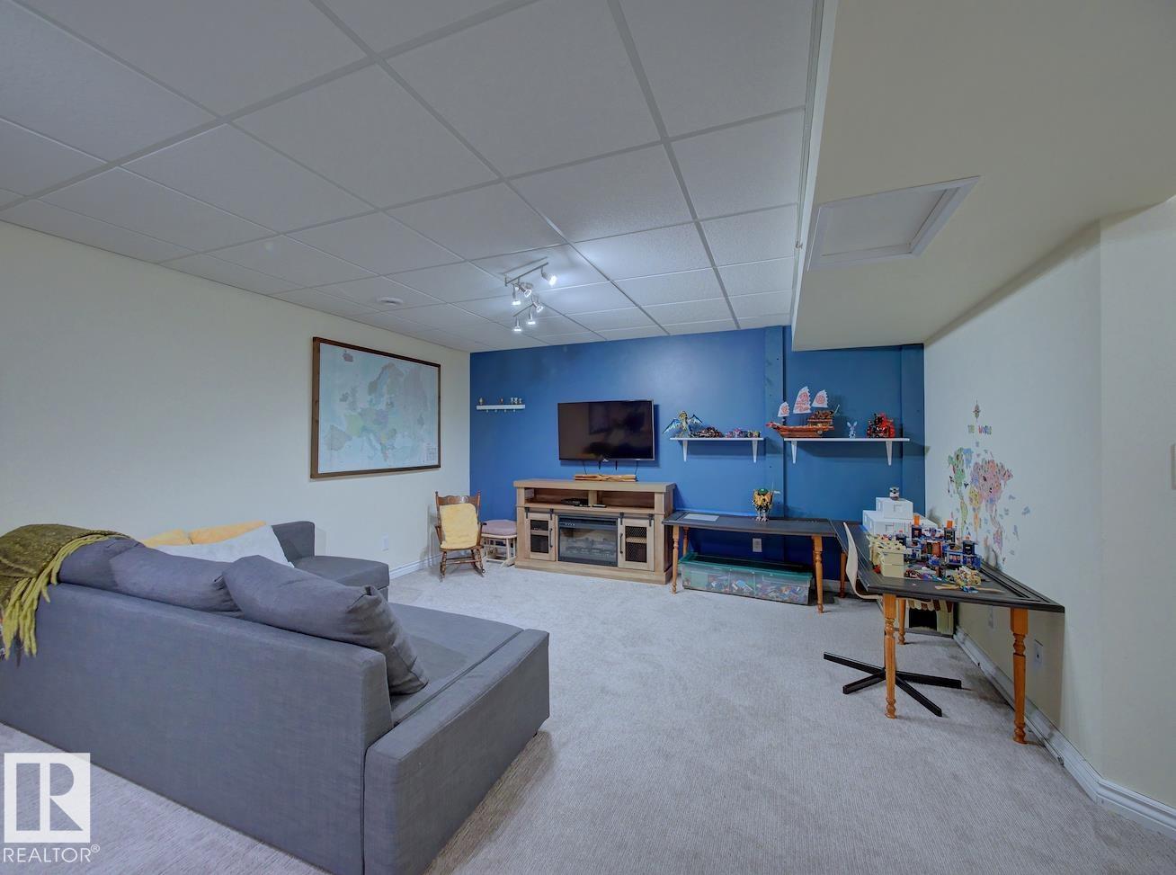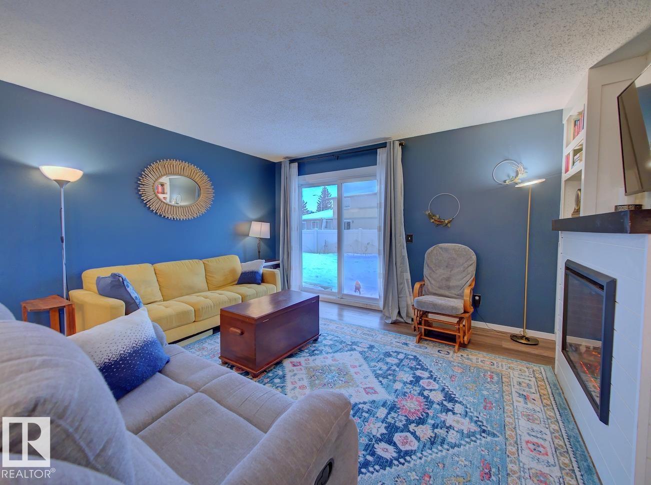 Location, and comfort come together in this fully developed 3-bedroom bungalow condo in Countryside, just steps from Fort Saskatchewan?s river valley and walking trails The main floor features a spacious kitchen with ample cabinetry, a dining area that overlooks the inviting living room, and a built-in electric fireplace for added comfort. Patio doors lead to your private backyard space, perfect for relaxing outdoors. This level also offers a 4-piece main bathroom and three bedrooms, including the primary bedroom with its own 2-piece ensuite. Each bedroom includes generous closet space. Downstairs, you?ll find a large recreation room, a 3-piece bathroom with sauna, a den, being used as a workshop, utility room with plenty of storage, and a separate laundry area.
