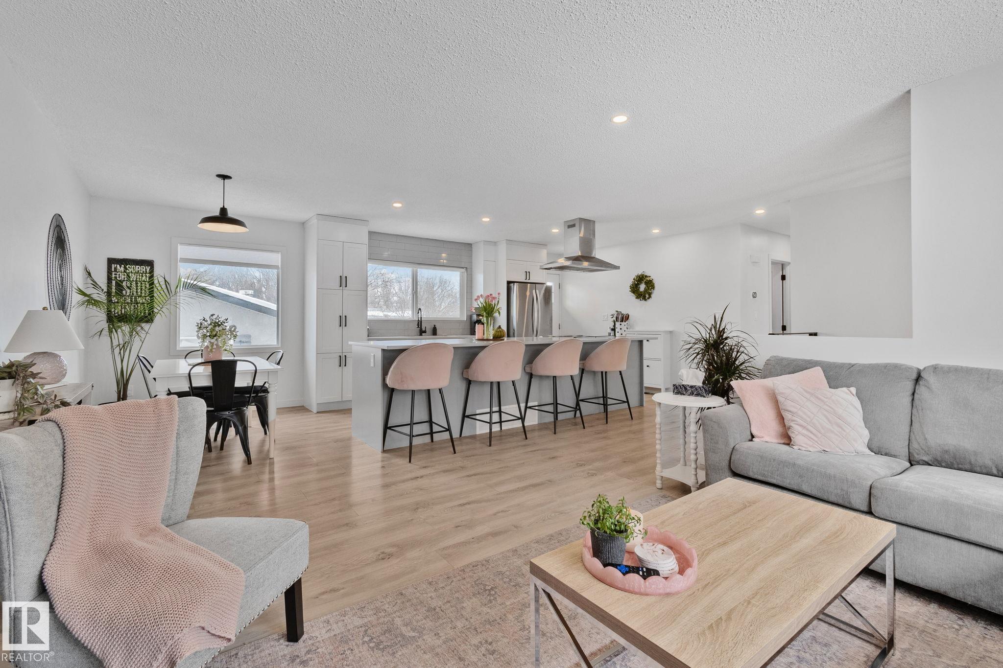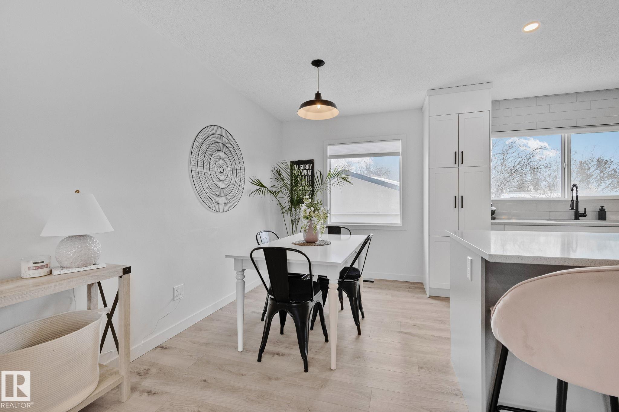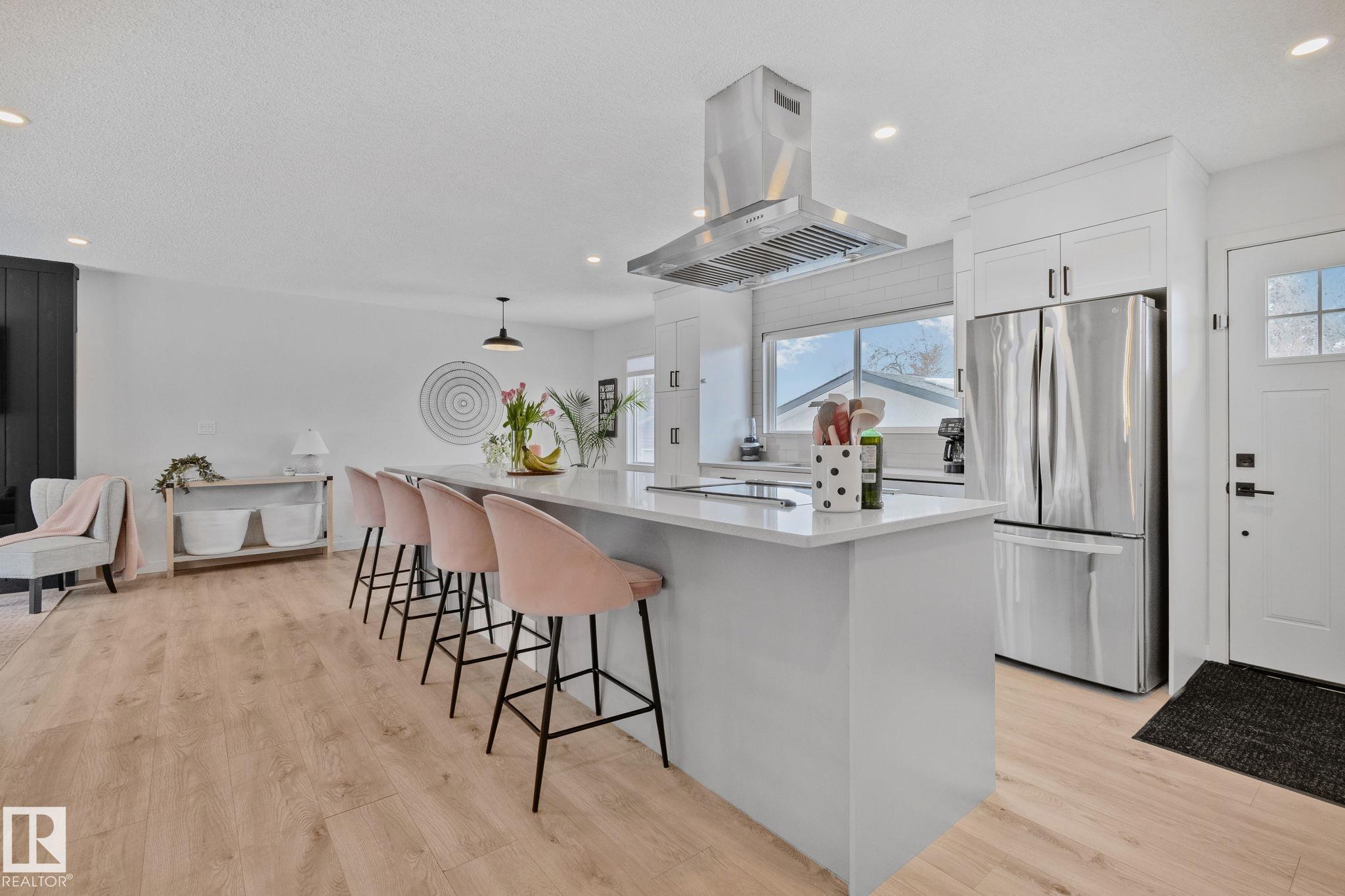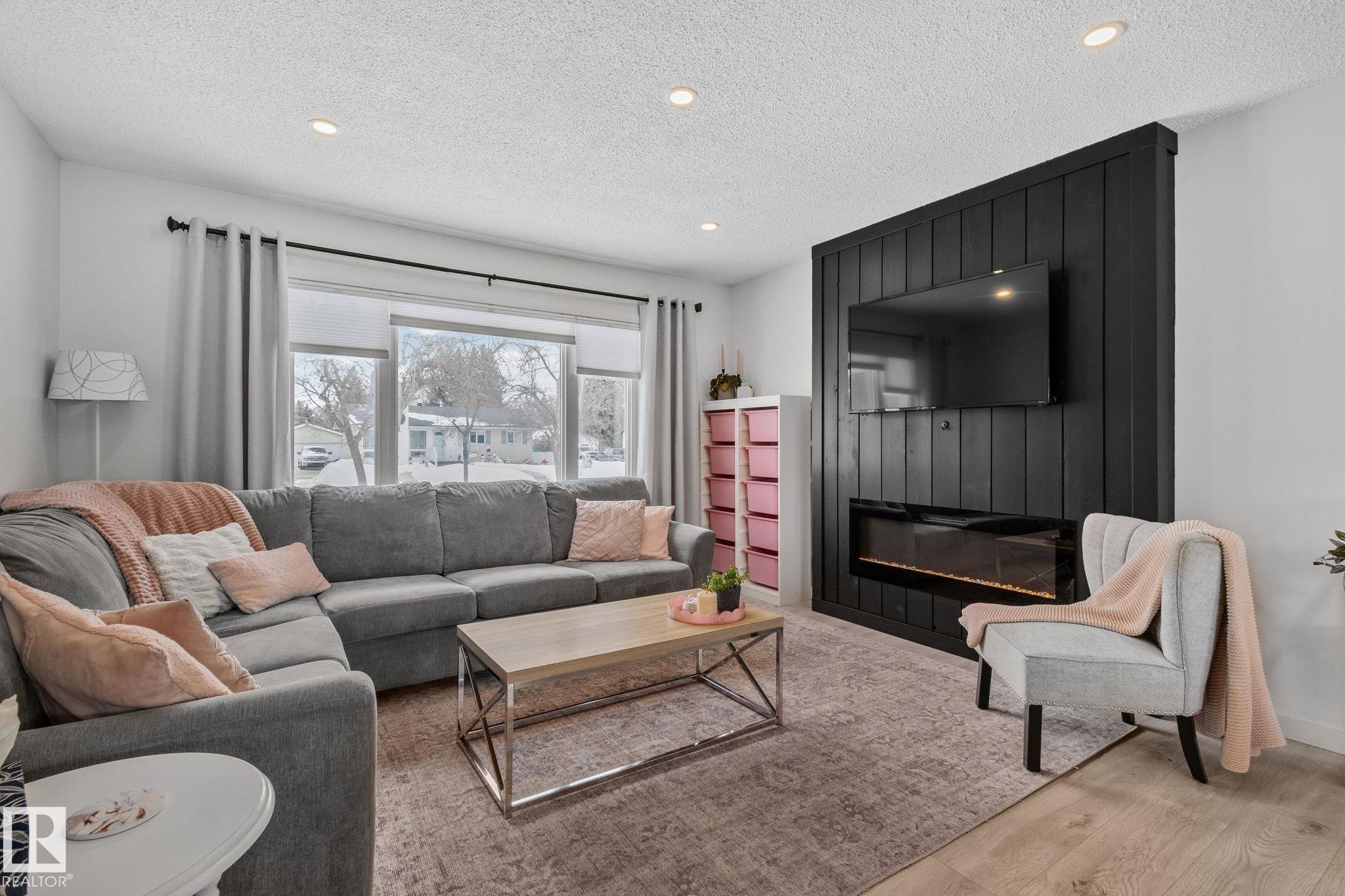 Stunning and fully updated 4 bed, 2 bath bi-level in Pineview boasting over 1,900 Sqft of living space, large insulated double garage and central A/C welcomes you home! A bright entrance with custom railings guides you upstairs to a gorgeous modern kitchen featuring a 12' quartz island with a sleek electric stove, hood range, stainless appliances, expansive white cabinets and grey subway tile overlooking your large deck and backyard. The main offers a spacious living and dining room with a cozy shiplap surround electric fireplace and dimmable pot lights throughout. Down the hall you'll find the huge primary suite with loads of space, larger 2nd bedroom, and a stylish new 4pc bath. Heading downstairs enjoy the plush carpet, family room with a wet bar, two more bedrooms and another beautiful bathroom! Updates include Windows (2016) Shingles (2016) HWT (2020) Furnace (2021) A/C and Electrical Panel (2022) Dryer (2022) Conveniently located near schools, playgrounds, trails and shopping...Turn-key and Move in!