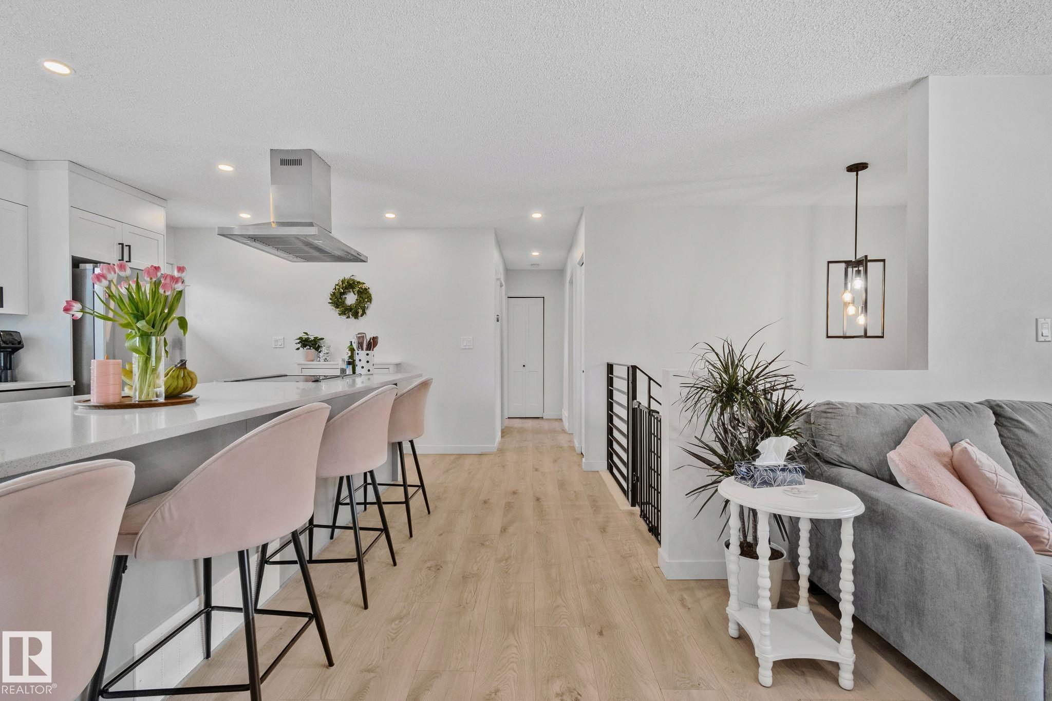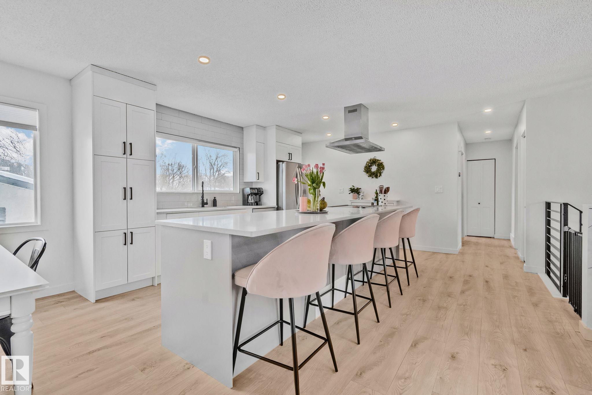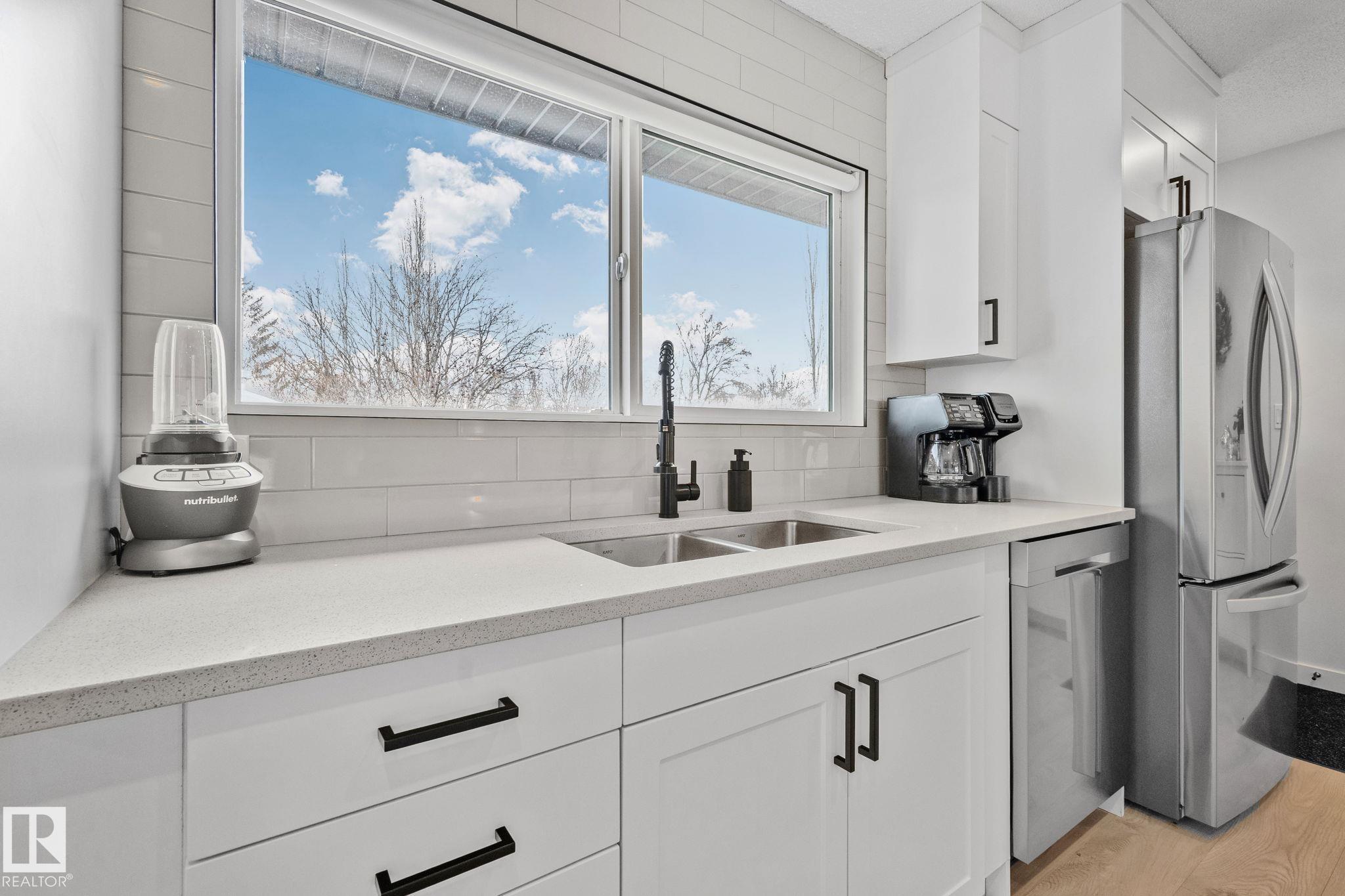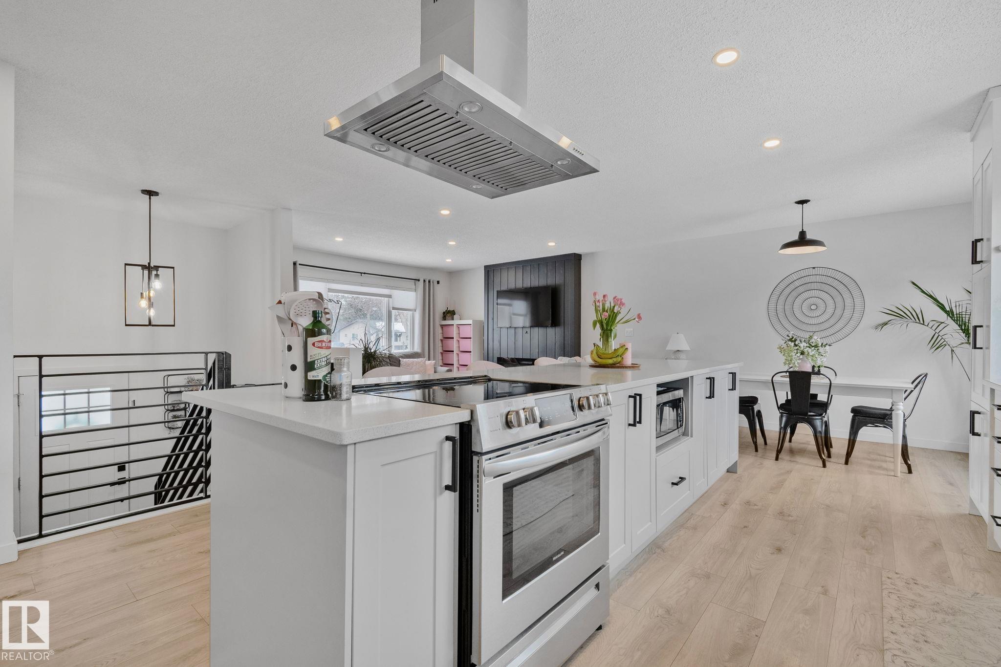 Stunning and fully updated 4 bed, 2 bath bi-level in Pineview boasting over 1,900 Sqft of living space, large insulated double garage and central A/C welcomes you home! A bright entrance with custom railings guides you upstairs to a gorgeous modern kitchen featuring a 12' quartz island with a sleek electric stove, hood range, stainless appliances, expansive white cabinets and grey subway tile overlooking your large deck and backyard. The main offers a spacious living and dining room with a cozy shiplap surround electric fireplace and dimmable pot lights throughout. Down the hall you'll find the huge primary suite with loads of space, larger 2nd bedroom, and a stylish new 4pc bath. Heading downstairs enjoy the plush carpet, family room with a wet bar, two more bedrooms and another beautiful bathroom! Updates include Windows (2016) Shingles (2016) HWT (2020) Furnace (2021) A/C and Electrical Panel (2022) Dryer (2022) Conveniently located near schools, playgrounds, trails and shopping...Turn-key and Move in!