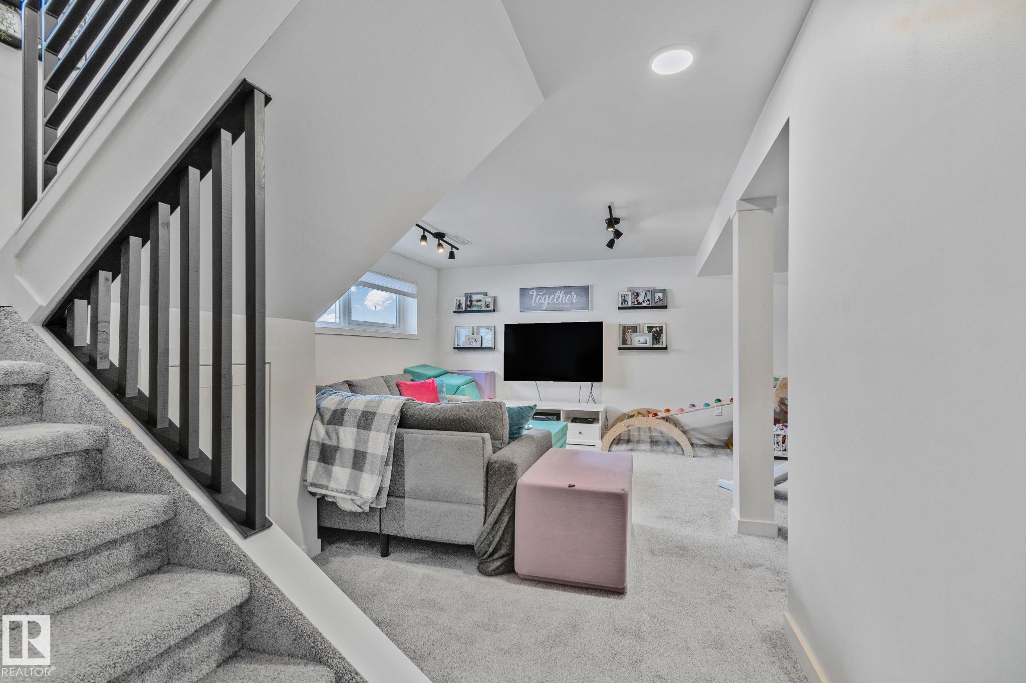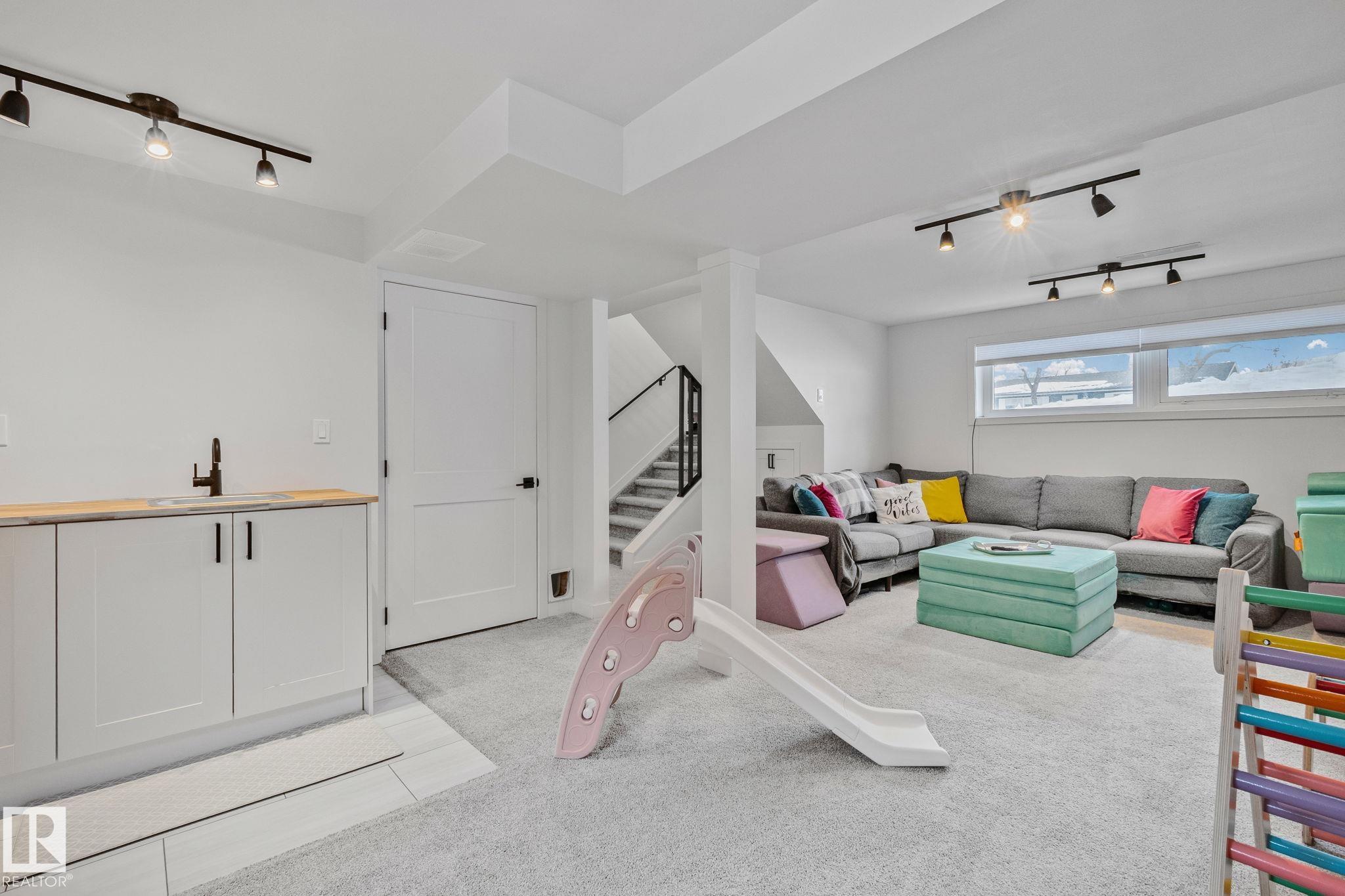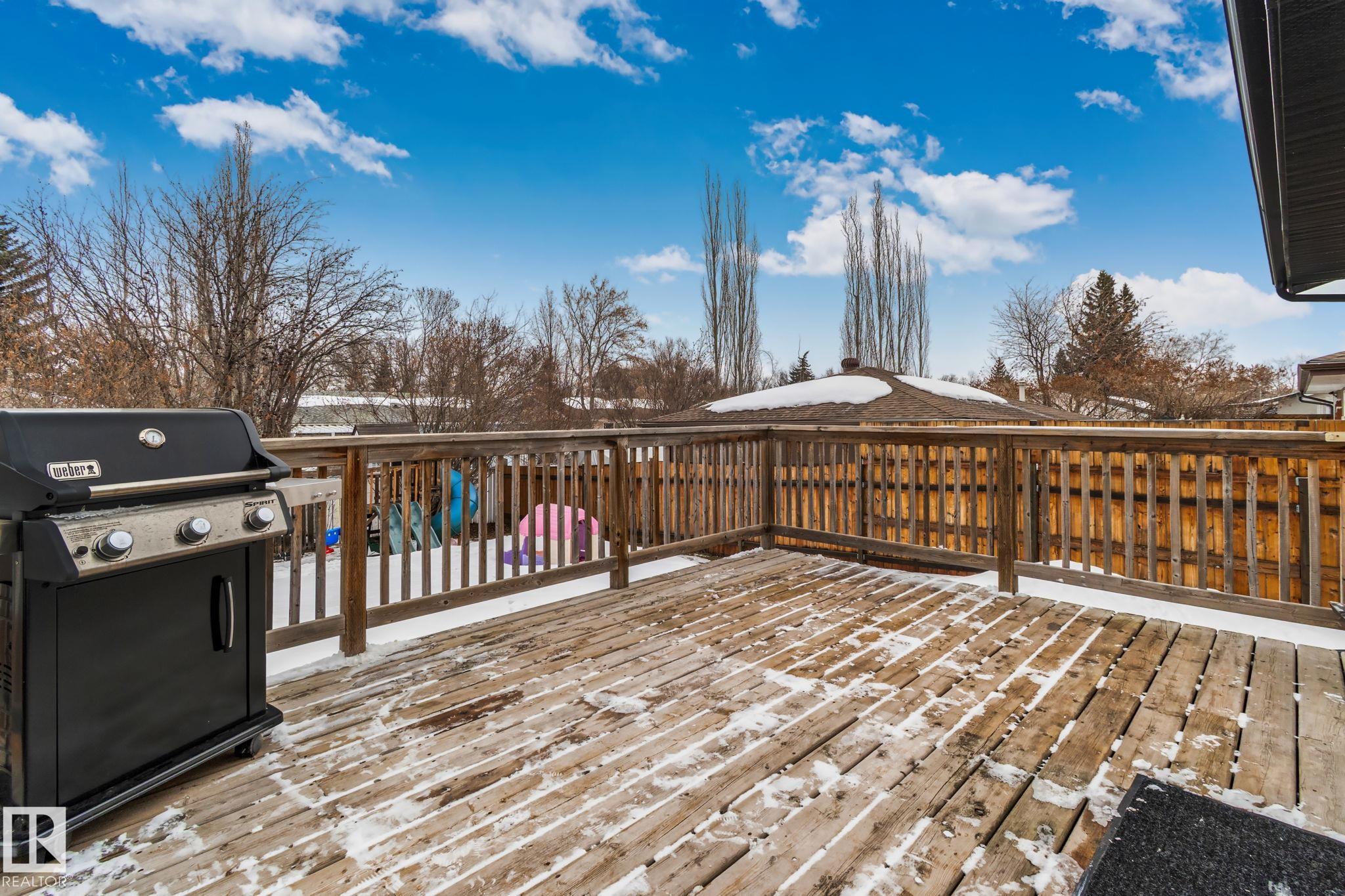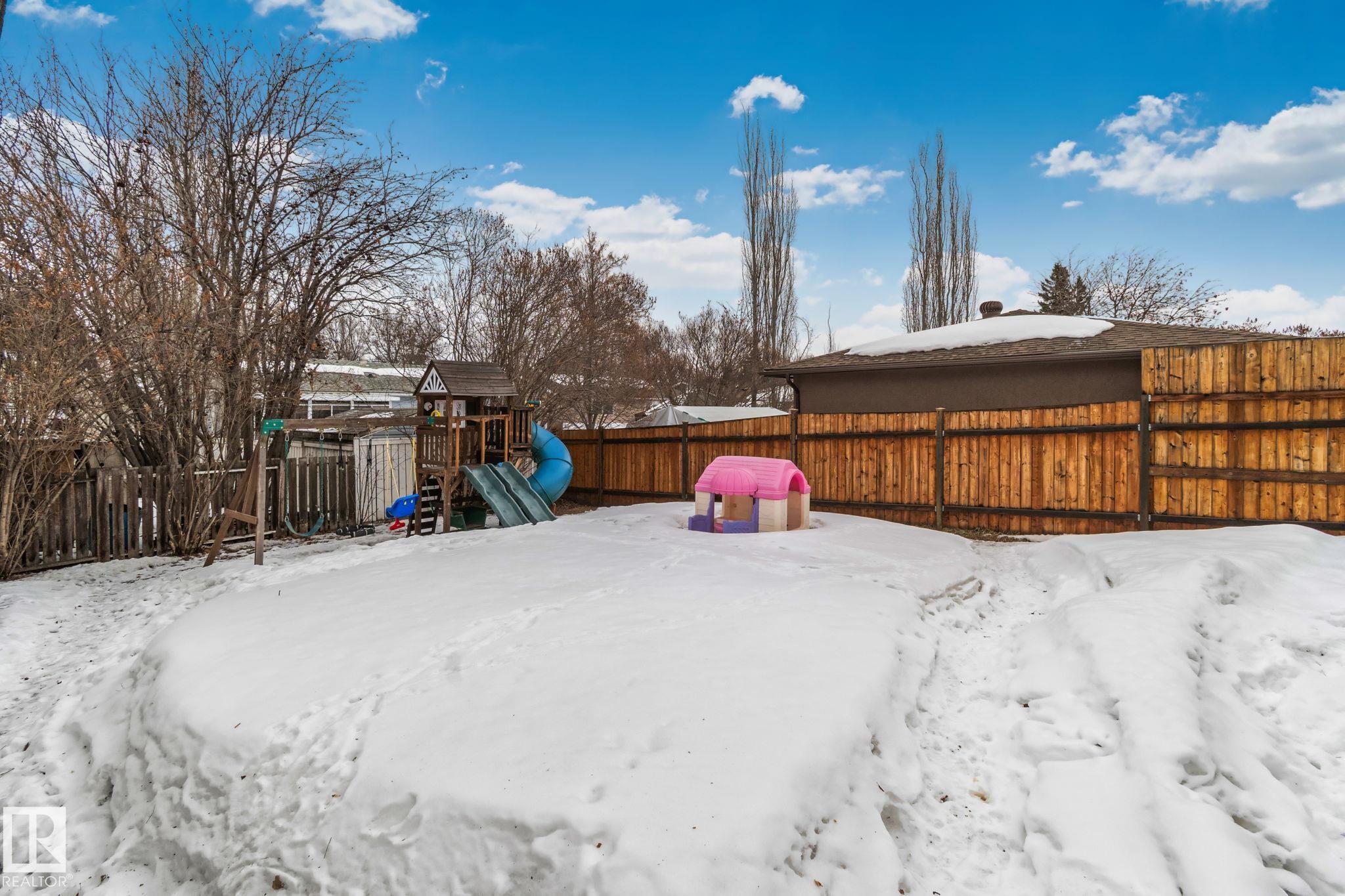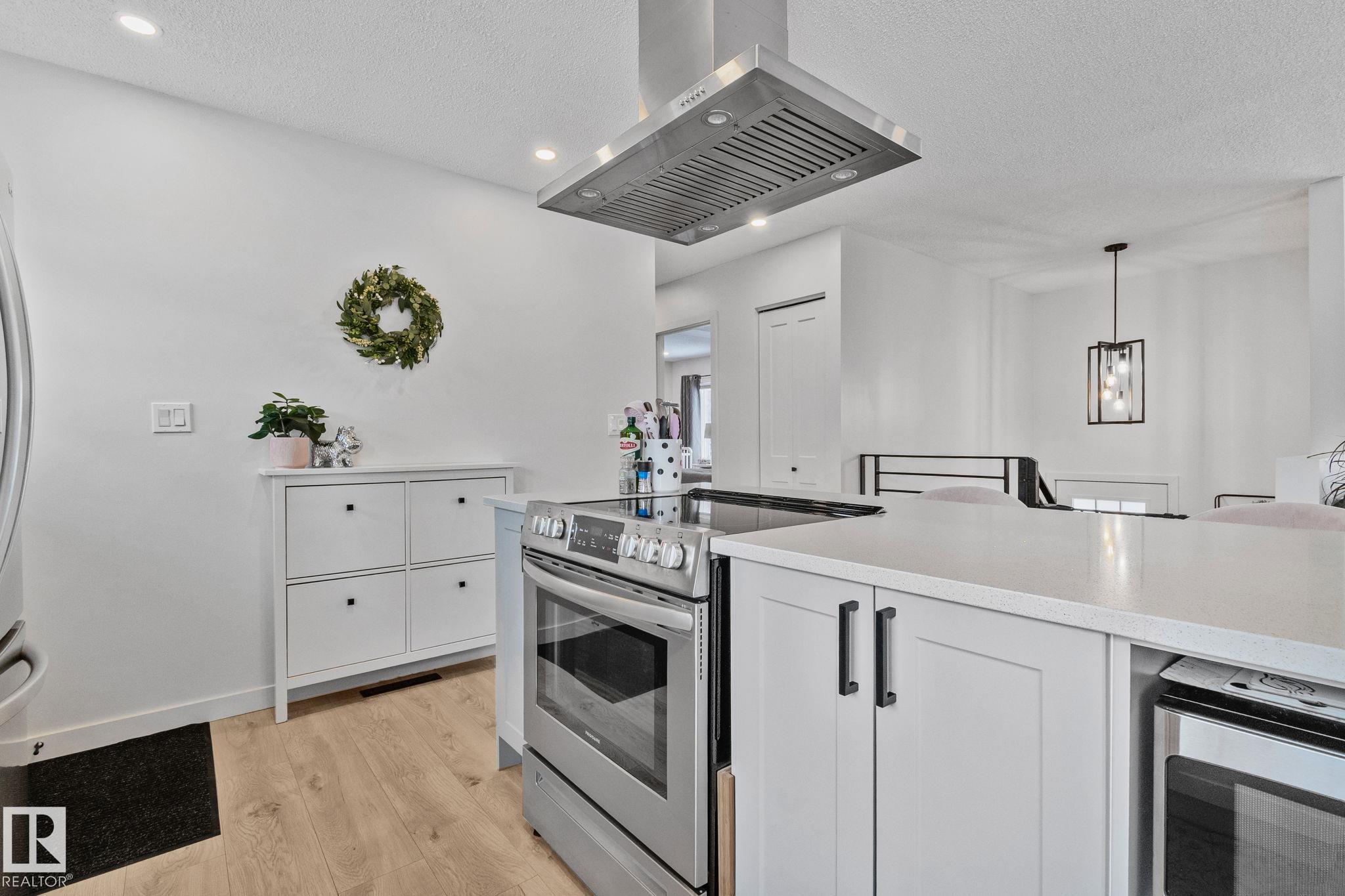 Stunning and fully updated 4 bed, 2 bath bi-level in Pineview boasting over 1,900 Sqft of living space, large insulated double garage and central A/C welcomes you home! A bright entrance with custom railings guides you upstairs to a gorgeous modern kitchen featuring a 12' quartz island with a sleek electric stove, hood range, stainless appliances, expansive white cabinets and grey subway tile overlooking your large deck and backyard. The main offers a spacious living and dining room with a cozy shiplap surround electric fireplace and dimmable pot lights throughout. Down the hall you'll find the huge primary suite with loads of space, larger 2nd bedroom, and a stylish new 4pc bath. Heading downstairs enjoy the plush carpet, family room with a wet bar, two more bedrooms and another beautiful bathroom! Updates include Windows (2016) Shingles (2016) HWT (2020) Furnace (2021) A/C and Electrical Panel (2022) Dryer (2022) Conveniently located near schools, playgrounds, trails and shopping...Turn-key and Move in!
