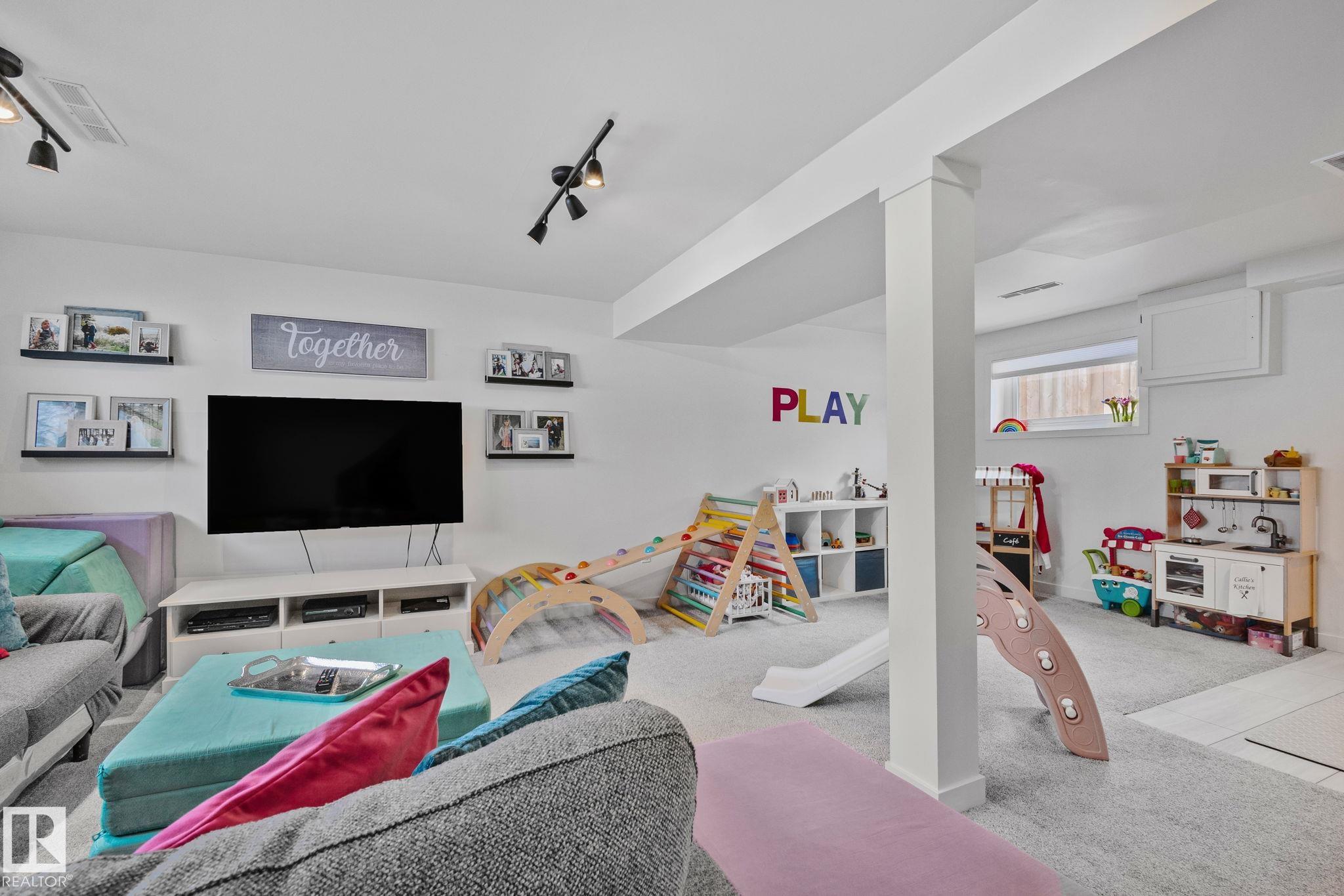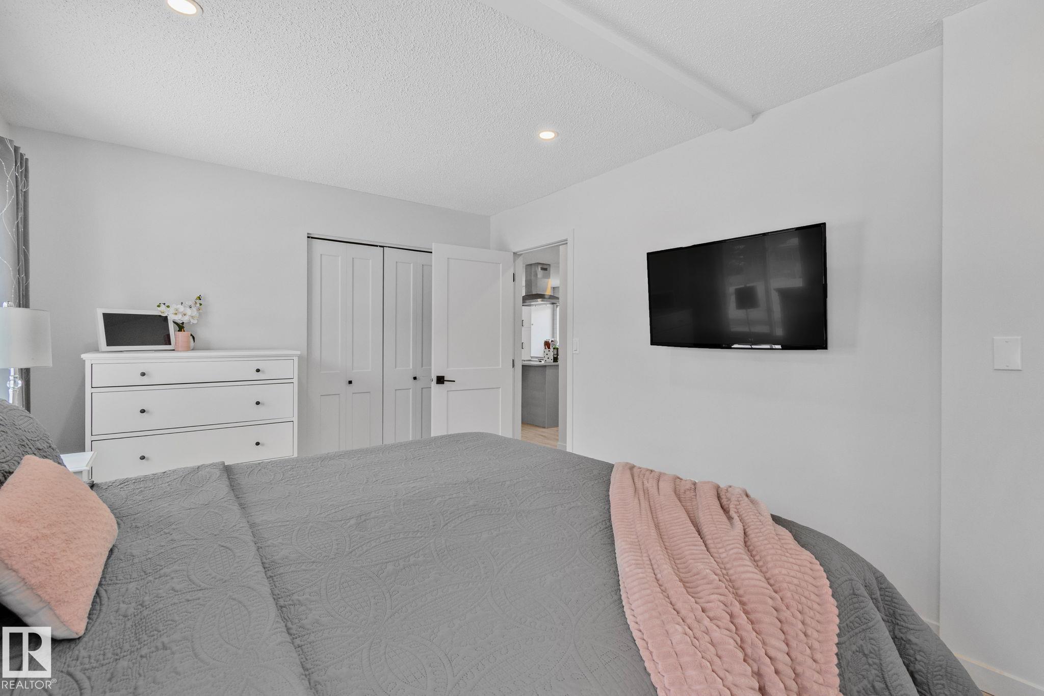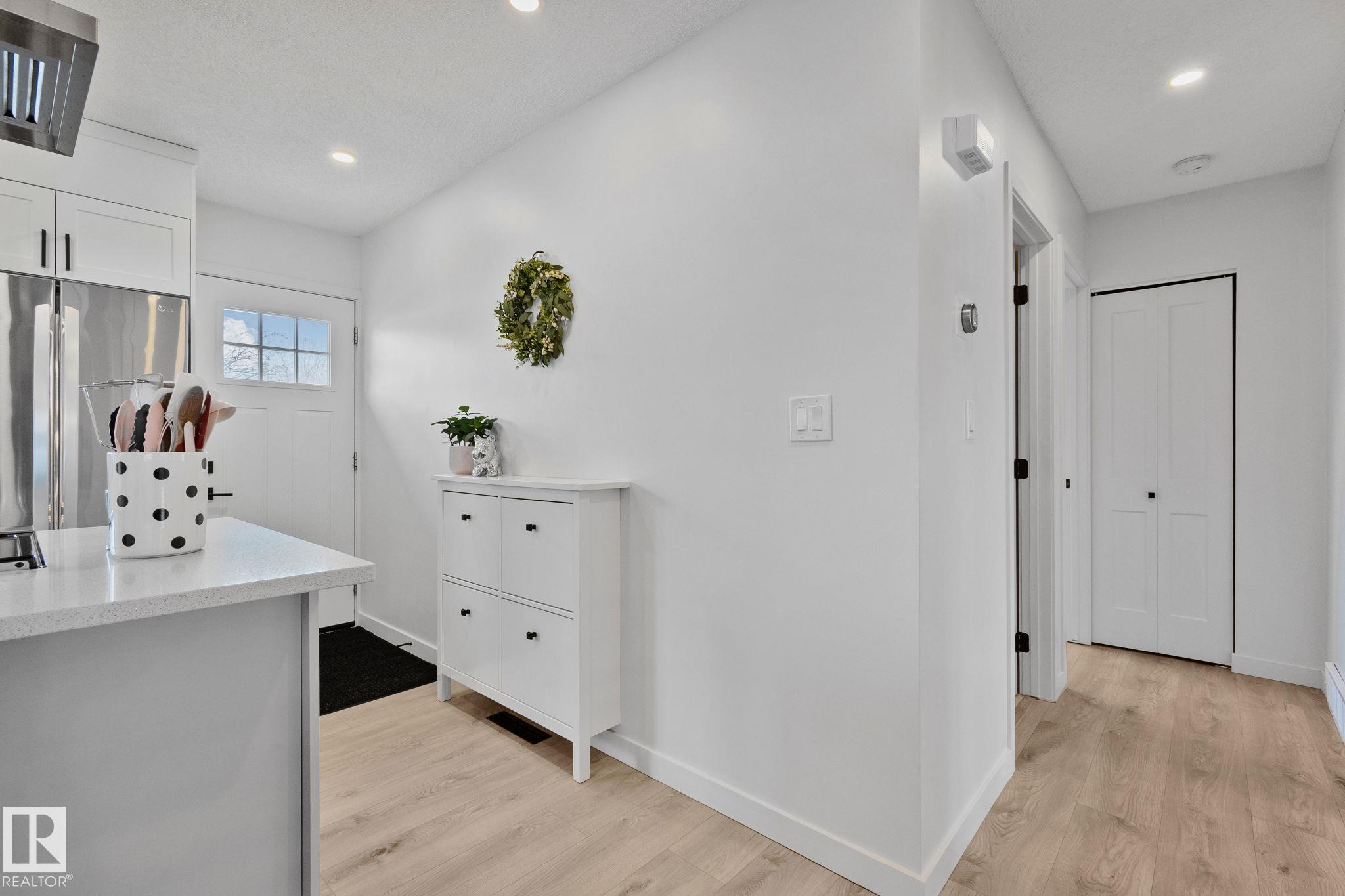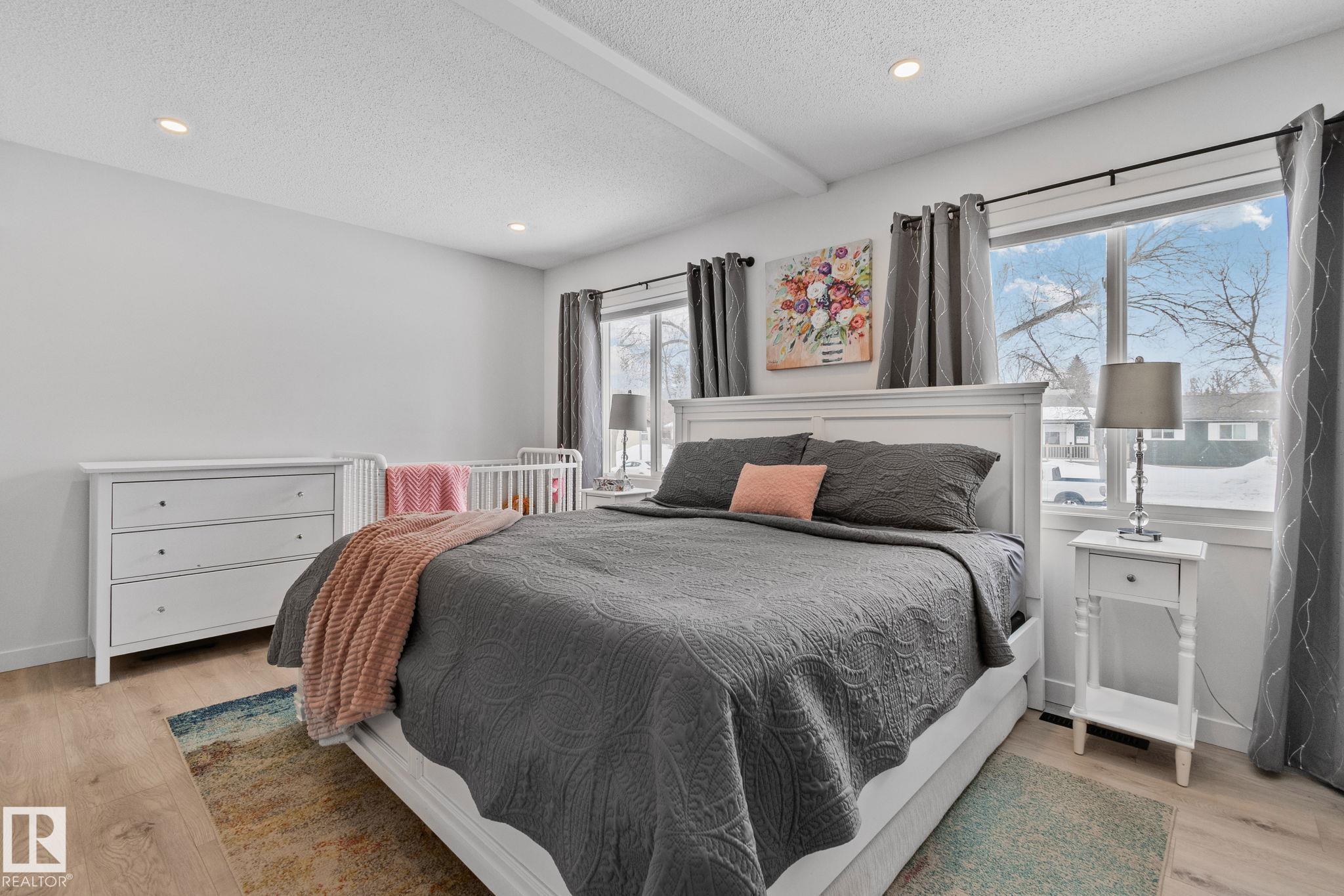 Stunning and fully updated 4 bed, 2 bath bi-level in Pineview boasting over 1,900 Sqft of living space, large insulated double garage and central A/C welcomes you home! A bright entrance with custom railings guides you upstairs to a gorgeous modern kitchen featuring a 12' quartz island with a sleek electric stove, hood range, stainless appliances, expansive white cabinets and grey subway tile overlooking your large deck and backyard. The main offers a spacious living and dining room with a cozy shiplap surround electric fireplace and dimmable pot lights throughout. Down the hall you'll find the huge primary suite with loads of space, larger 2nd bedroom, and a stylish new 4pc bath. Heading downstairs enjoy the plush carpet, family room with a wet bar, two more bedrooms and another beautiful bathroom! Updates include Windows (2016) Shingles (2016) HWT (2020) Furnace (2021) A/C and Electrical Panel (2022) Dryer (2022) Conveniently located near schools, playgrounds, trails and shopping...Turn-key and Move in!