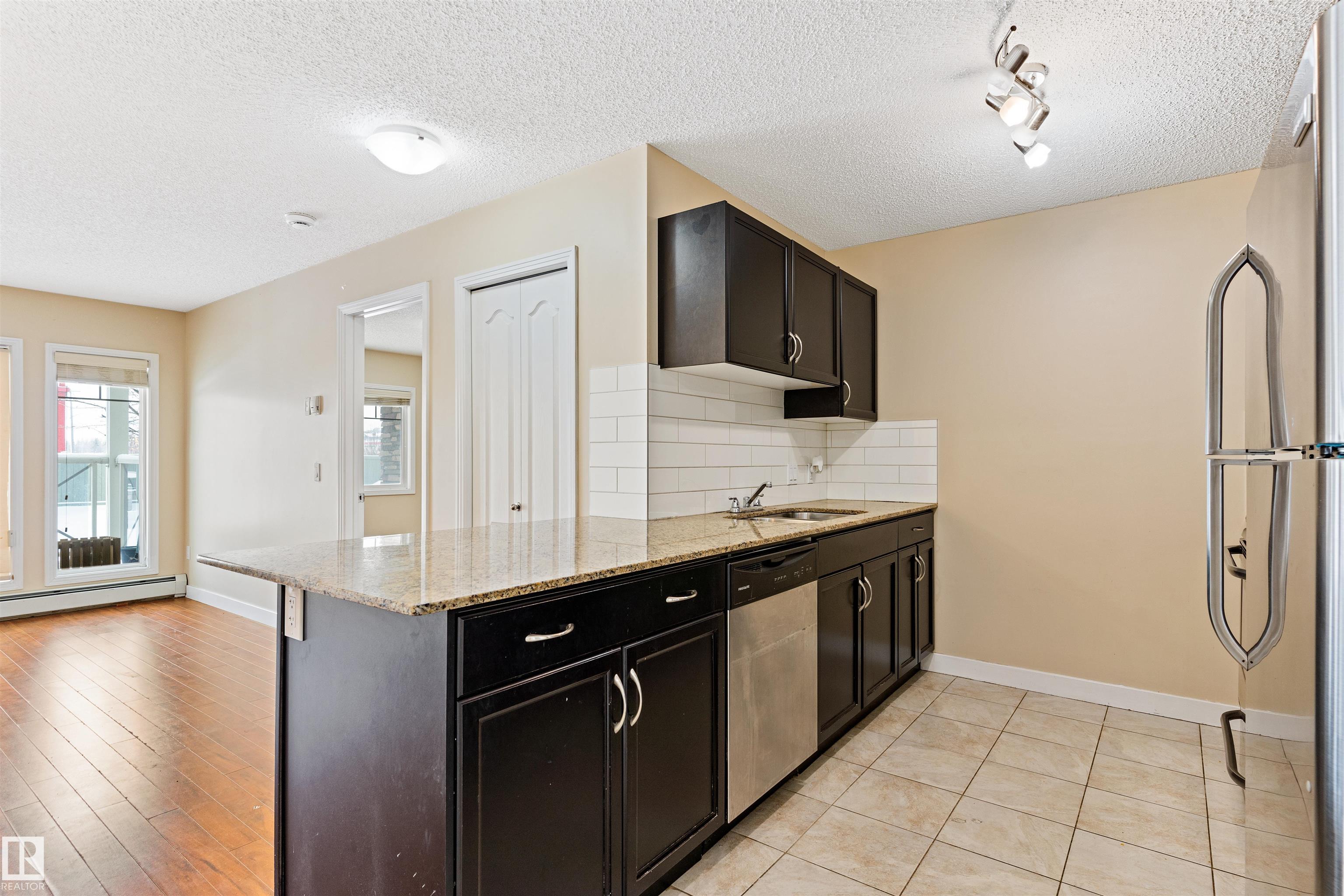 Beautiful 2-bedroom, 2-bathroom main floor condo ideally located close to the entrance?making move-in and move-out a breeze! This bright and inviting unit features a spacious kitchen with stainless steel appliances, plenty of cabinetry, stylish countertops, and a modern backsplash. Both bedrooms are generously sized, and the large windows allow for an abundance of natural light throughout the space. Enjoy the convenience of in-suite laundry and ample storage. The location is unbeatable?close to shopping, transit, and excellent schools, fitness centers, parks, Anthony Henday, St.Albert, anything at your fingertips. Ample visitor parking is located just steps from the unit, making it easy for guests to visit. . Low condo fees include heat and water, and the unit comes with an assigned parking stall. Perfect for first-time buyers, downsizers, or investors?this home truly checks all the boxes.