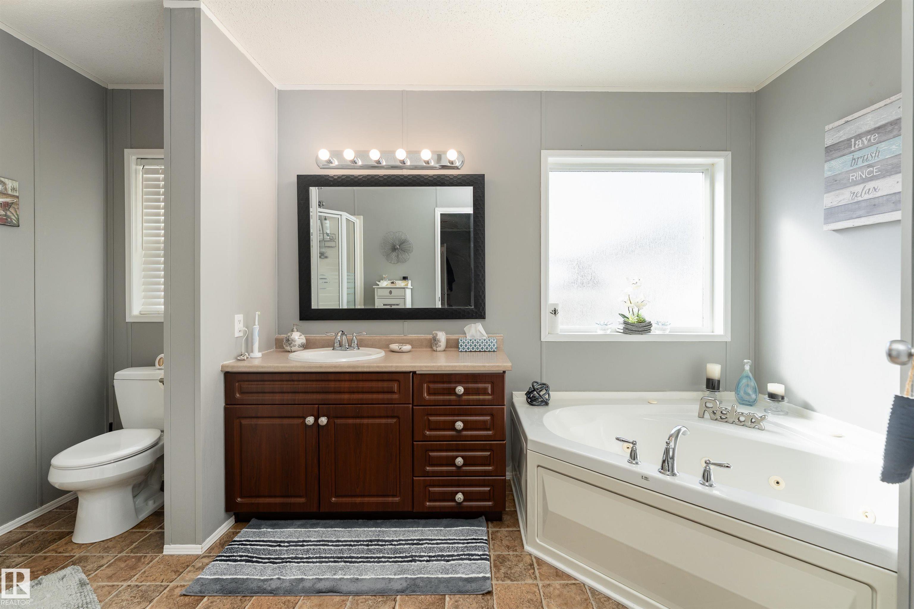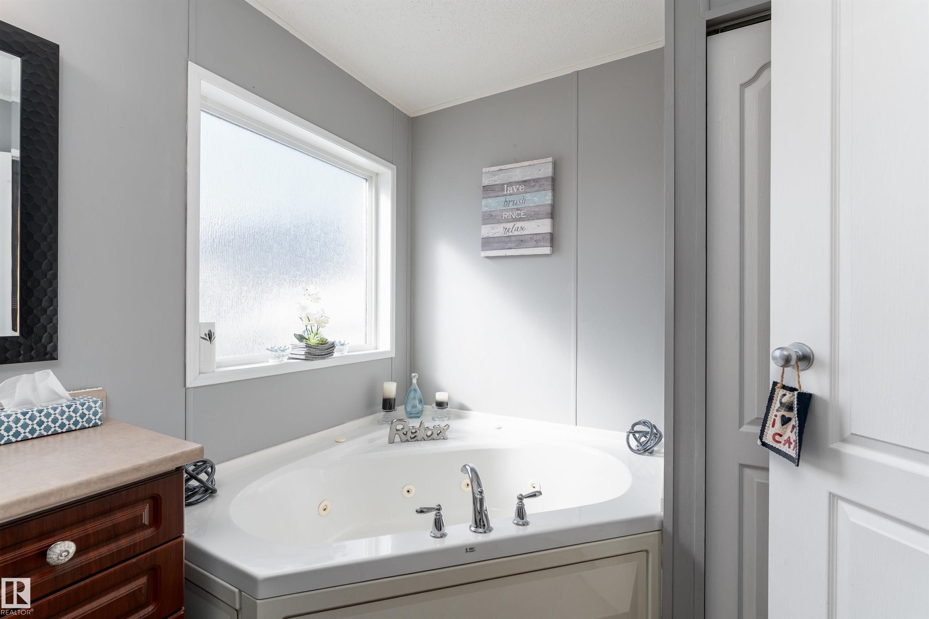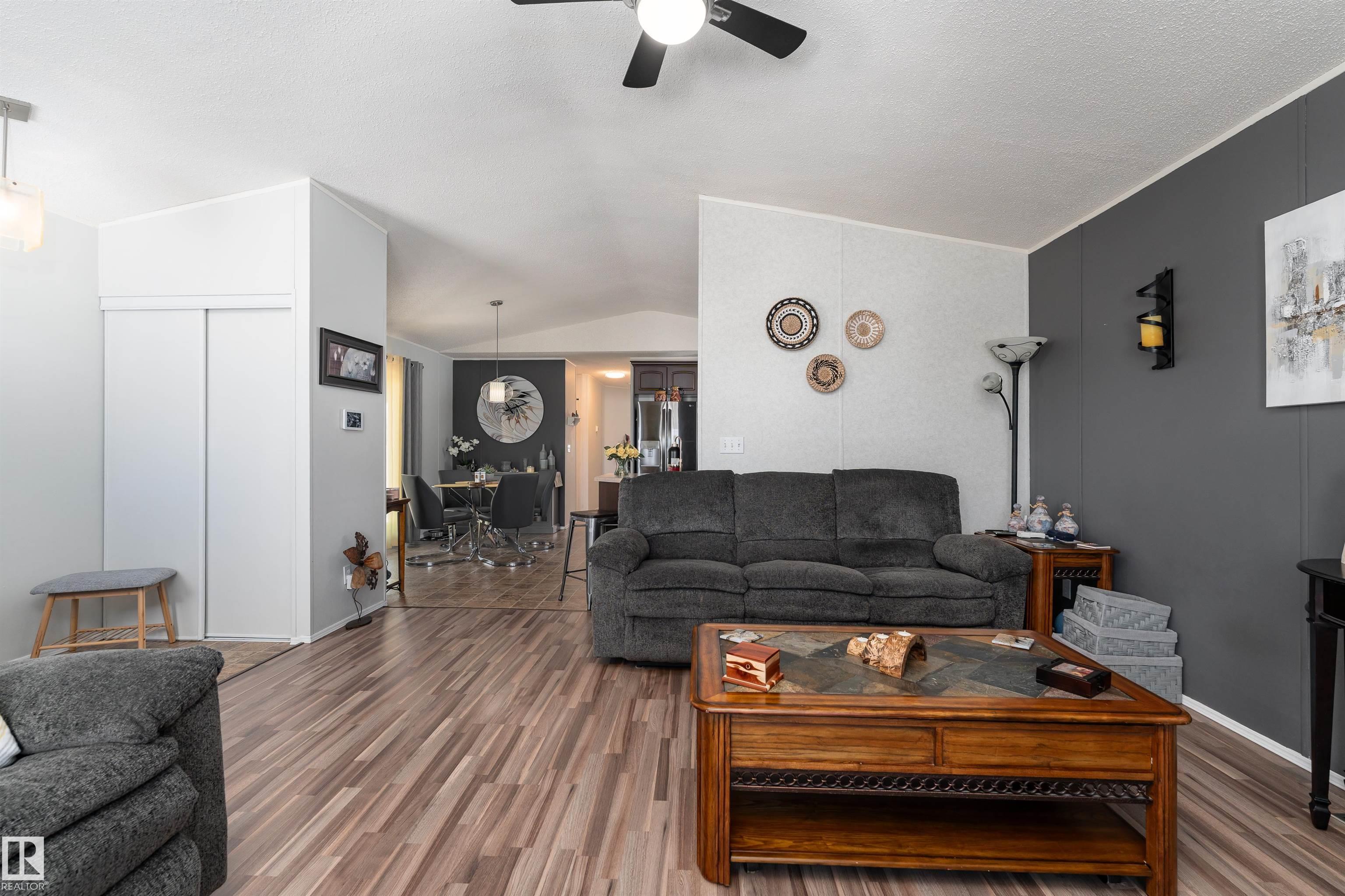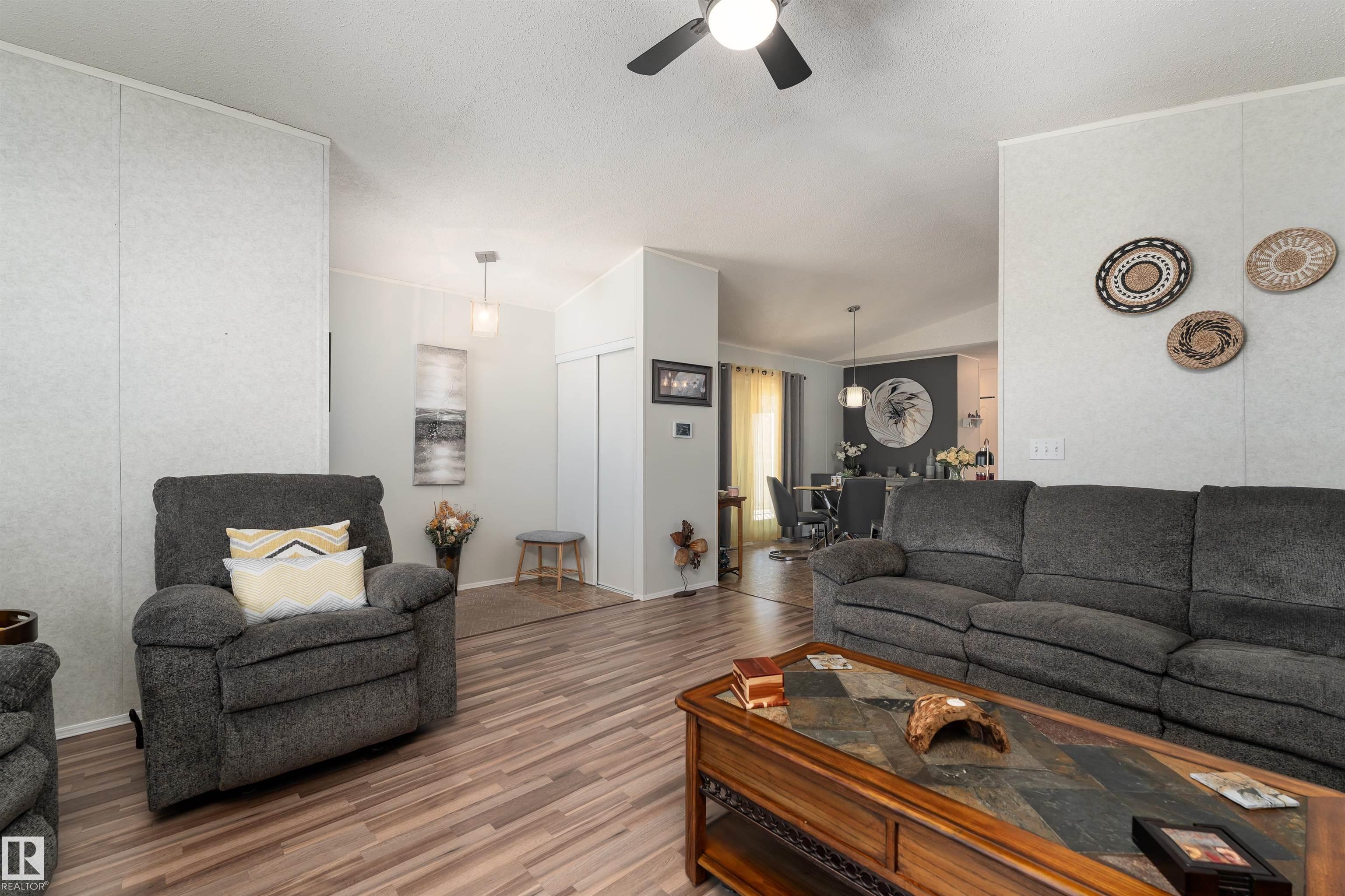 Impressive home featuring central A/C and an inviting covered front entry. Step inside to a bright, freshly painted interior with soaring ceilings and a spacious open-concept layout. The living room is warm and welcoming, highlighted by a bay window, ceiling fan, and cozy electric fireplace. The kitchen is both stylish and functional, offering dark cabinetry, a peninsula island, corner pantry, and matching stainless steel appliances. Garden doors lead to a large deck with attractive railing, complete with a hardtop gazebo?perfect for outdoor entertaining and relaxing. The primary bedroom includes a ceiling fan, walk-in closet, and a private ensuite featuring a corner jetted tub and separate stand-up shower. The oversized laundry room offers excellent versatility and could easily double as a small office with additional laundry hookups conveniently located in the back porch. The property also offers additional overflow parking just across the street.