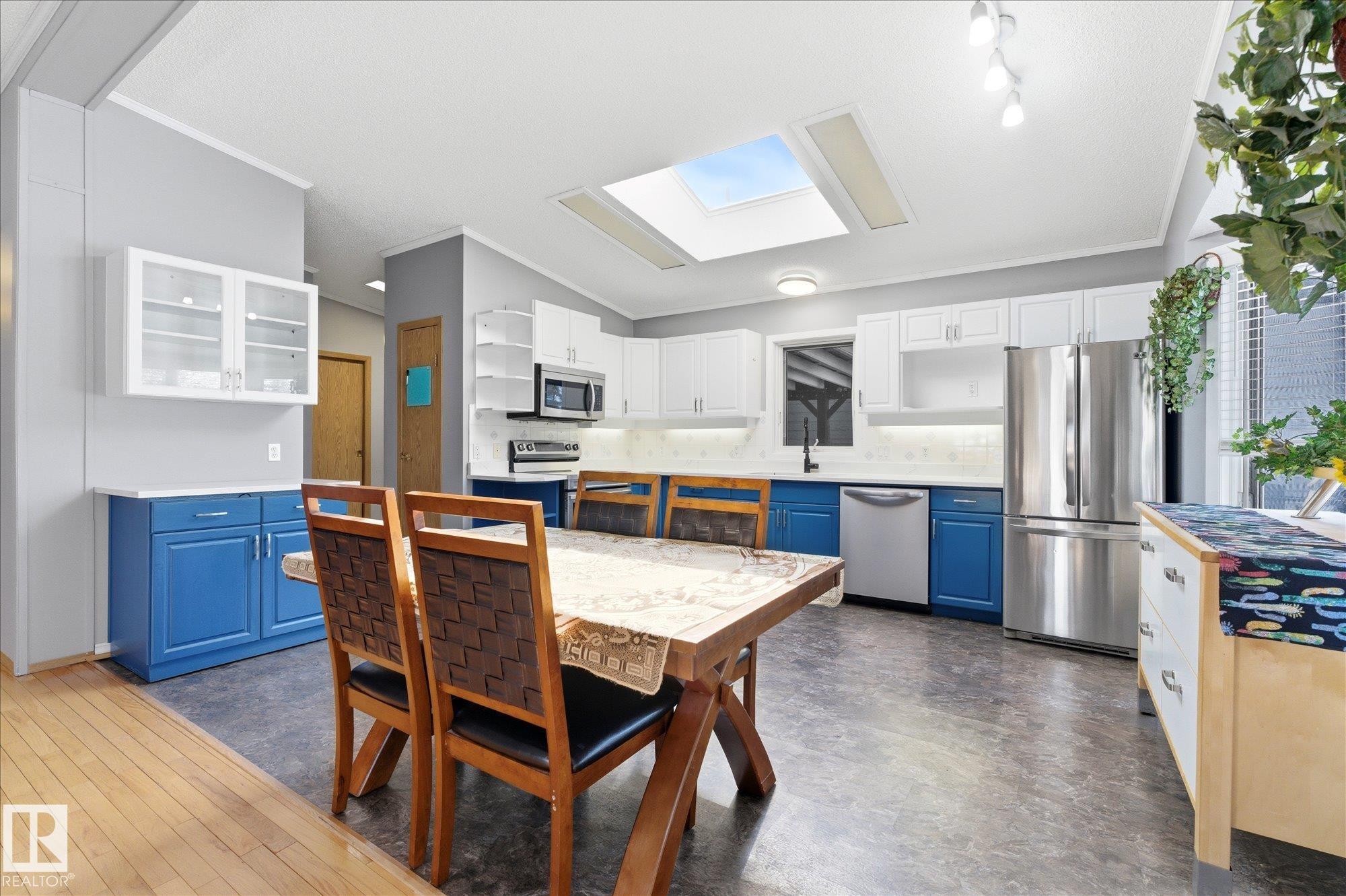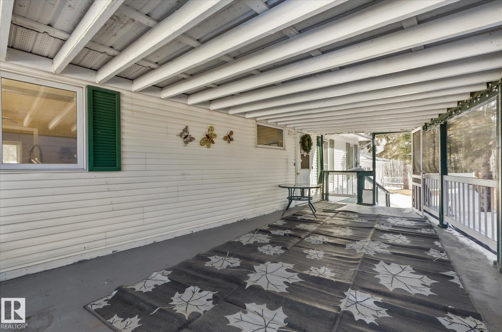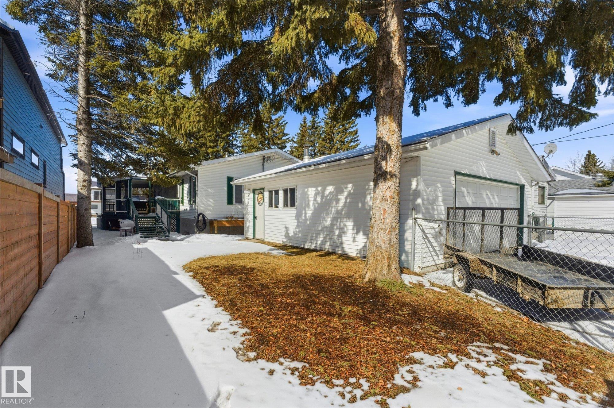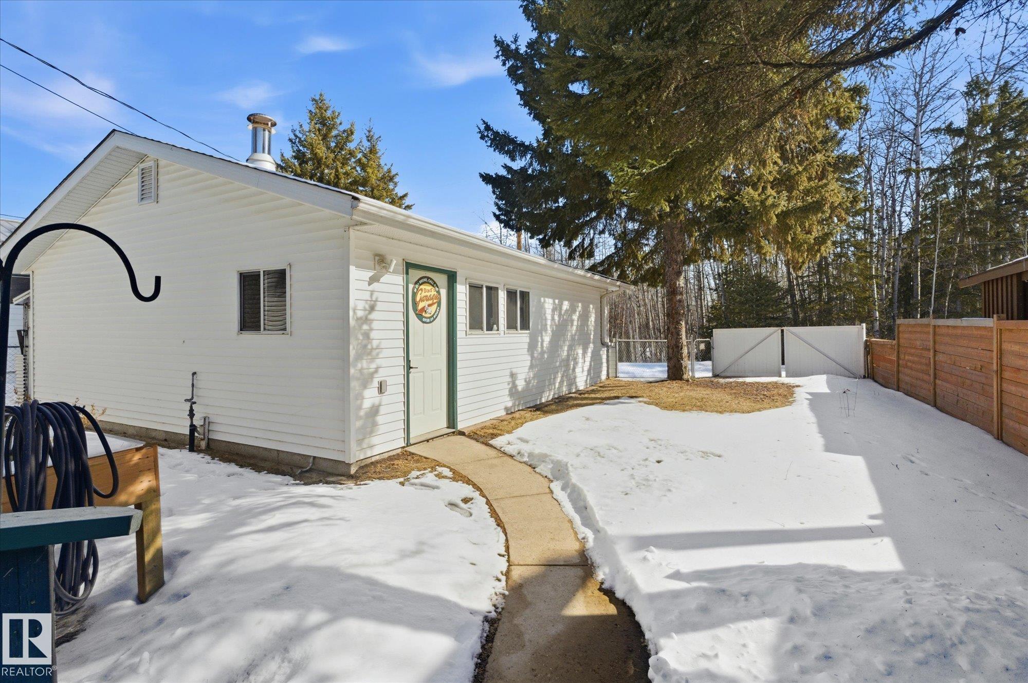 Welcome to this move-in ready 4 bedroom plus den, 2.5 bath bungalow in the vibrant lakeside community of Wabamun! Featuring vaulted ceilings, updated kitchen, stainless steel appliances, new carpet up and down, fresh paint, main floor laundry, and a Sauna. this home offers both style and convenience. The spacious layout includes four bedrooms plus a den?ideal for family, guests, or a home office. Relax or entertain year-round on the covered, screened-in deck, overlooking the fully fenced yard. The oversized double detached heated garage provides plenty of space for vehicles, tools, and lake toys and has 220 wiring. Just minutes from the water and downtown, enjoy all Wabamun has to offer?boating, fishing, beaches, swimming, markets, and community events. Nothing to do but move in and start living the lake life.