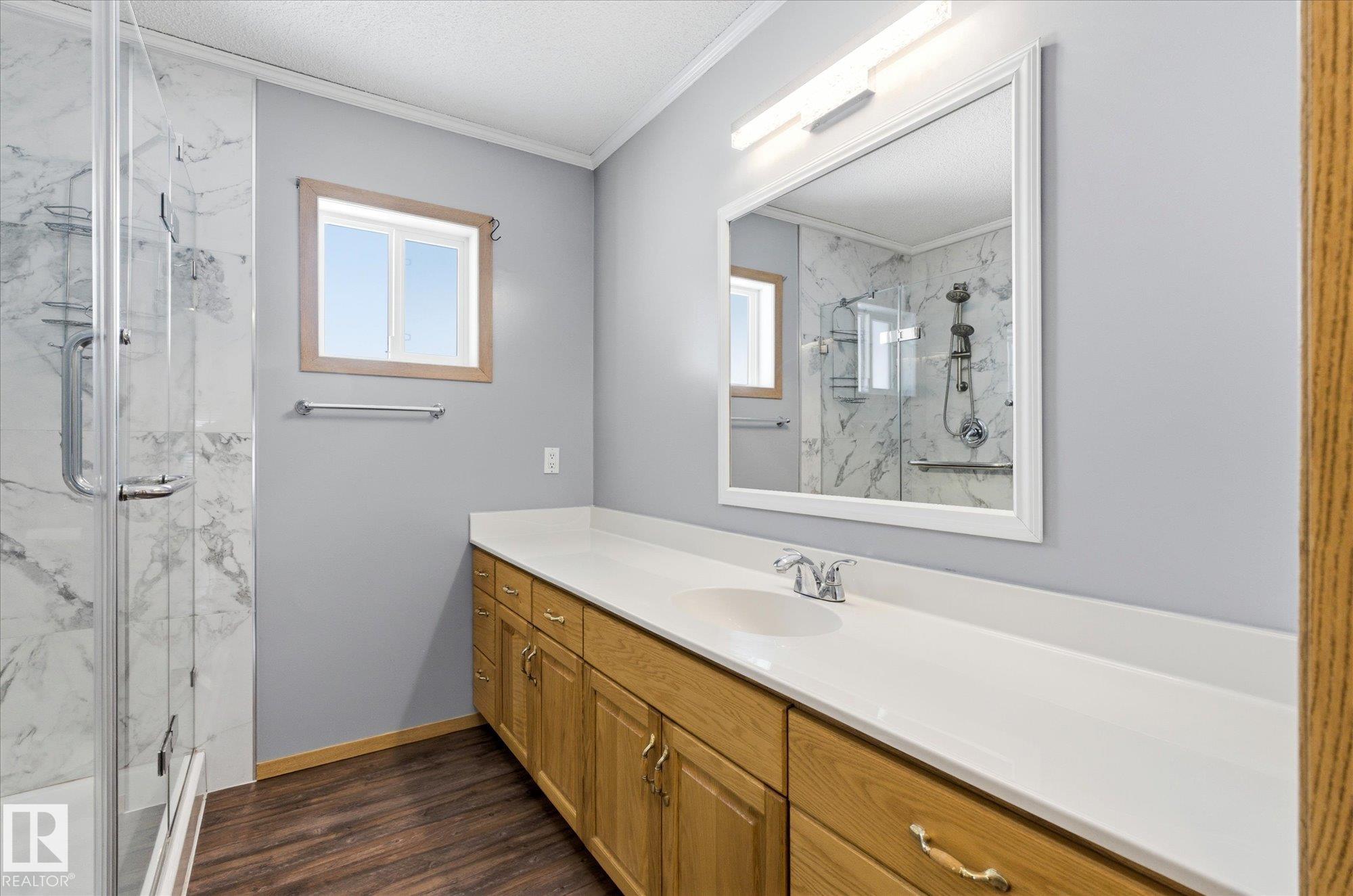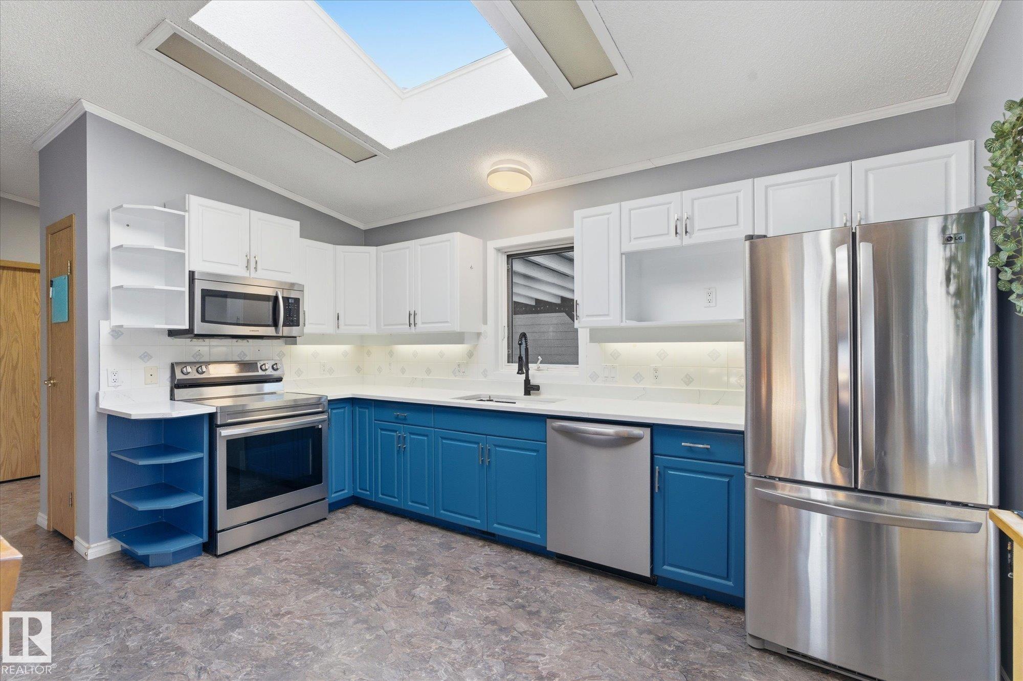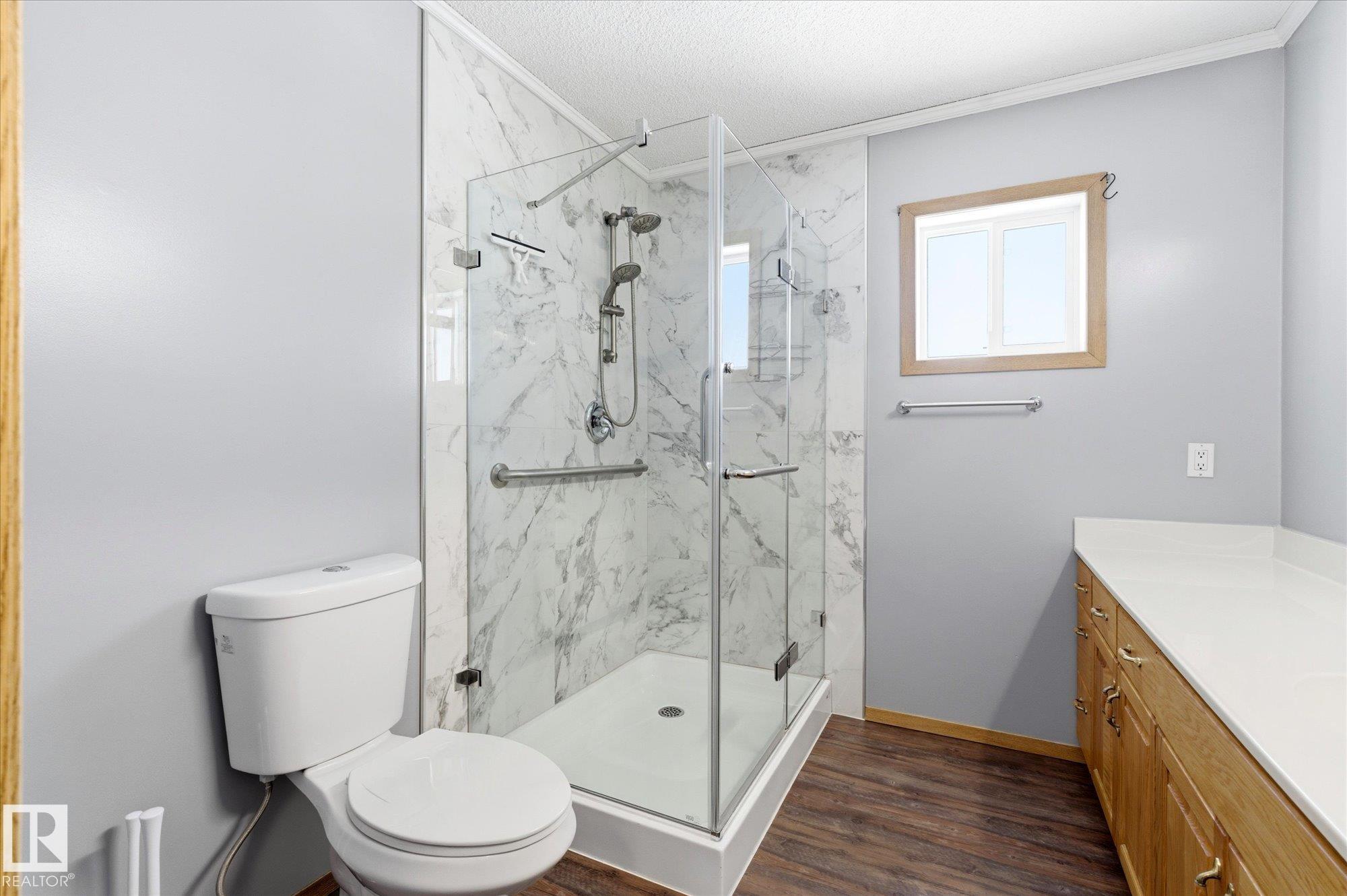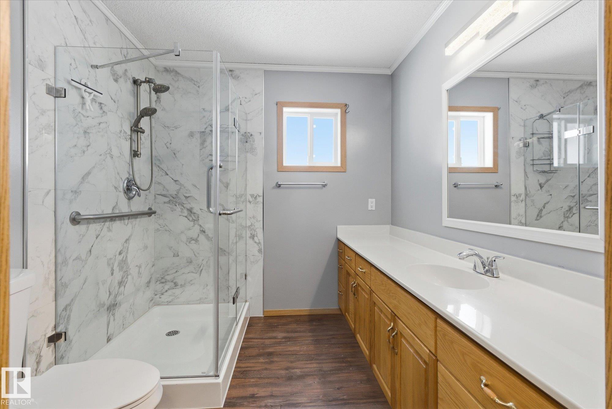 Welcome to this move-in ready 4 bedroom plus den, 2.5 bath bungalow in the vibrant lakeside community of Wabamun! Featuring vaulted ceilings, updated kitchen, stainless steel appliances, new carpet up and down, fresh paint, main floor laundry, and a Sauna. this home offers both style and convenience. The spacious layout includes four bedrooms plus a den?ideal for family, guests, or a home office. Relax or entertain year-round on the covered, screened-in deck, overlooking the fully fenced yard. The oversized double detached heated garage provides plenty of space for vehicles, tools, and lake toys and has 220 wiring. Just minutes from the water and downtown, enjoy all Wabamun has to offer?boating, fishing, beaches, swimming, markets, and community events. Nothing to do but move in and start living the lake life.