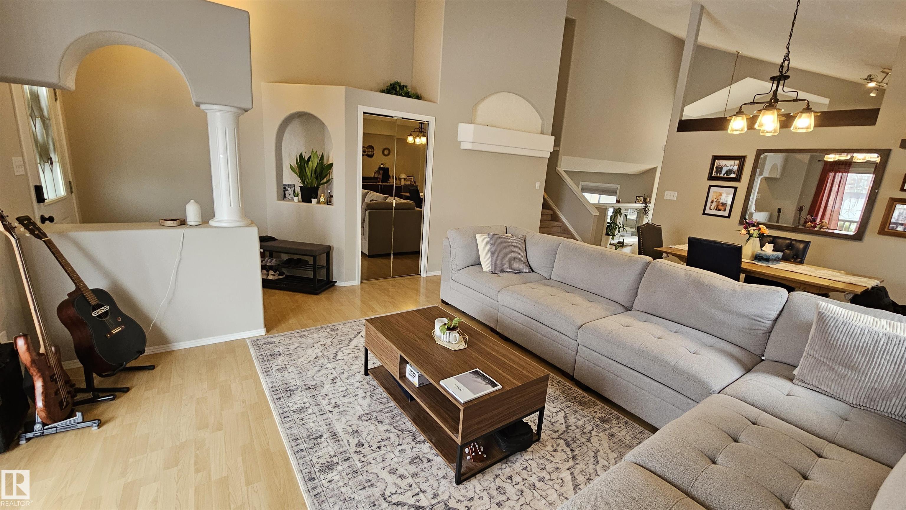 Step into a home where architectural beauty meets everyday functionality. This striking residence boasts a timeless brick facade and a charming front veranda that welcomes you into a world of soaring vaulted ceilings that flow throughout the home. The intelligent 4-level split design maximizes every square inch, providing an airy, connected layout that still offers distinct spaces for every member of the family. The main bedroom offers a comfortable layout with a large walk-in closet for all your storage needs. The ensuite surprises with high vaulted ceilings that elevate the space. Featuring a vanity, separate shower, and jetted tub, this well-appointed bathroom provides all the essentials. Outside, your private oasis awaits: a beautifully landscaped yard featuring a spacious deck, gas BBQ hookup, and a built-in fire pit perfect for starlit evenings. With a heated double garage, a chef-ready gas stove, and a basement roughed-in for an additional bath, this home leaves nothing to be desired.