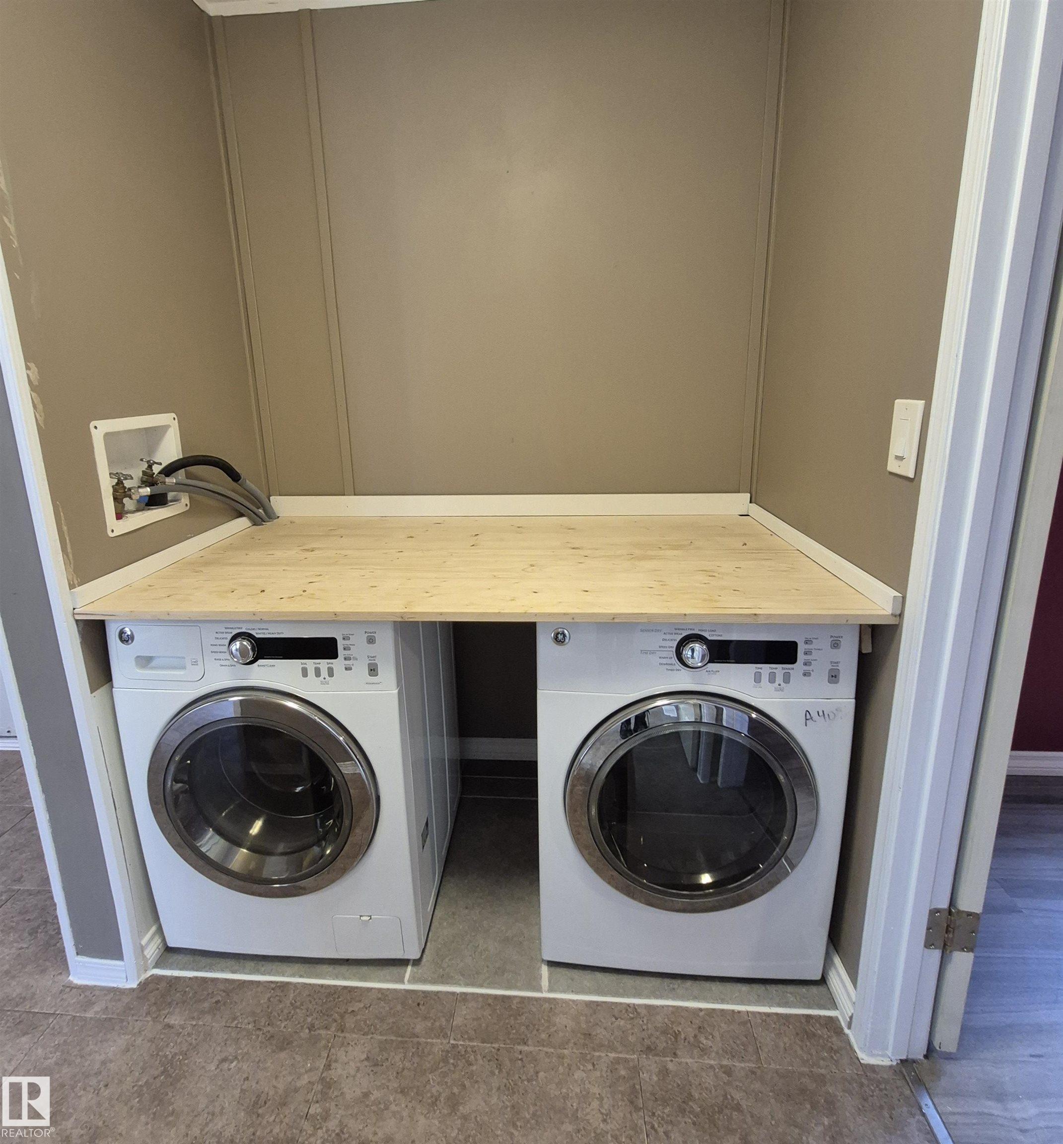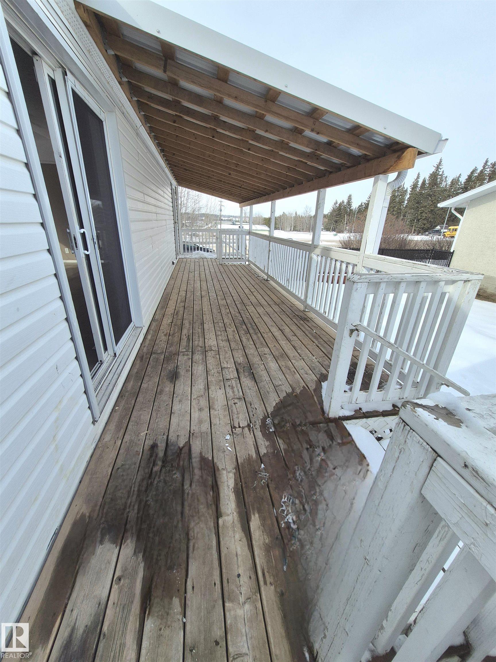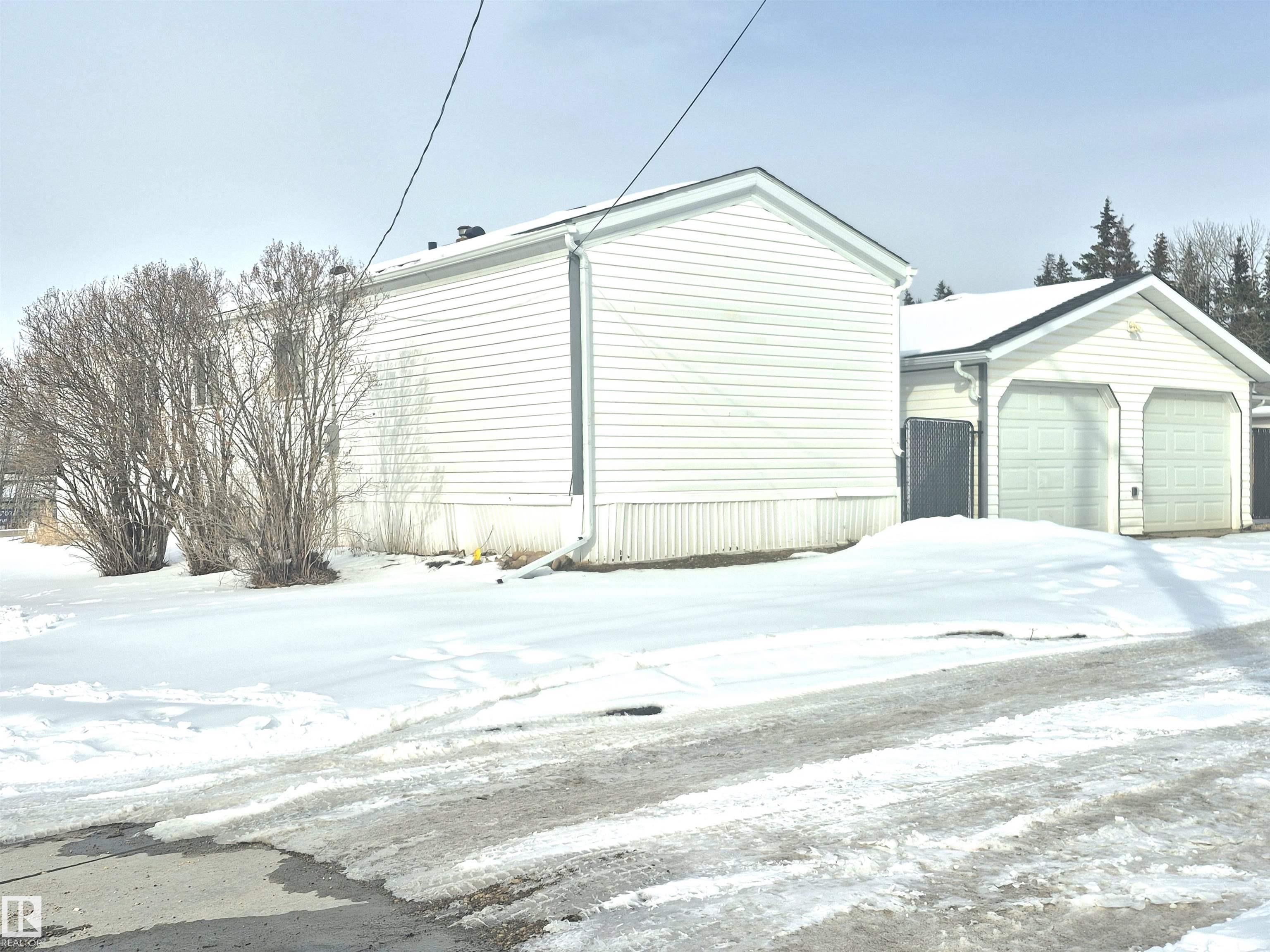 MOVE-IN READY & IMMACULATELY MAINTAINED! Pride of ownership shines the moment you step into the spacious front entry, welcoming you in from the brand-new covered deck. This beautifully cared-for 960 sq ft home features a bright, open-concept layout with large windows that flood the space with natural light. Enjoy peace of mind with major updates already complete, including new vinyl siding, new shingles, fresh paint, and new county sewer lines. The home offers 3 bedrooms, a cheerful and functional kitchen, a generous living room, and the convenience of main floor laundry. Situated on a desirable corner lot, the exterior is just as impressive?featuring raised flower beds, a newly fenced yard, new sidewalks, and plenty of parking options. The double detached garage with back lane access adds both convenience and value. Located in a central area close to schools, shopping, and the scenic Pembina River, with quick access to Hwy 16 and surrounding routes?this is an ideal opportunity for homeowners.