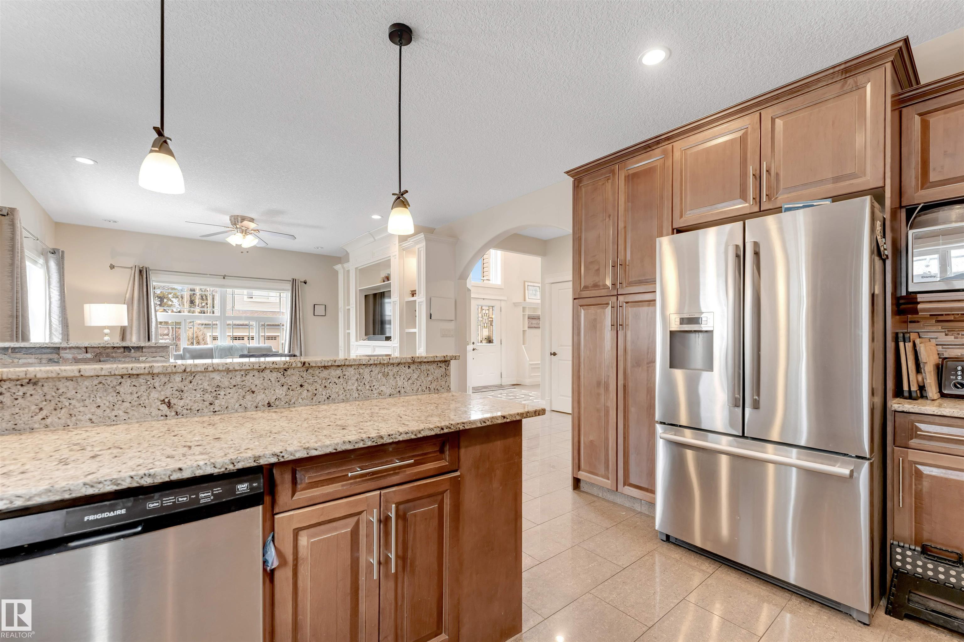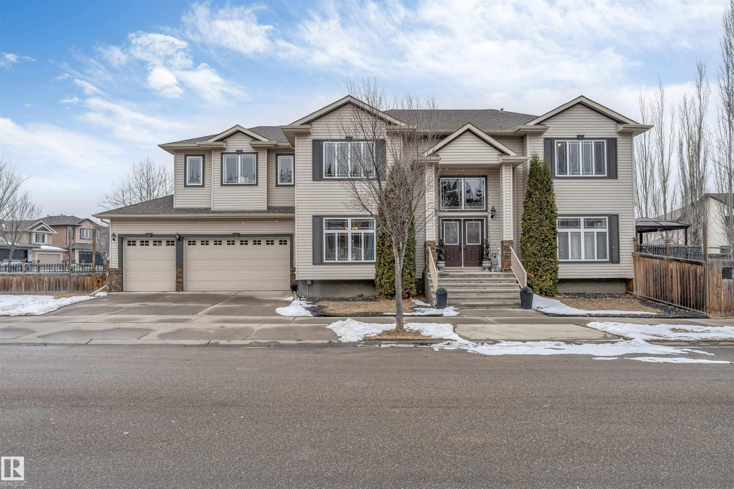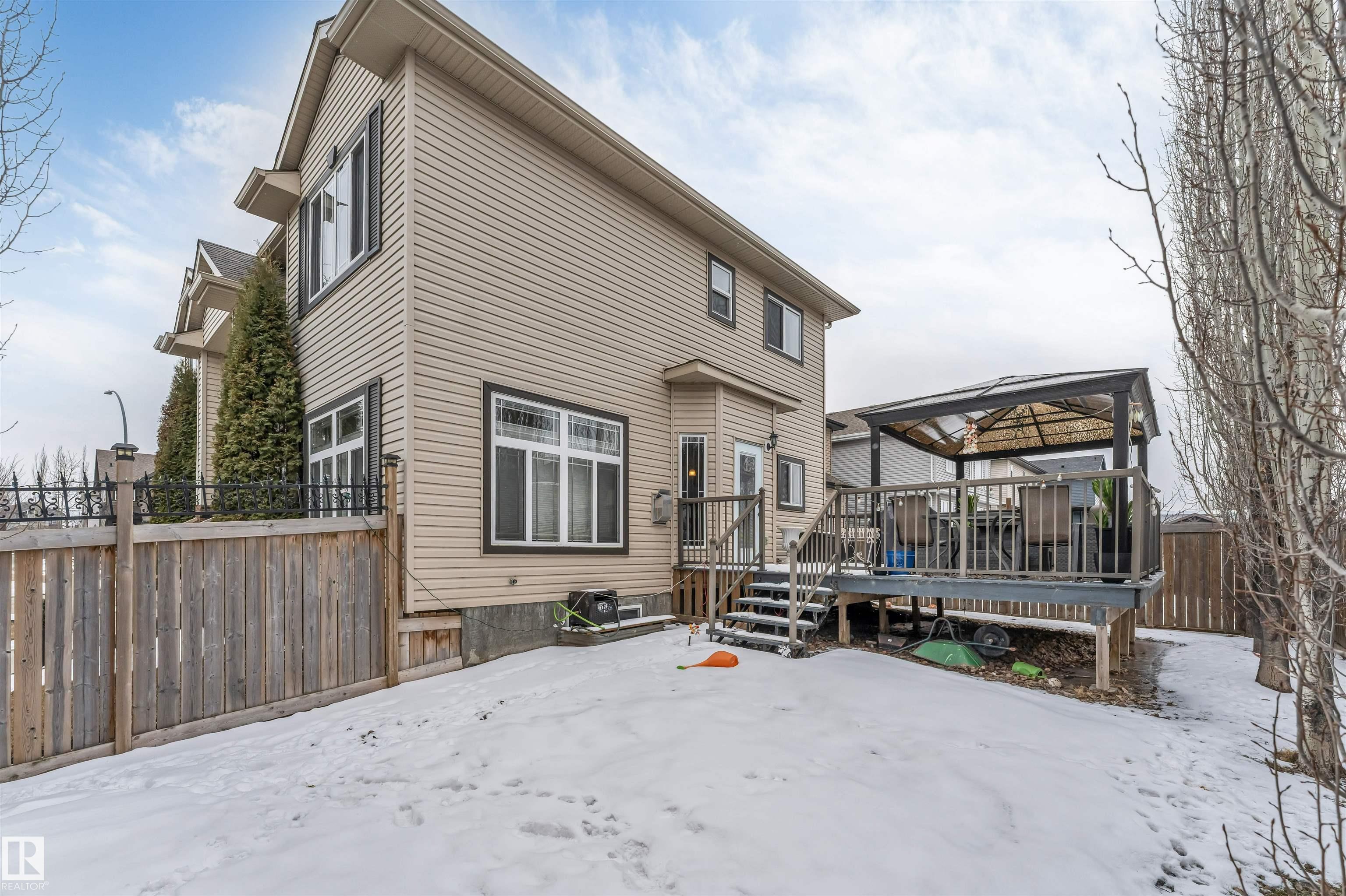 This spacious & bright 4+1 BDRM family home. The main floor includes a formal living & dining room the kitchen with SS appliances & tons of cupboard space, the family room, a den(or 5th BDRM) a 2-piece powder room & the entrance to the triple attached garage. Upper level features 4 BDRMS, 2 that share a Jack & Jill bathroom, the 3rd also with its own bathroom, & the luxurious master suite with a roomy 5-piece ensuite & bright W-I closet. Accessed from the family room is a fantastic outdoor space including a large deck & gazebo, great for entertaining. The south yard would be perfect for a vegetable garden or garden boxes. This lovely home has beautiful finishings include traditional mouldings, coved ceilings, hardwood & porcelain tile flooring, granite countertops, & dramatic 18? ceilings in the LR & foyer. Located close to many amenities & walking distance to the High School & Aqua-Fit Centre, and steps to Four Seasons Park. The partly finished basement has a great rec room large screen TV space.