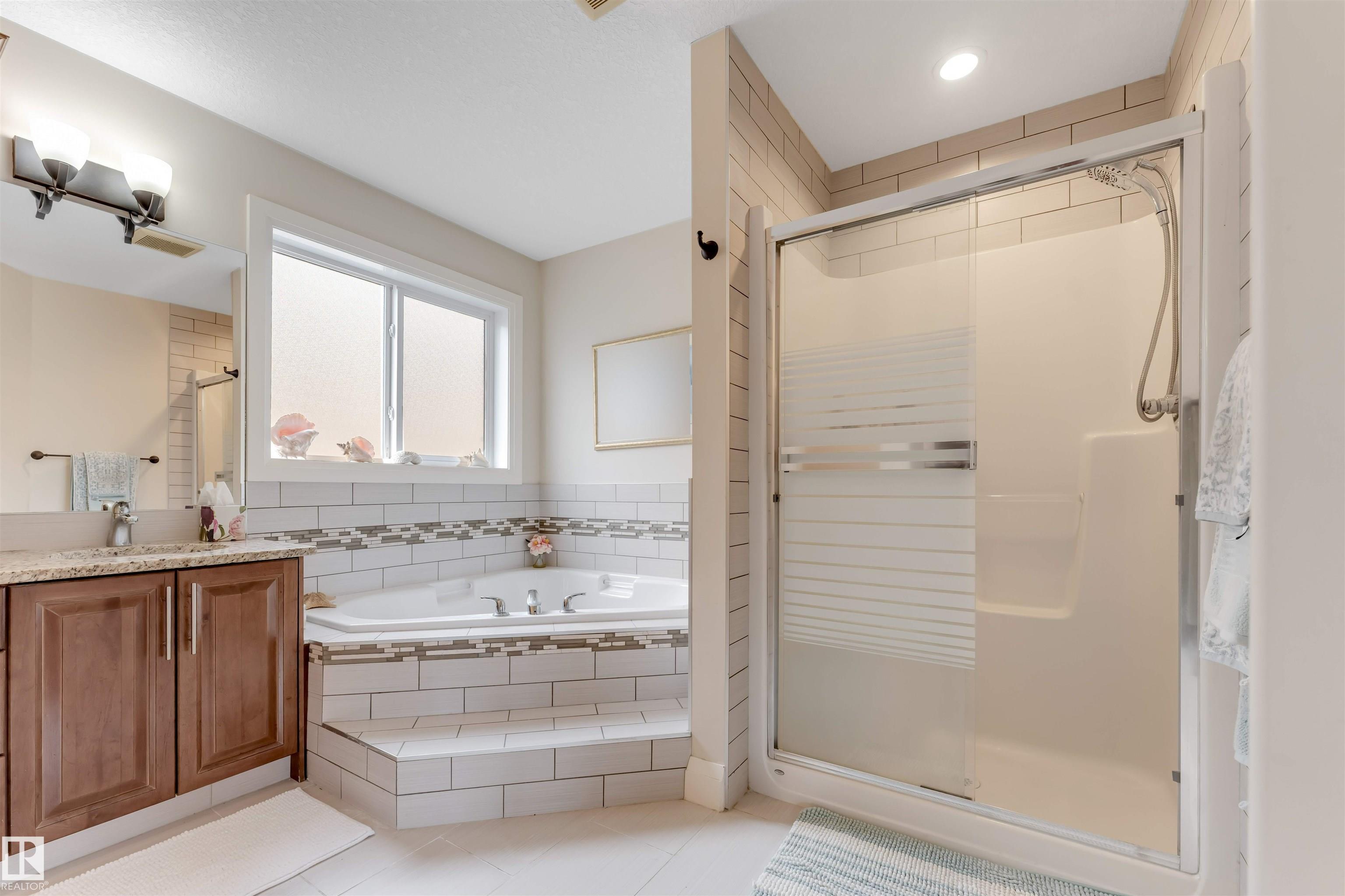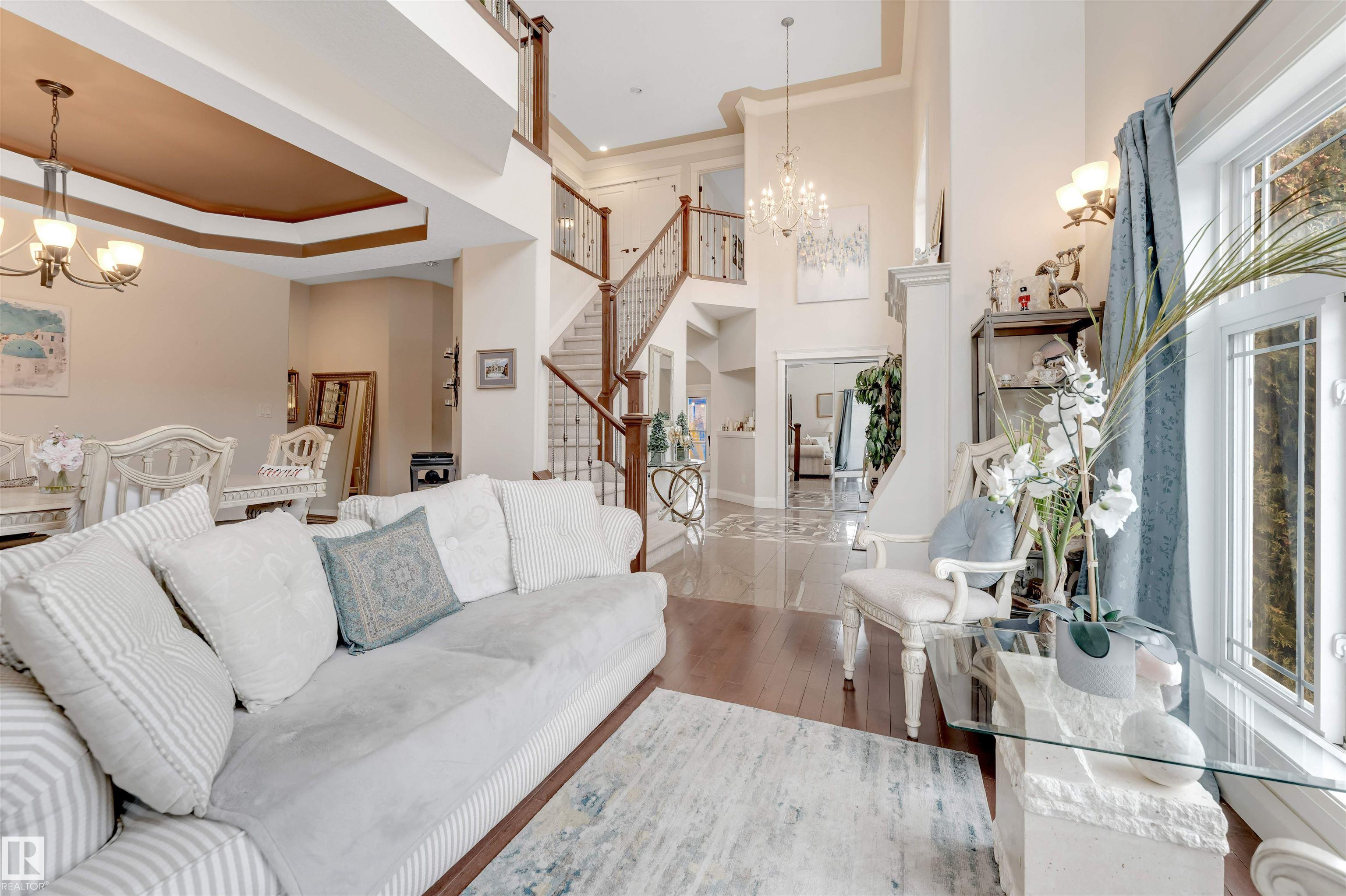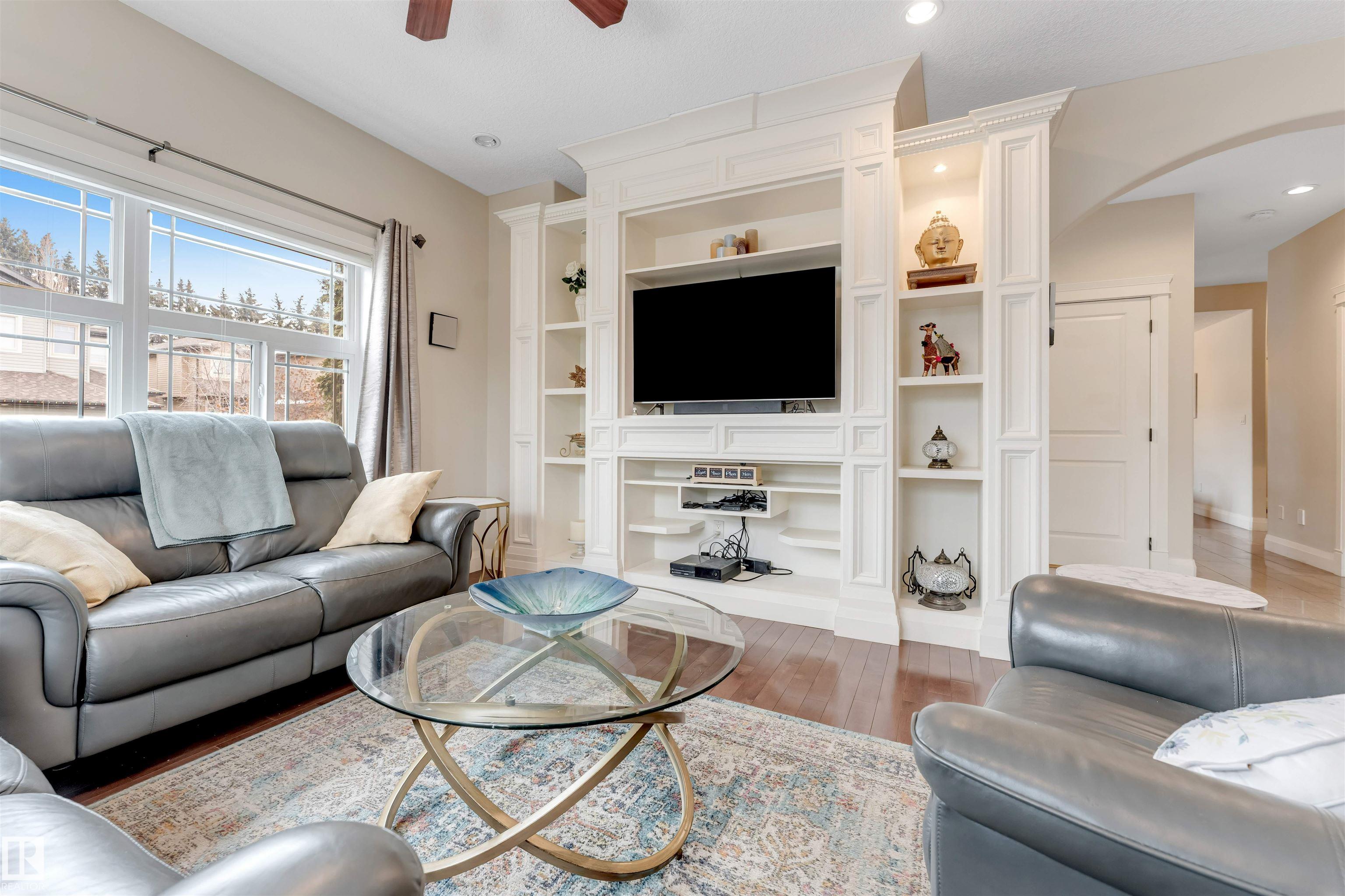 This spacious & bright 4+1 BDRM family home. The main floor includes a formal living & dining room the kitchen with SS appliances & tons of cupboard space, the family room, a den(or 5th BDRM) a 2-piece powder room & the entrance to the triple attached garage. Upper level features 4 BDRMS, 2 that share a Jack & Jill bathroom, the 3rd also with its own bathroom, & the luxurious master suite with a roomy 5-piece ensuite & bright W-I closet. Accessed from the family room is a fantastic outdoor space including a large deck & gazebo, great for entertaining. The south yard would be perfect for a vegetable garden or garden boxes. This lovely home has beautiful finishings include traditional mouldings, coved ceilings, hardwood & porcelain tile flooring, granite countertops, & dramatic 18? ceilings in the LR & foyer. Located close to many amenities & walking distance to the High School & Aqua-Fit Centre, and steps to Four Seasons Park. The partly finished basement has a great rec room large screen TV space.